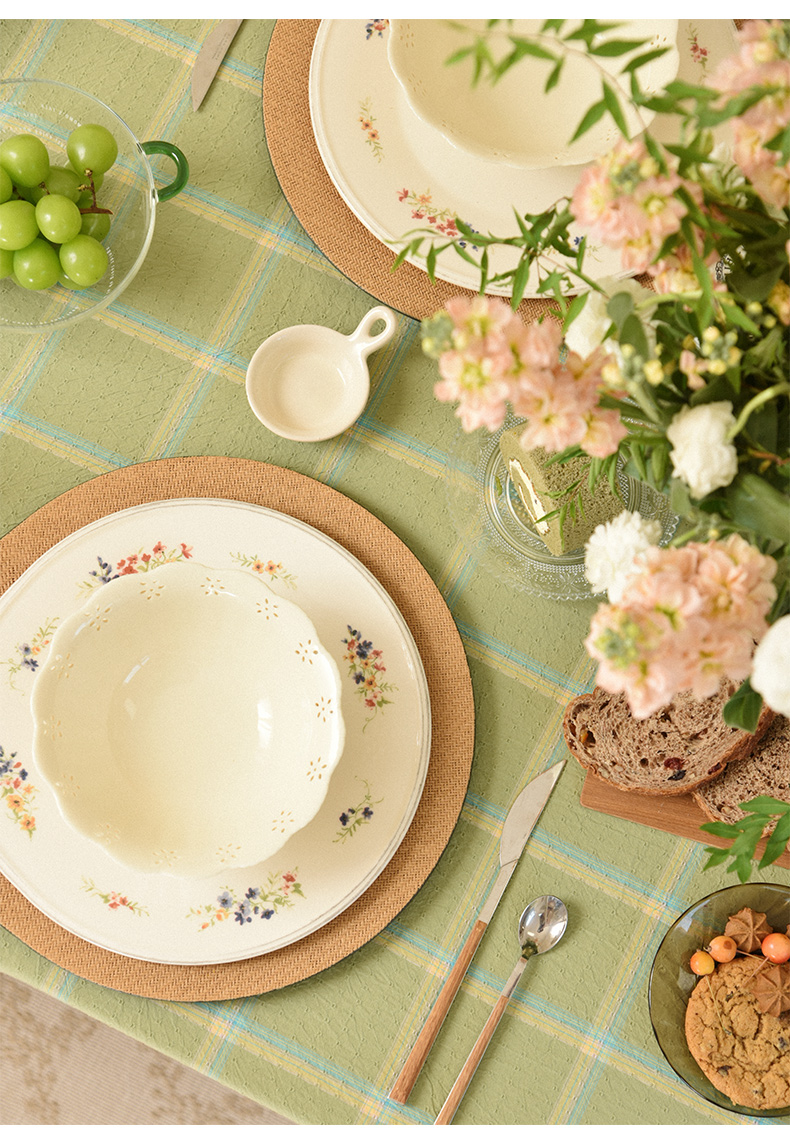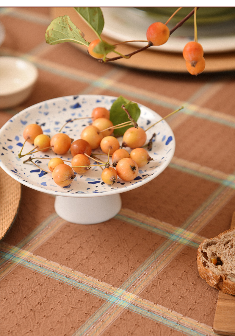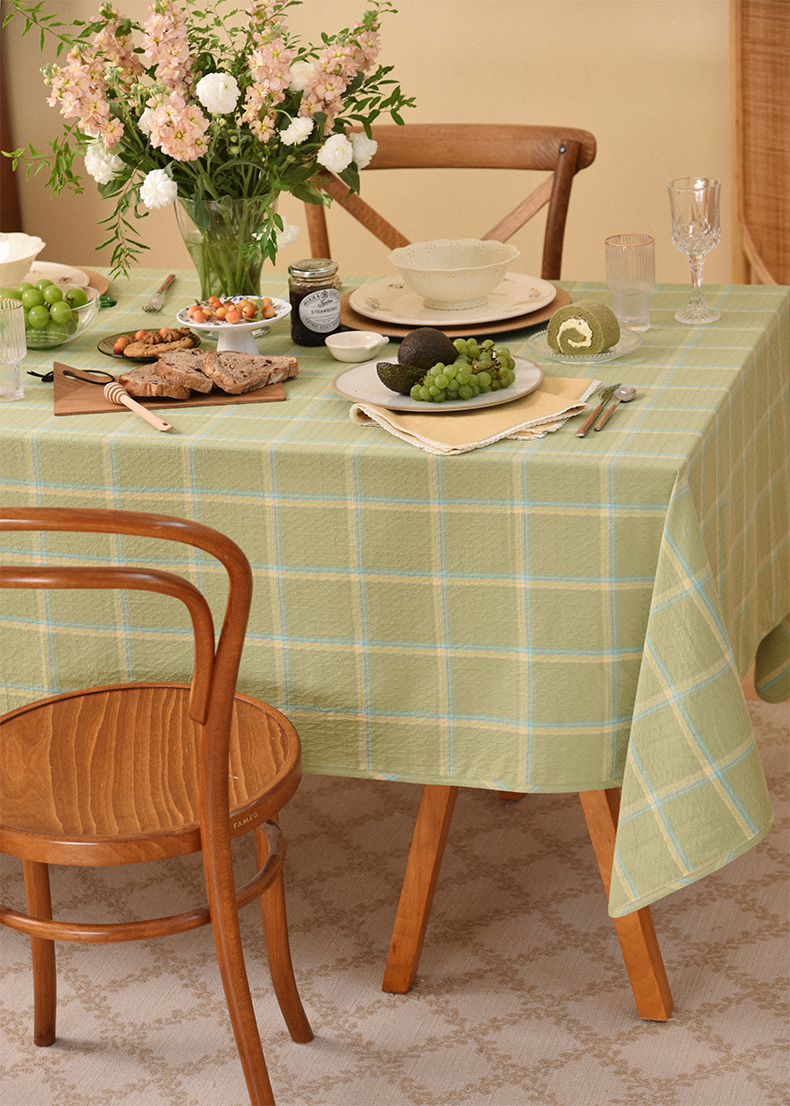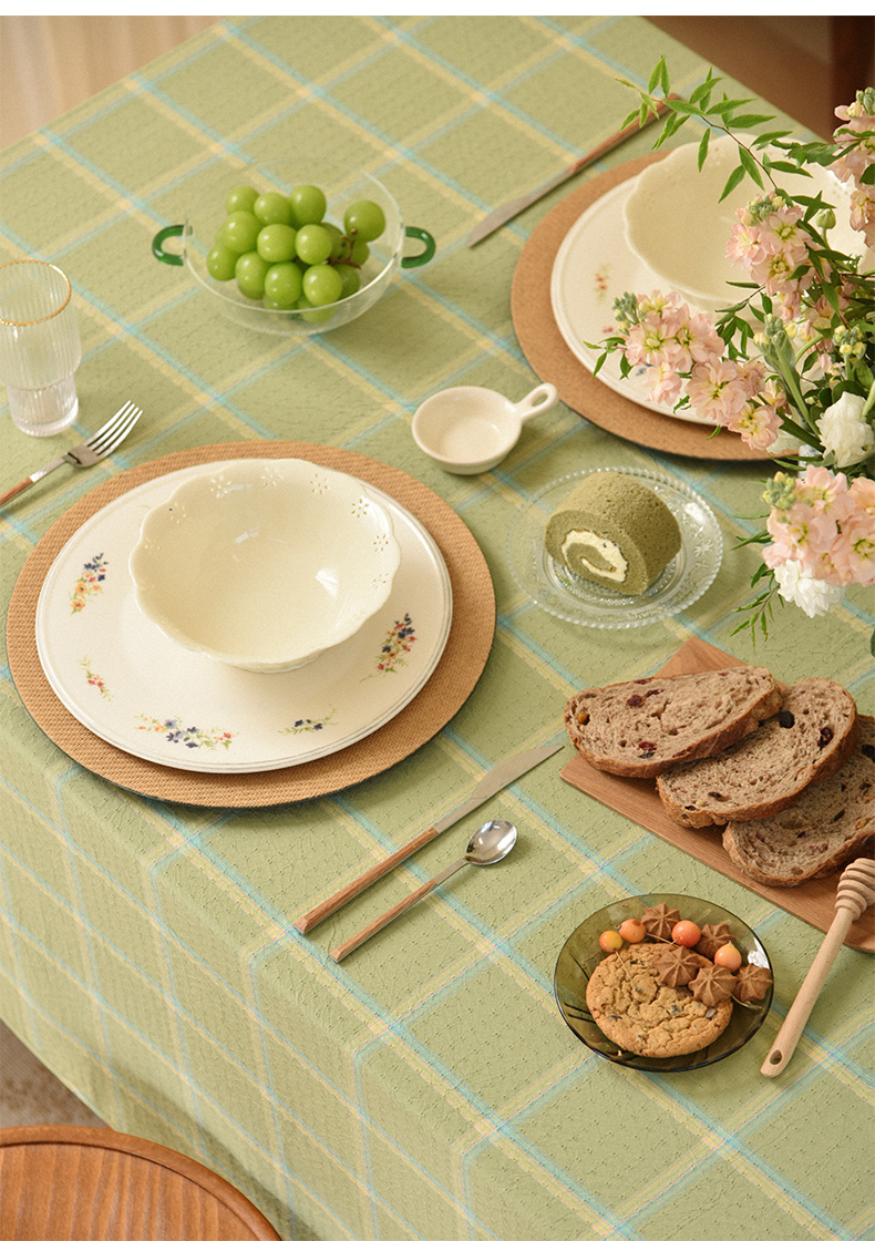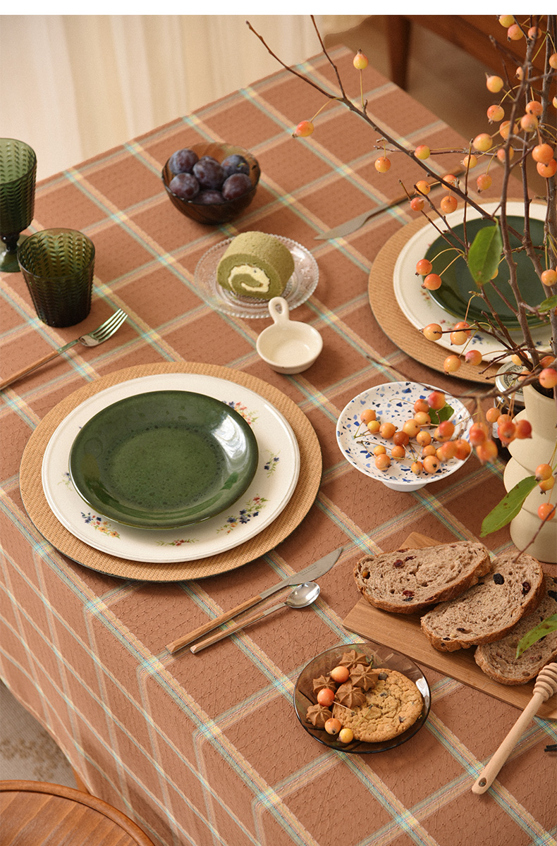 简约撞色格纹棉质桌布客厅电视柜布艺餐桌布
