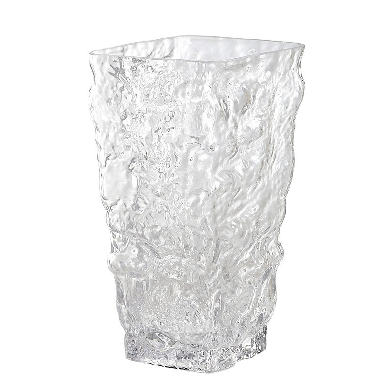 北欧ins冰川水晶玻璃手工花瓶菱形花瓣口水养插花器水培家居摆件