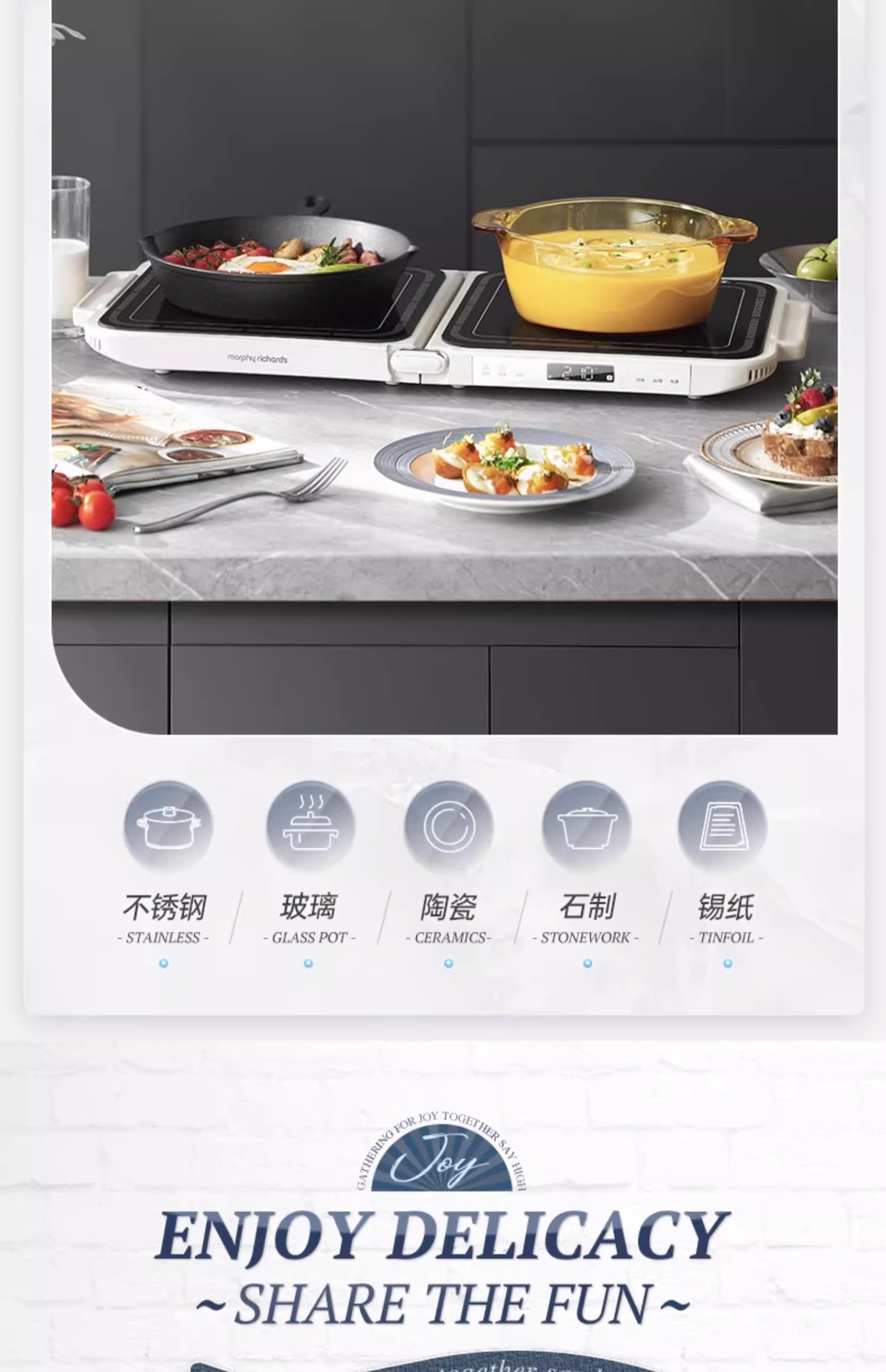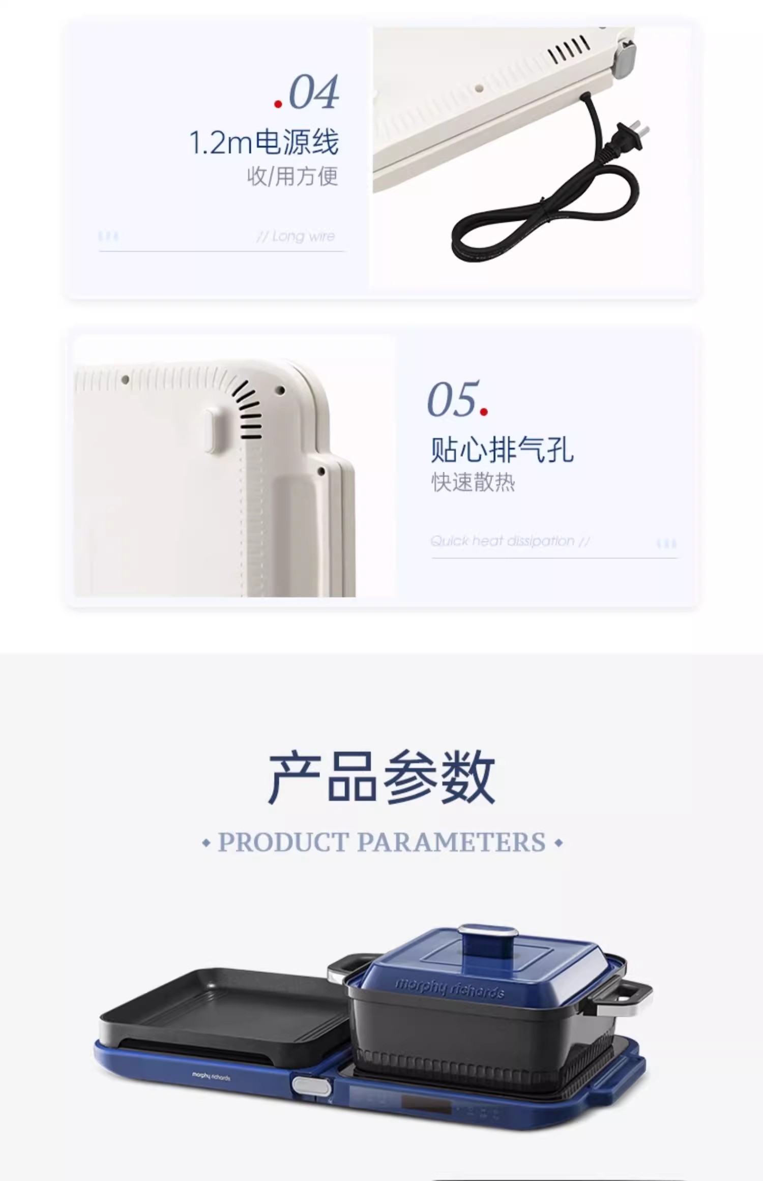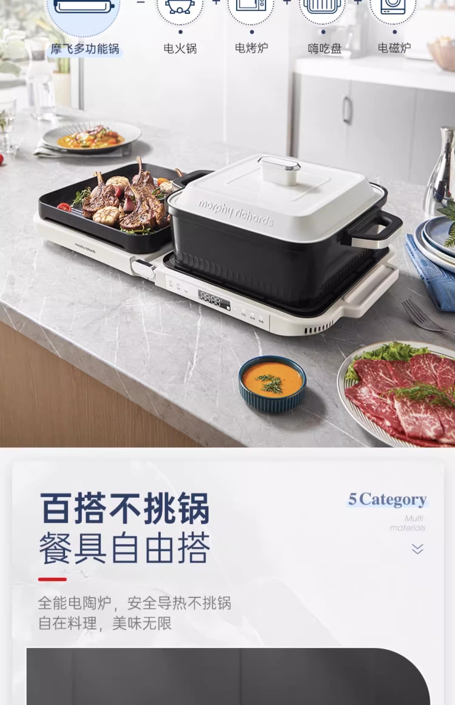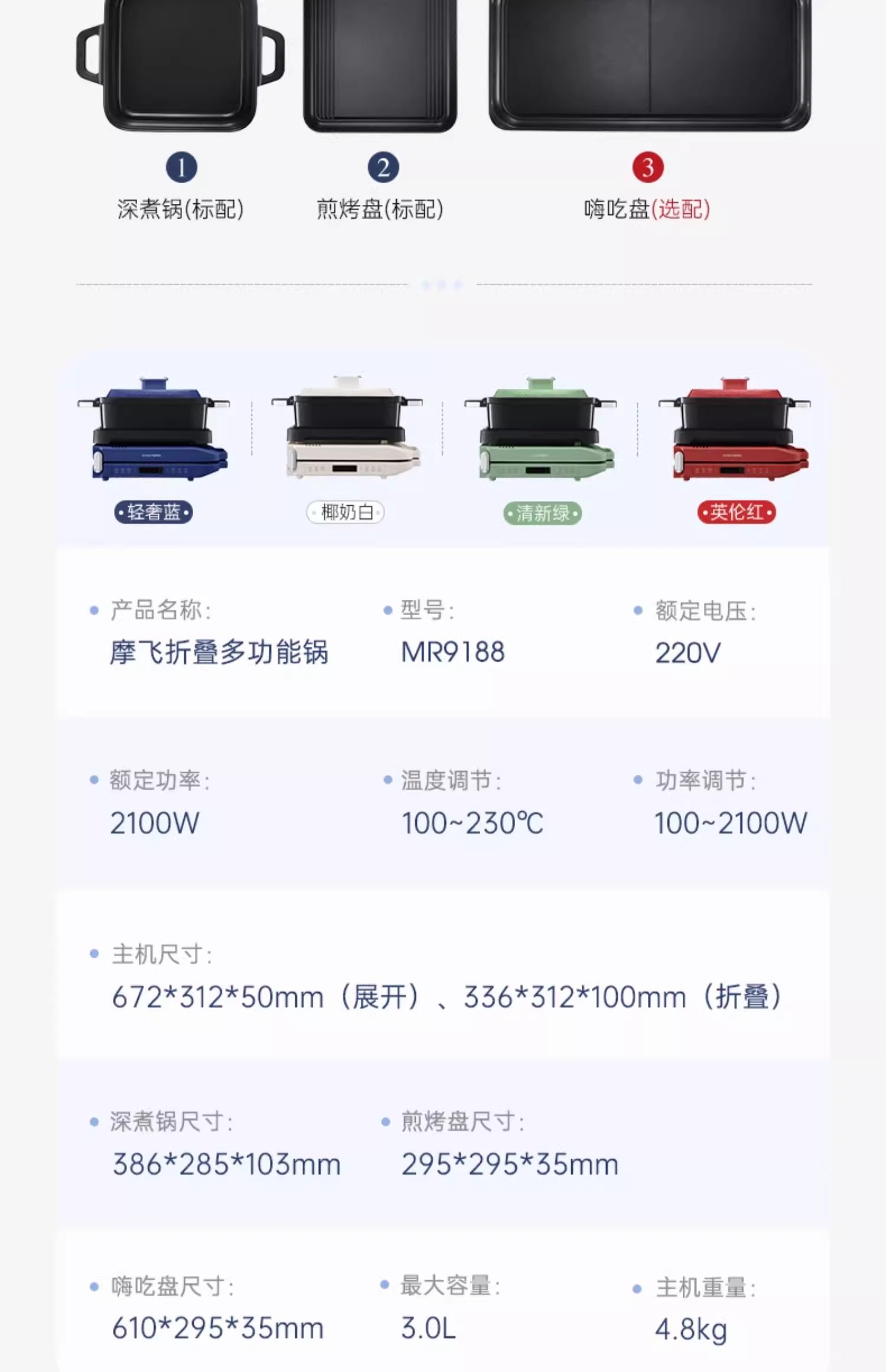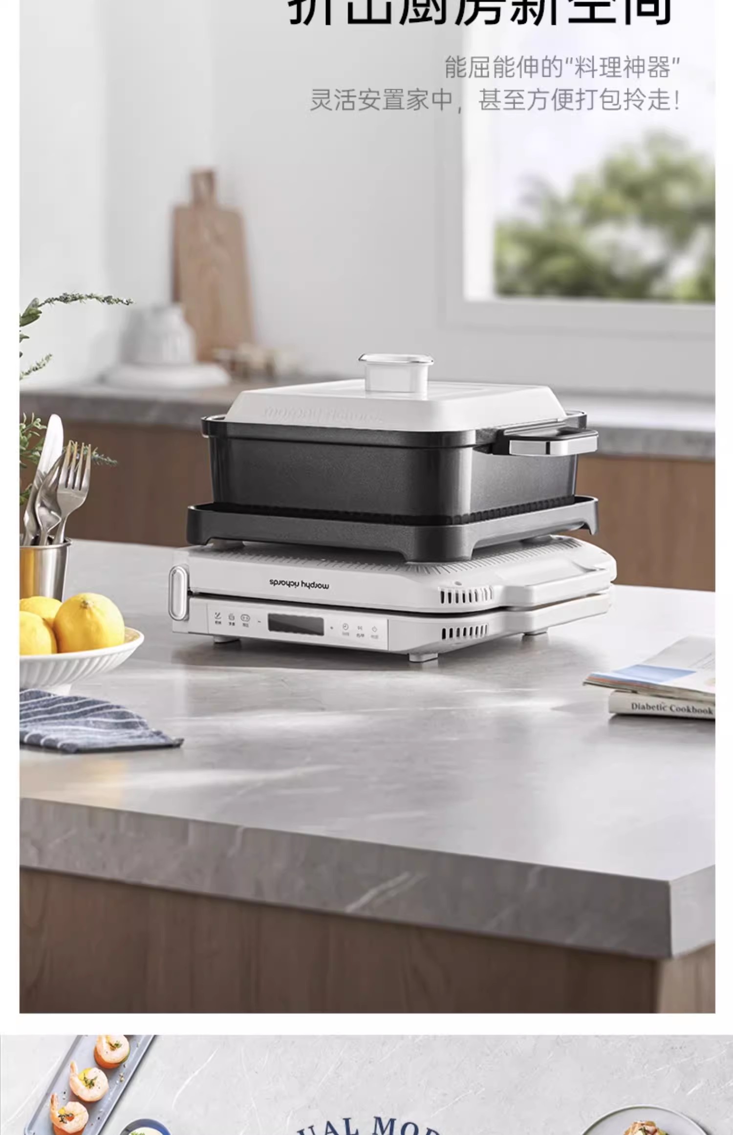 英国morphy摩飞MR9188折叠多功能锅(椰奶白)