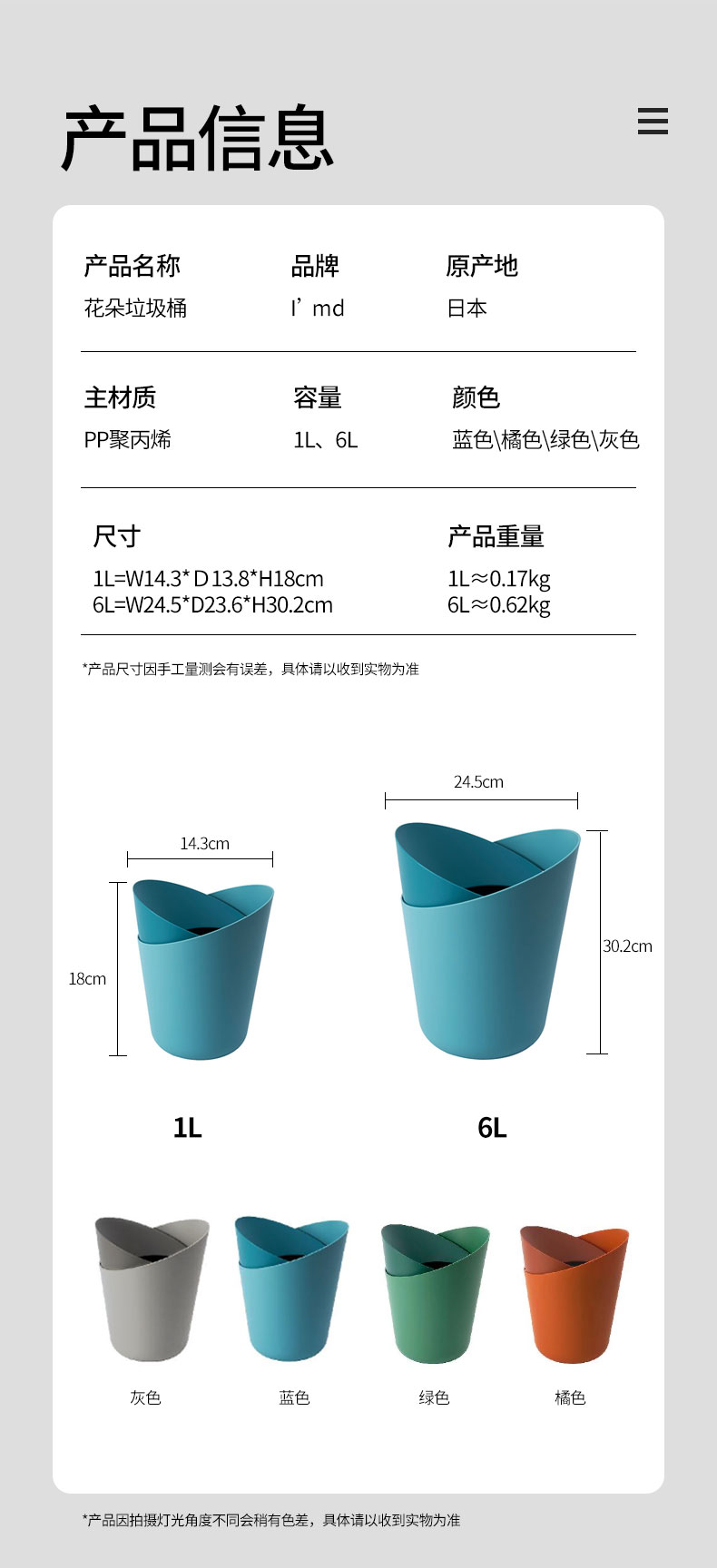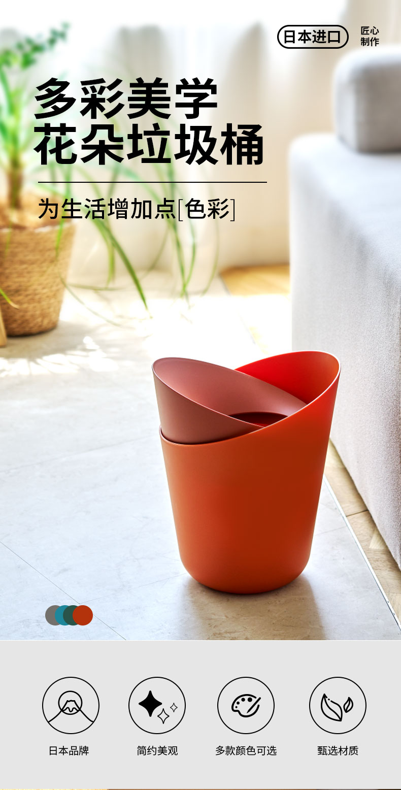 日本进口I’md花朵垃圾桶6L 蓝色