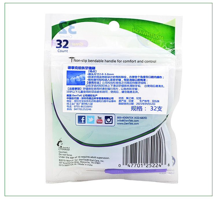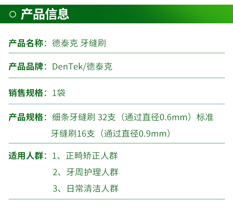 【品牌直发】包邮!美国进口dentek德泰克I型标准牙缝刷