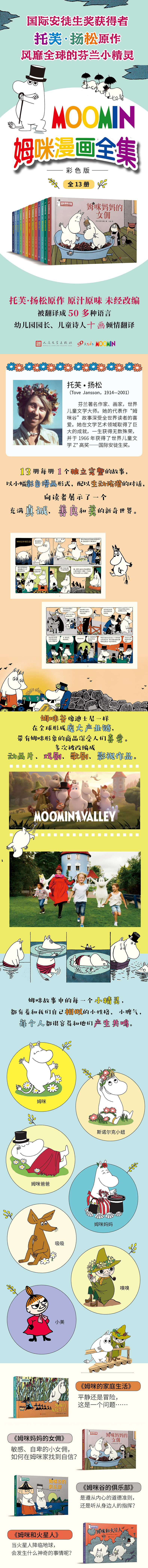 ★ 这套“姆咪漫画全集:彩色版”共13册,每册是1个独立完整的故事,以小幅彩色漫画形式,配以生动诙谐的对话,向读者展示了一个充满真诚、善良和美的新奇世界。