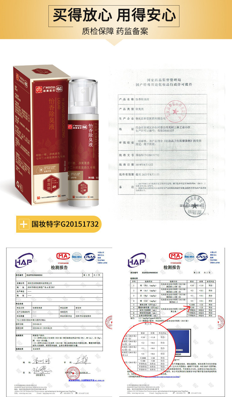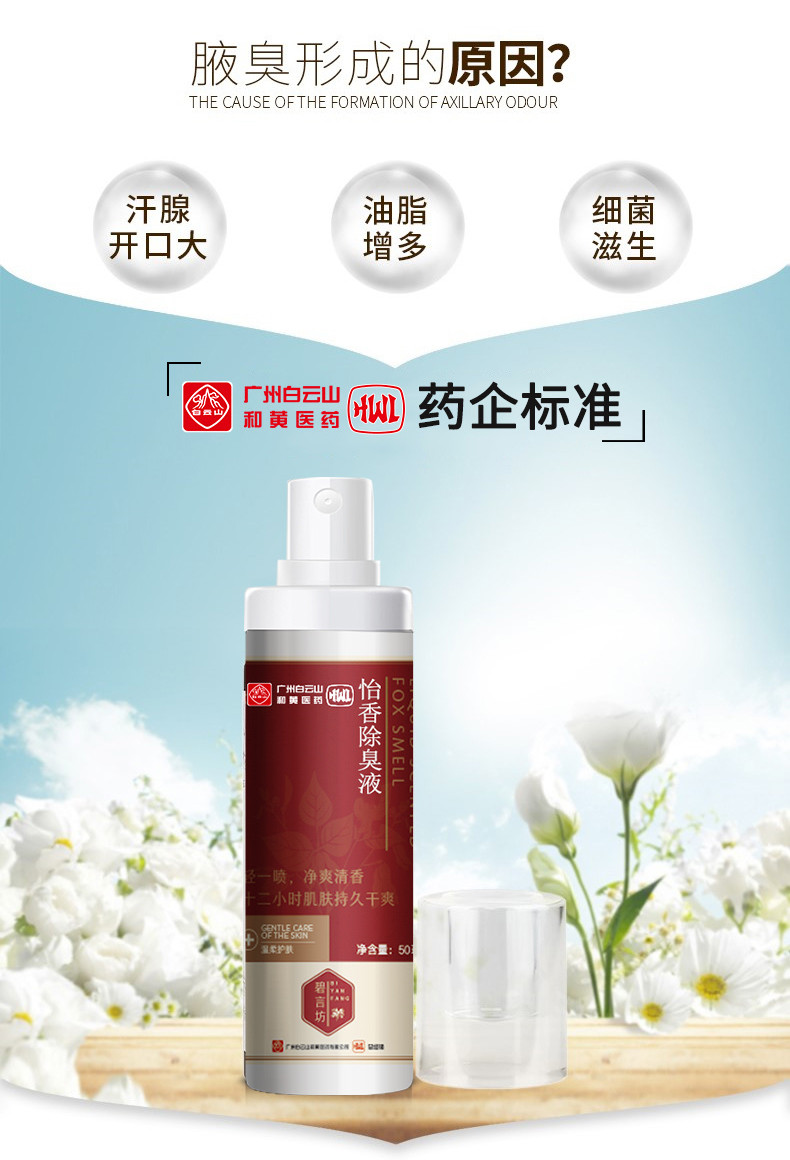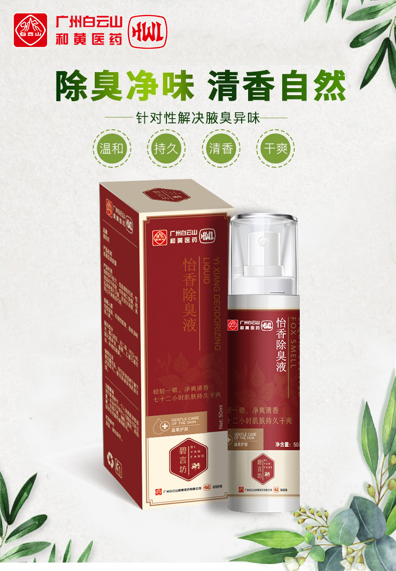 白云山黄医药怡香除臭液去狐臭腋臭止汗香体露狐臭净