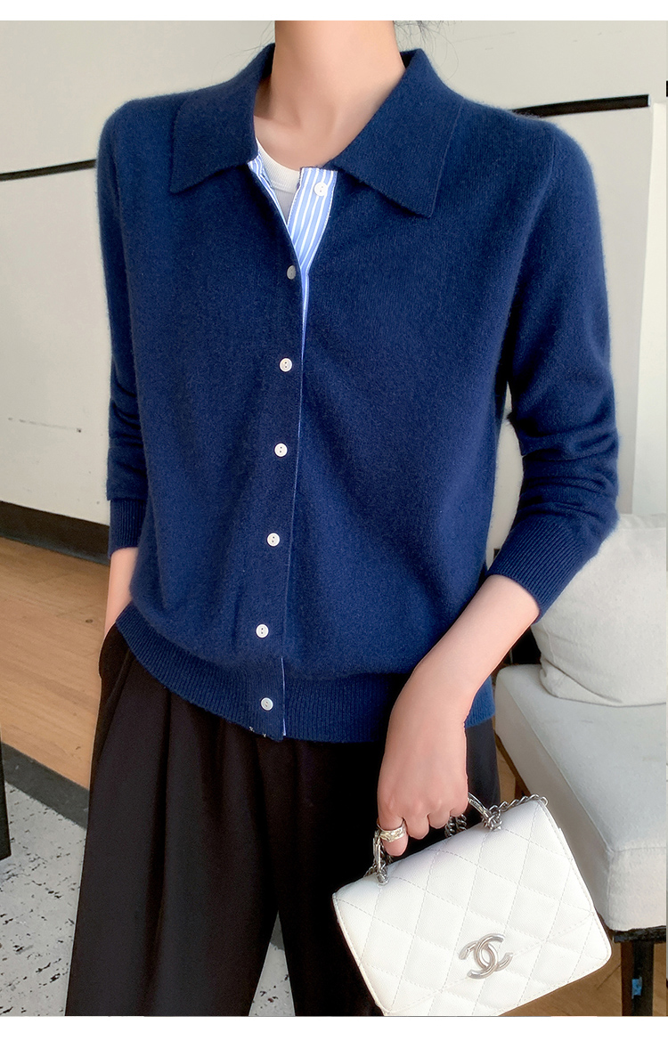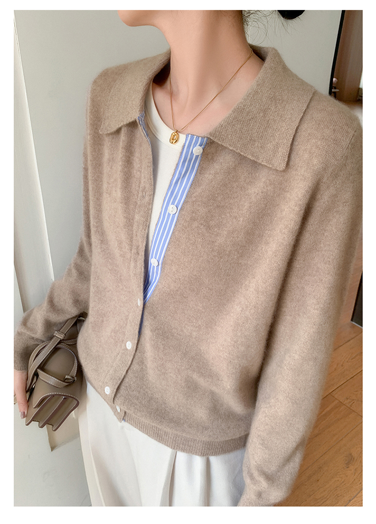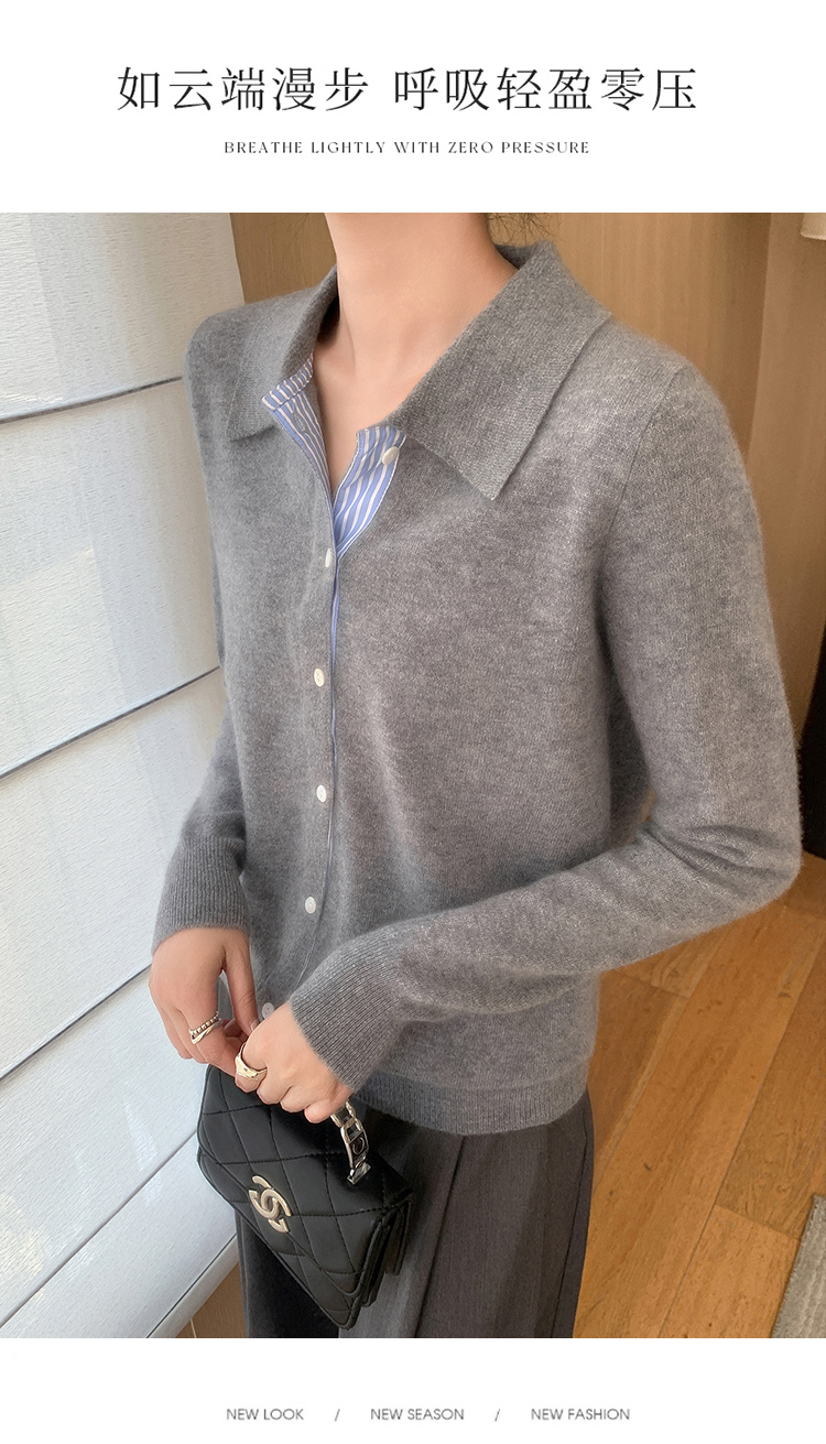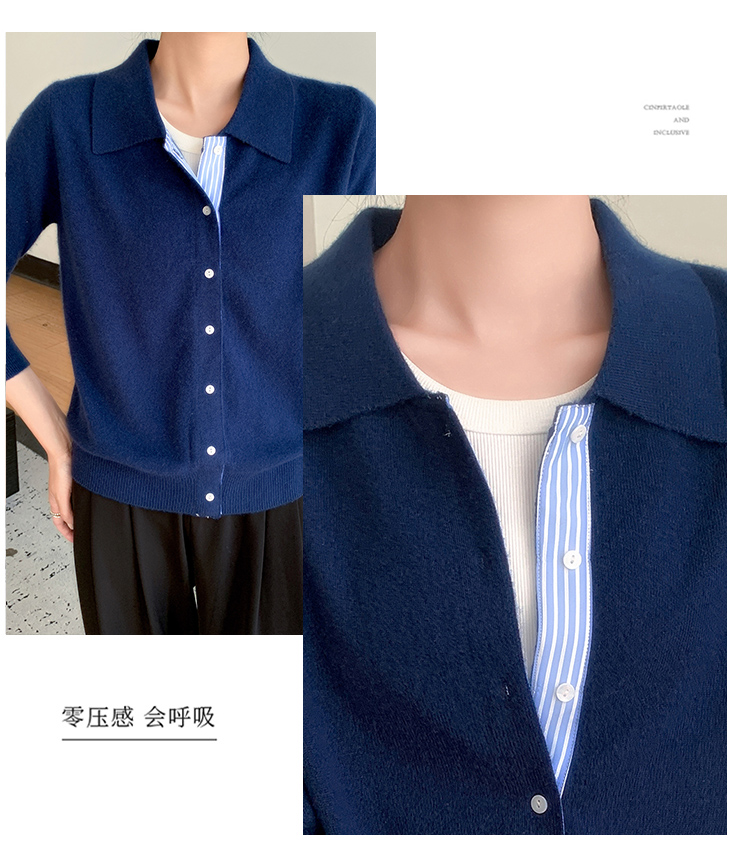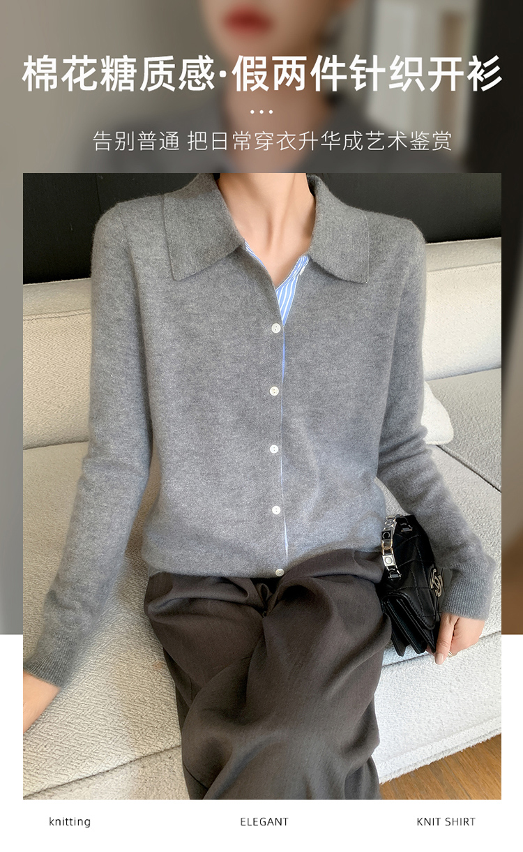 纤束马安迪绒假两件POLO领针织开衫 ZD-3024