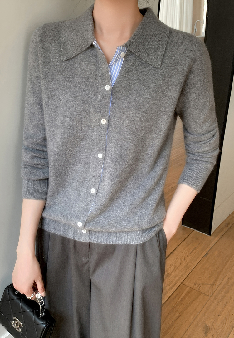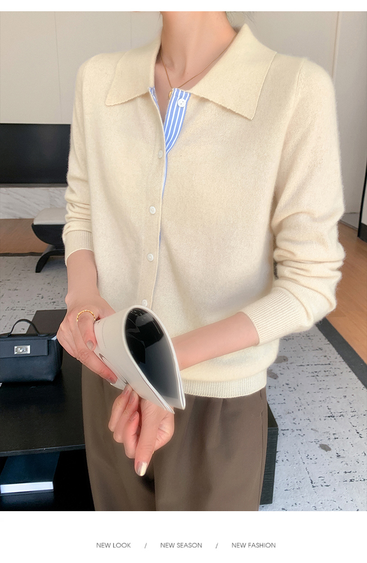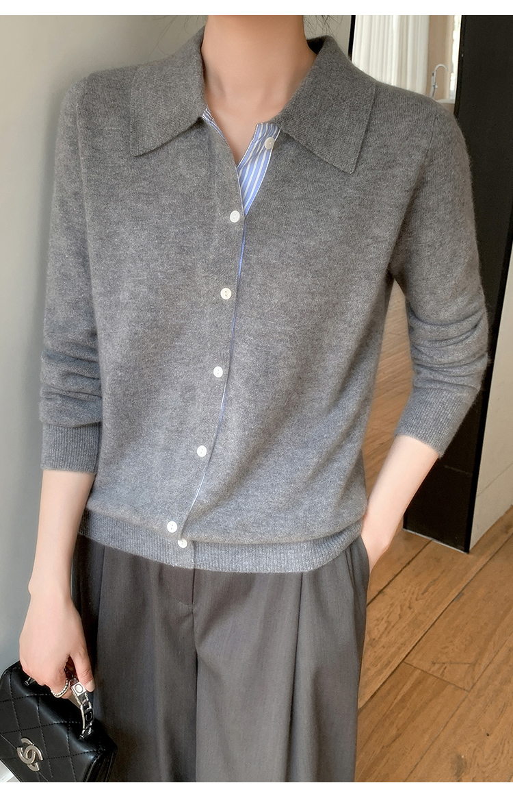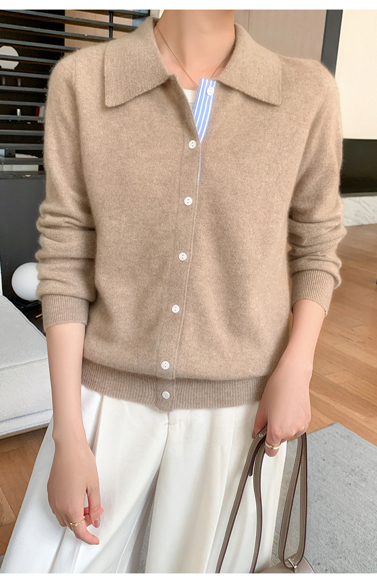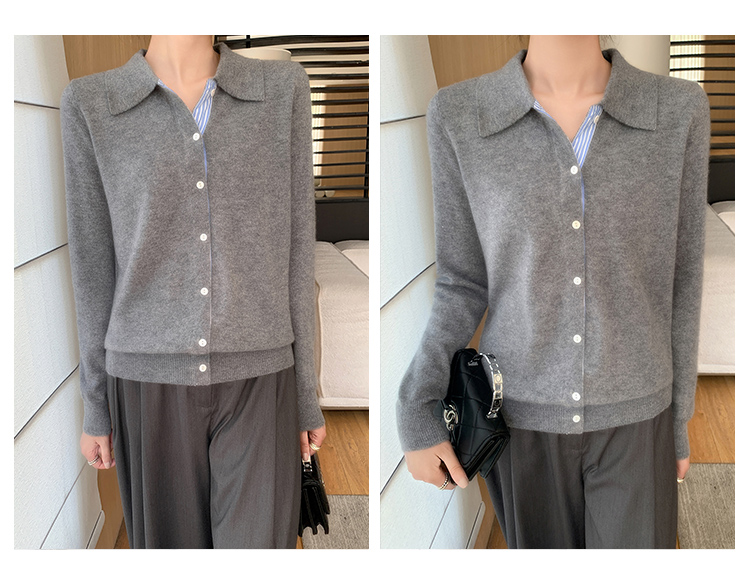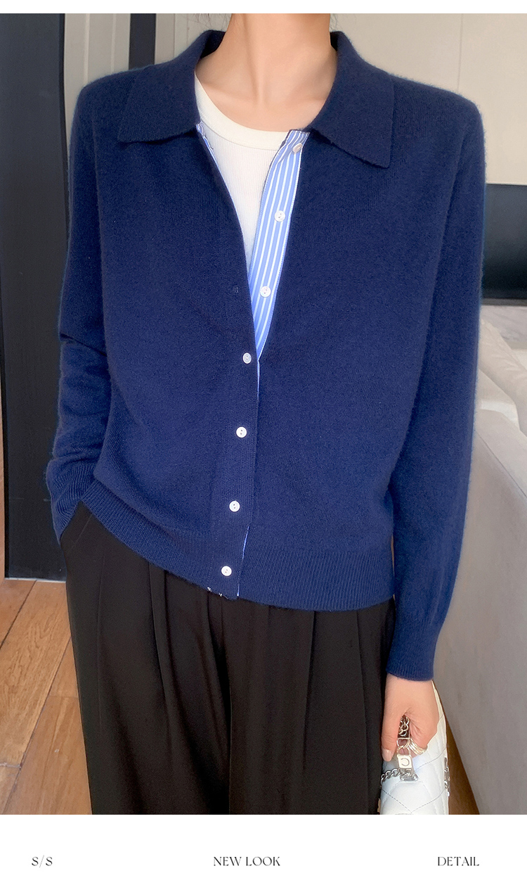 纤束马安迪绒假两件POLO领针织开衫 ZD-3024