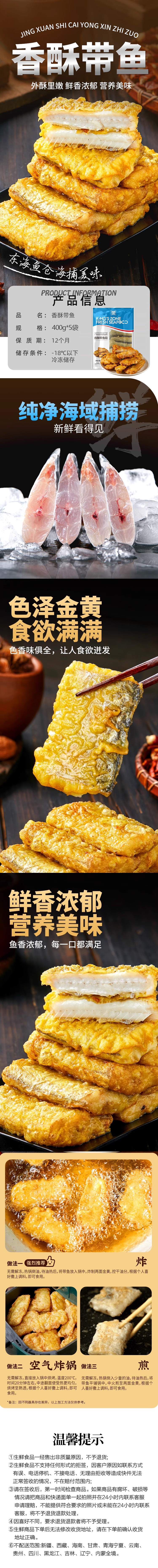 【现货-开袋即烹】东海香酥带鱼段5包2000g