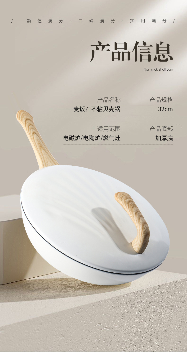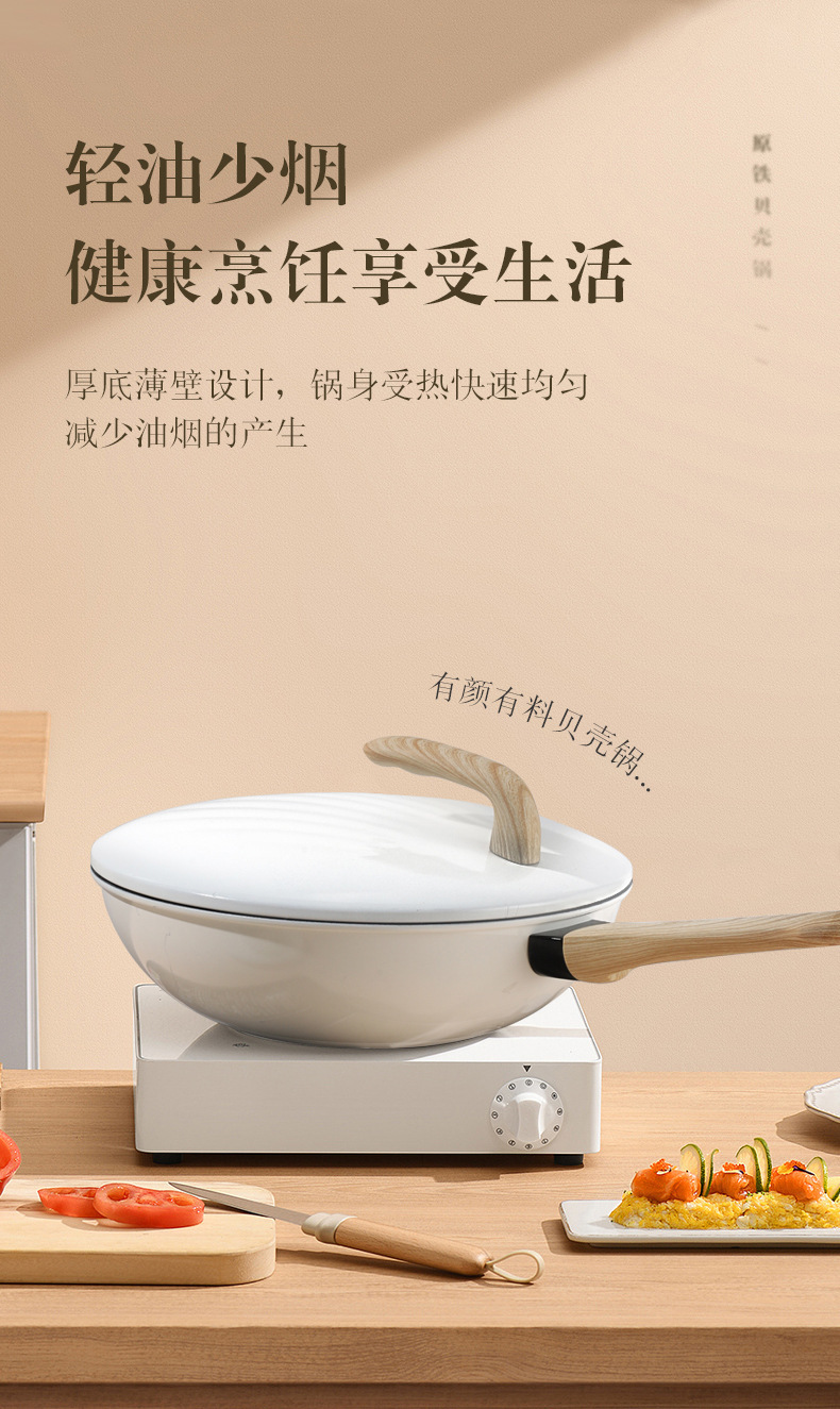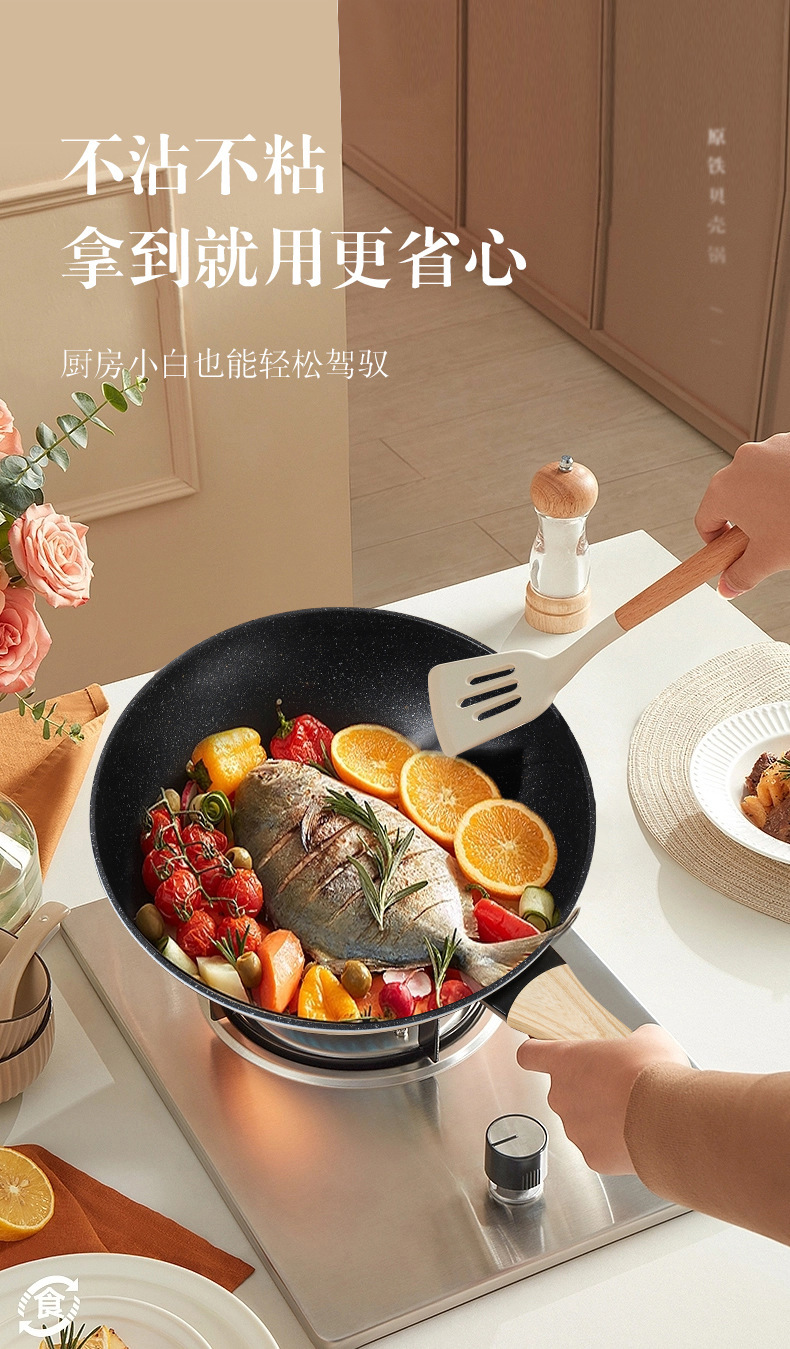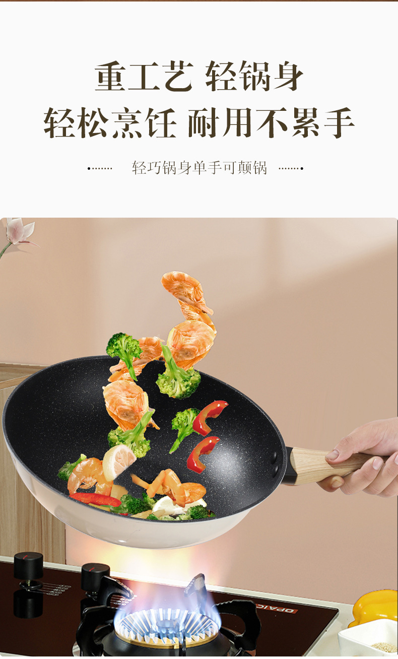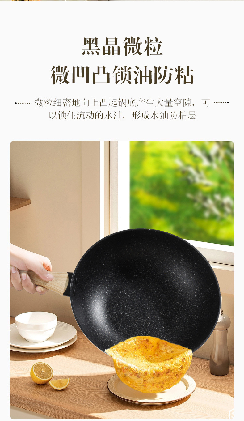 【贝瓷材质,炒菜轻松】陶瓷炒锅不粘锅 网红贝瓷炒菜锅 麦饭石平底深煎锅 电磁炉燃气通用-QQ