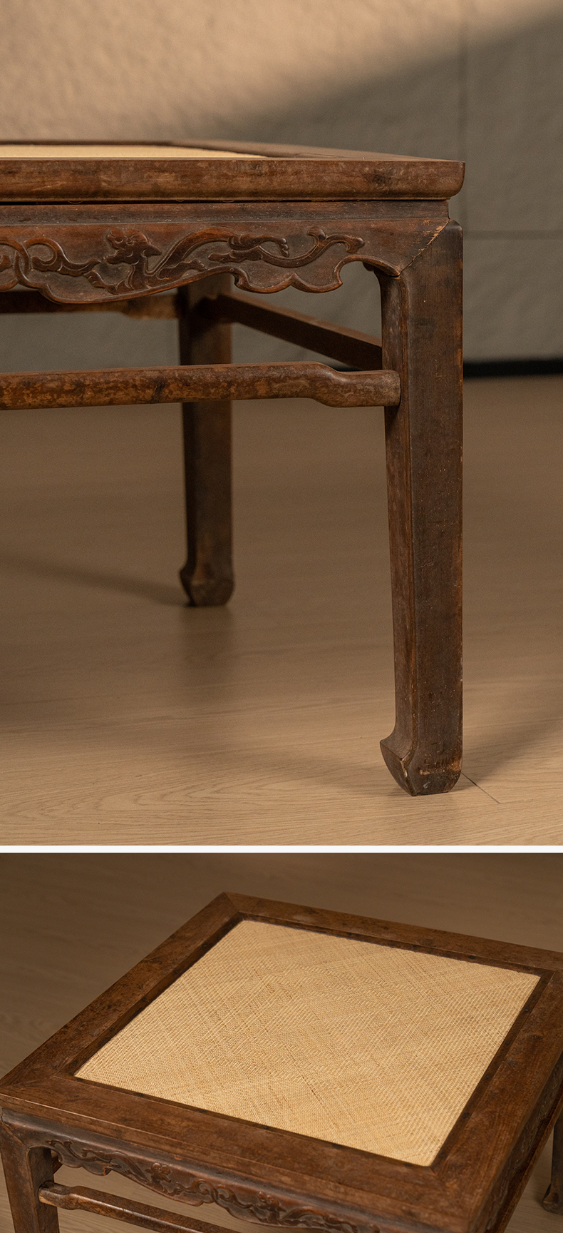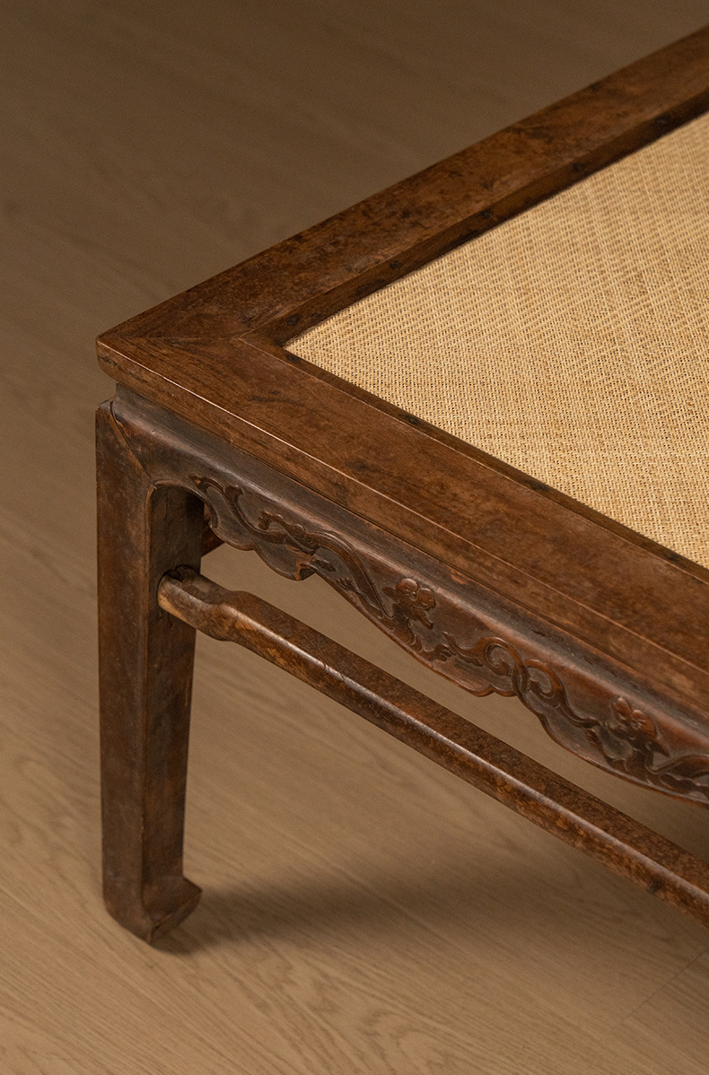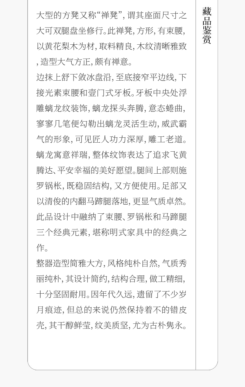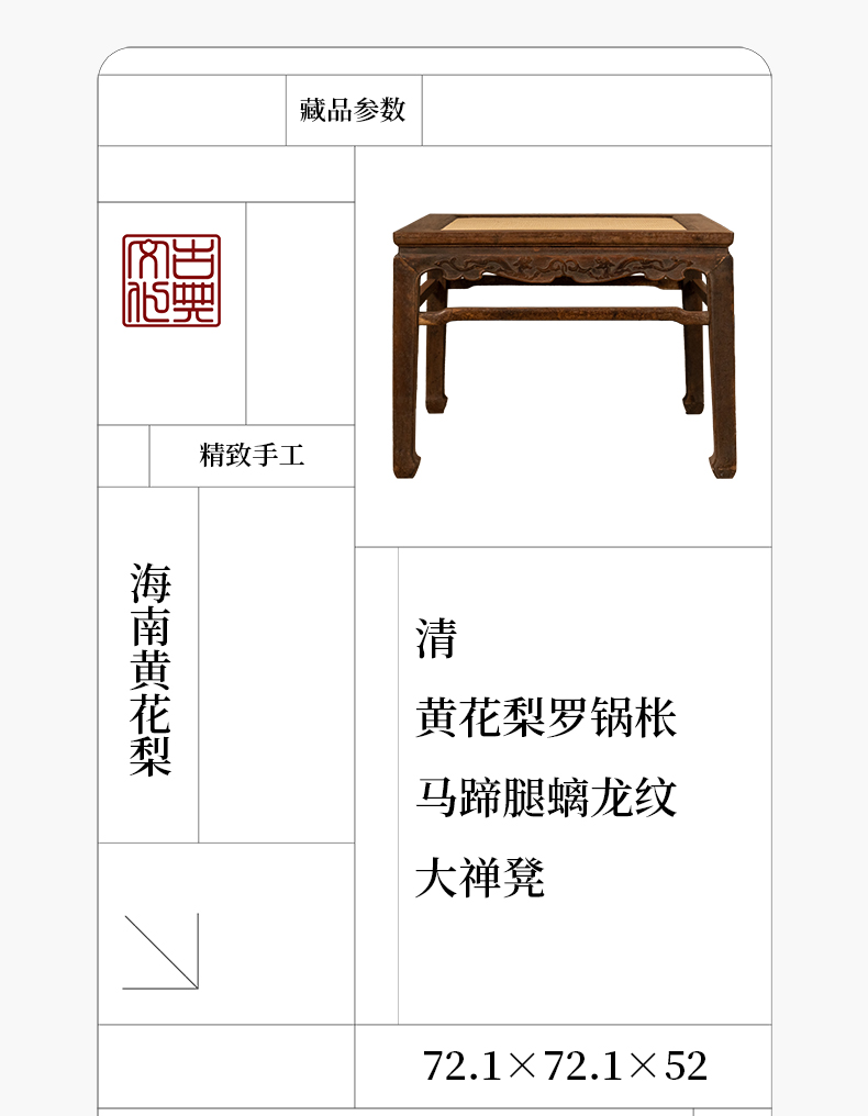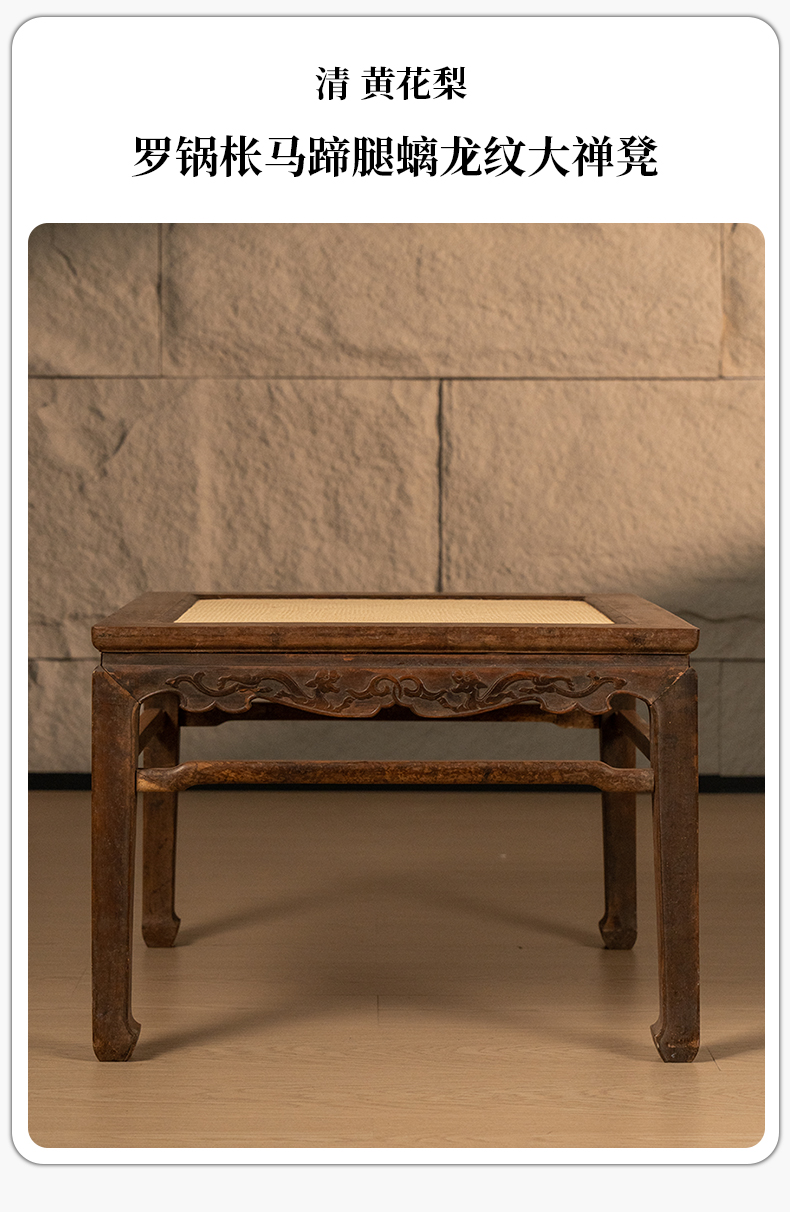 清 黄花梨罗锅枨马蹄腿螭龙纹大禅凳