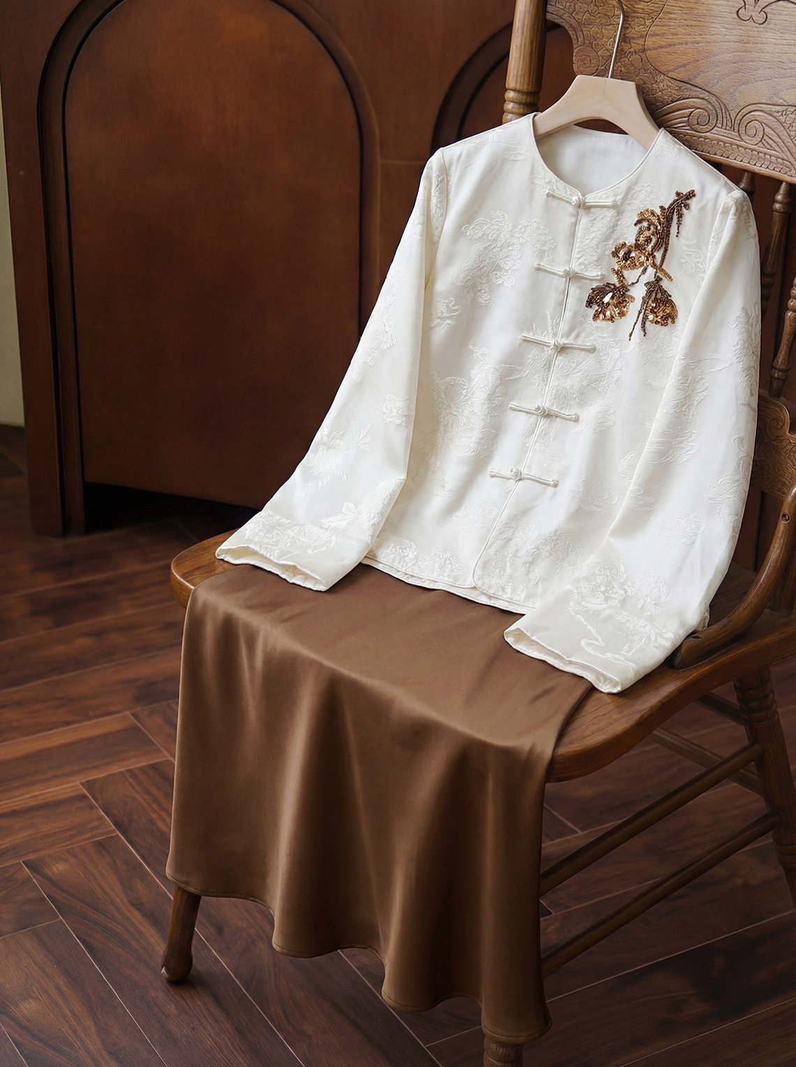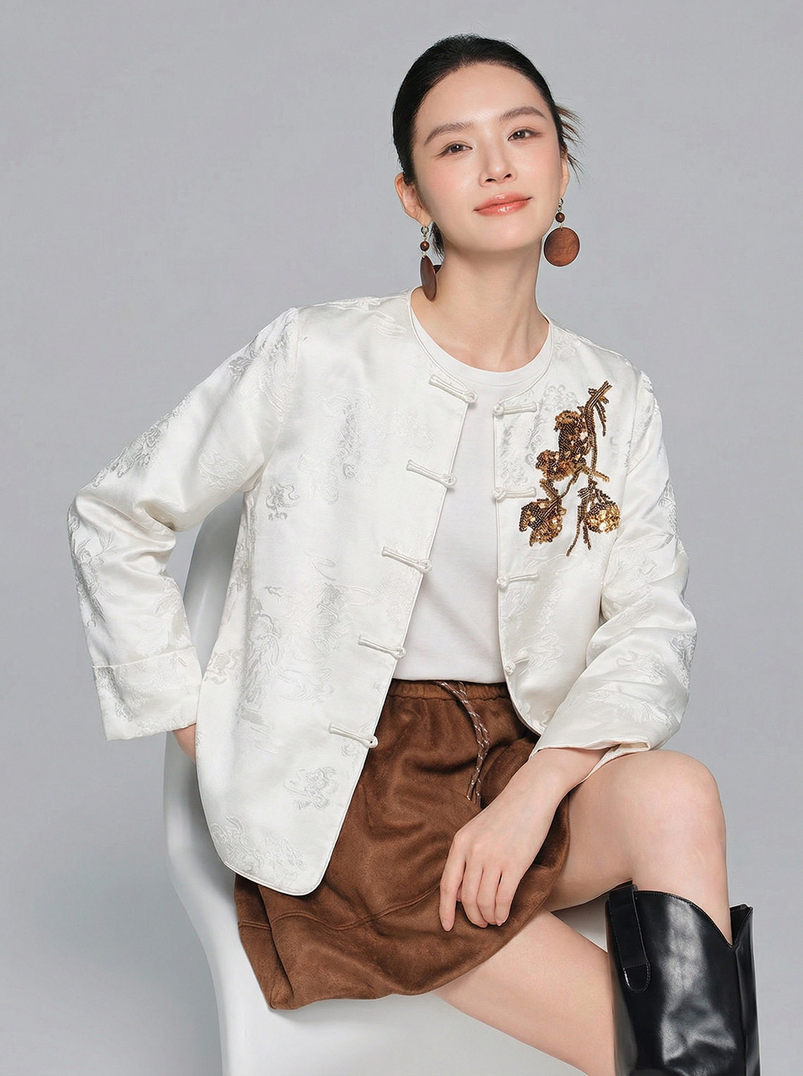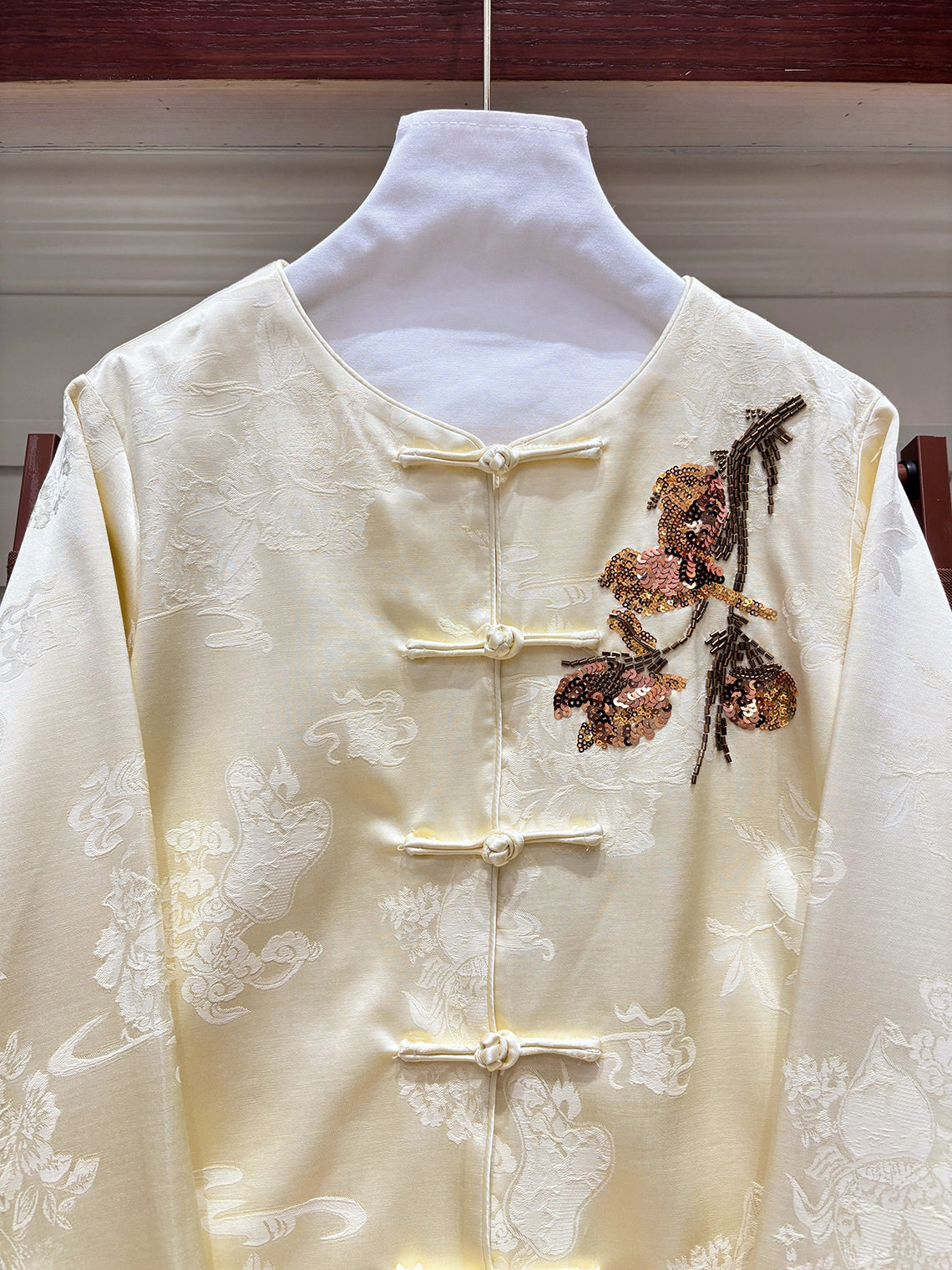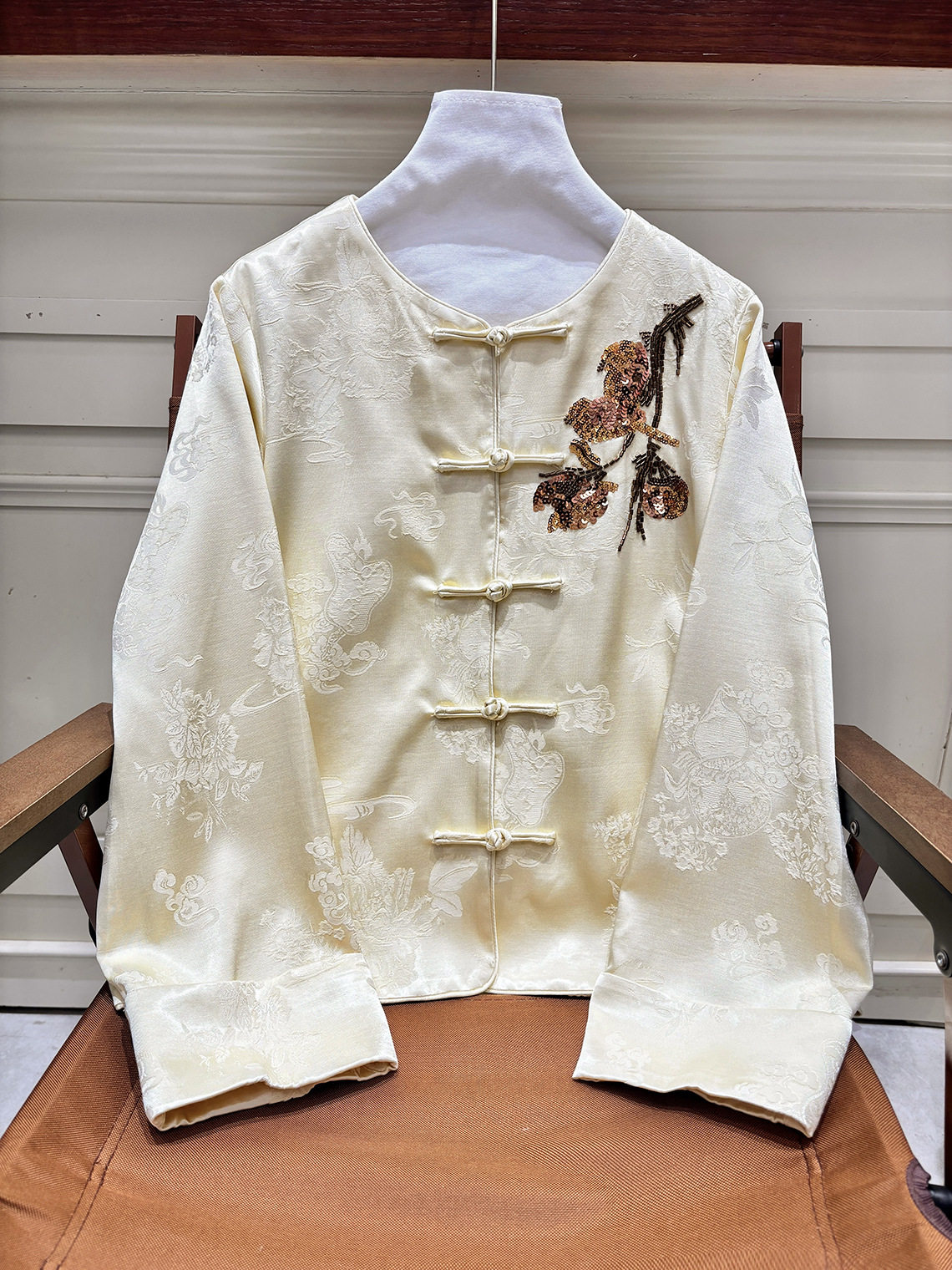 「自」全新升级【铂金会员413/天猫559/差价146】(15439)洛诗琳气质新中式缎面提花外套2026春季新款国风刺绣上衣