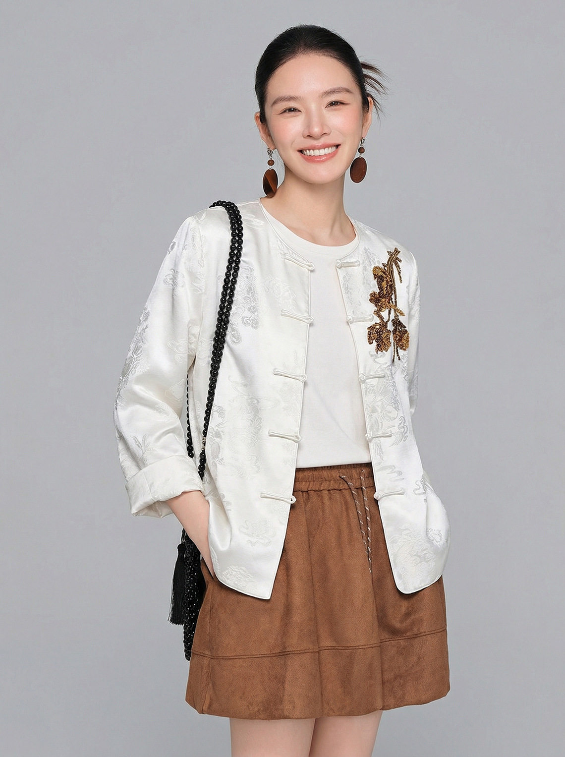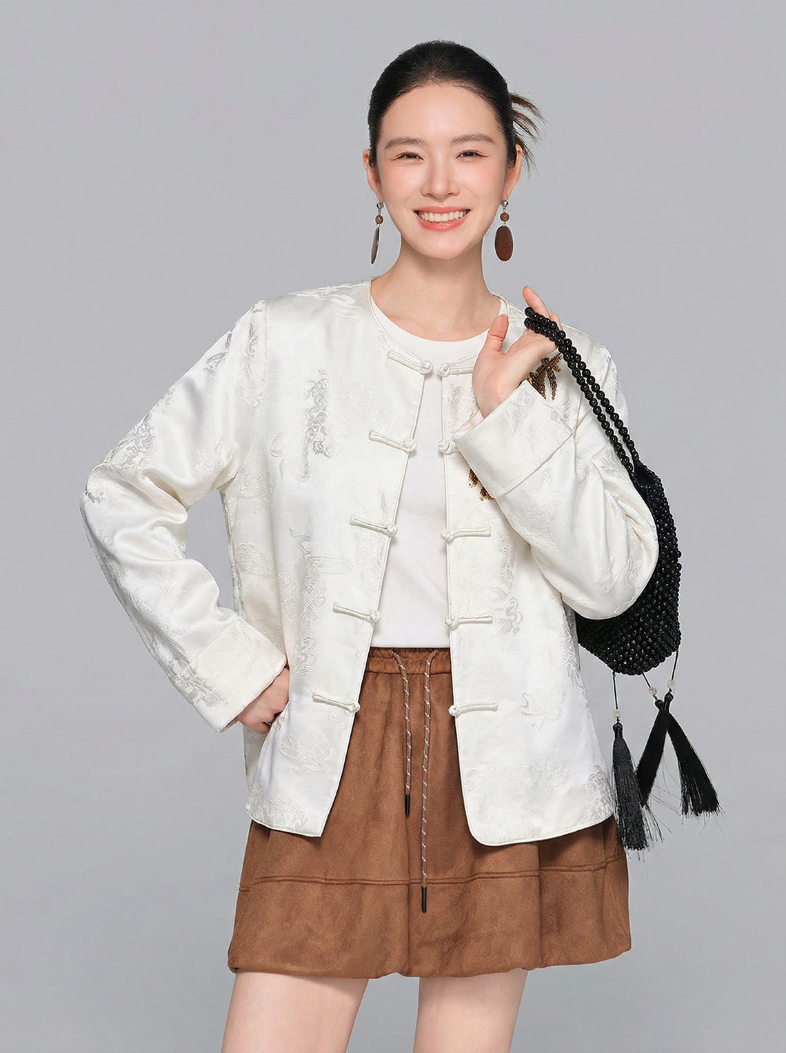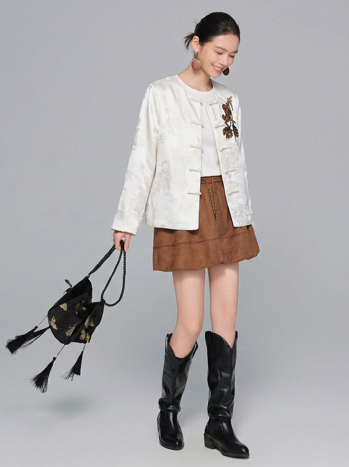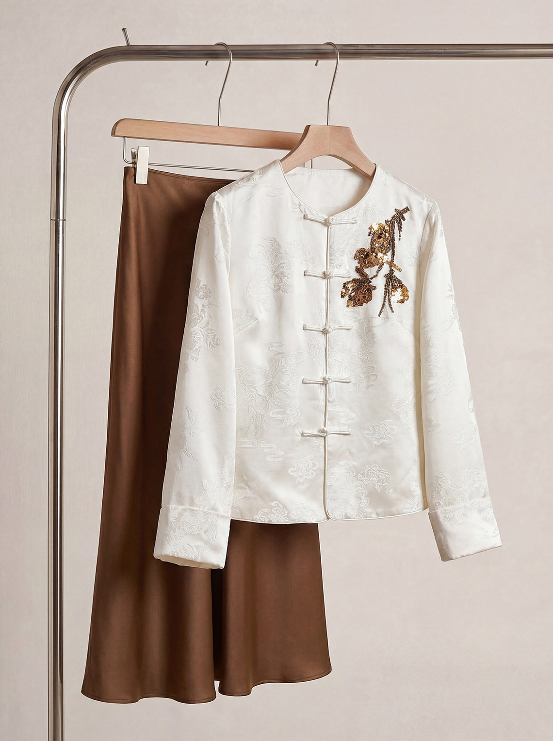 「自」全新升级【铂金会员413/天猫559/差价146】(15439)洛诗琳气质新中式缎面提花外套2026春季新款国风刺绣上衣