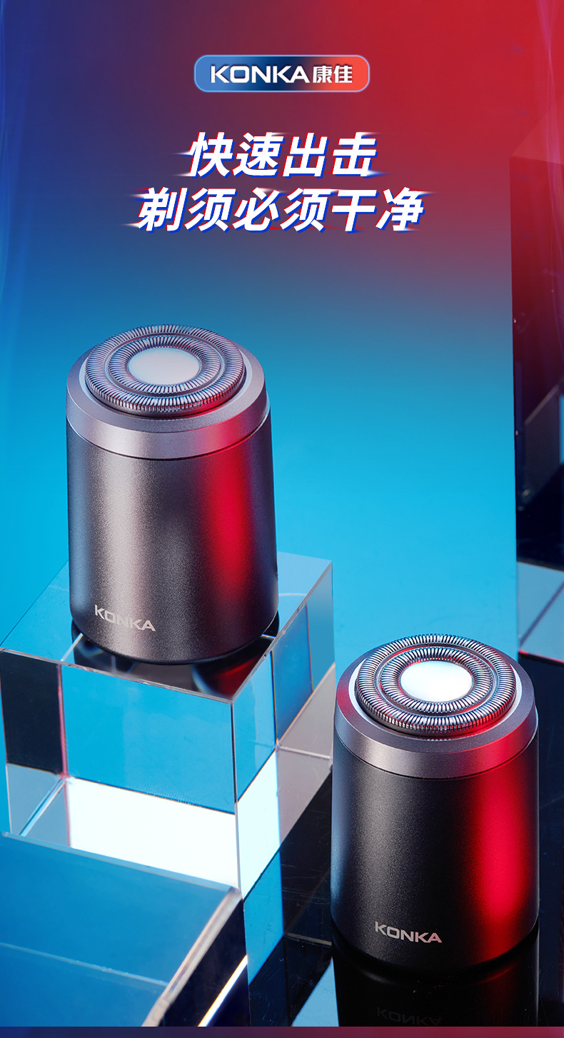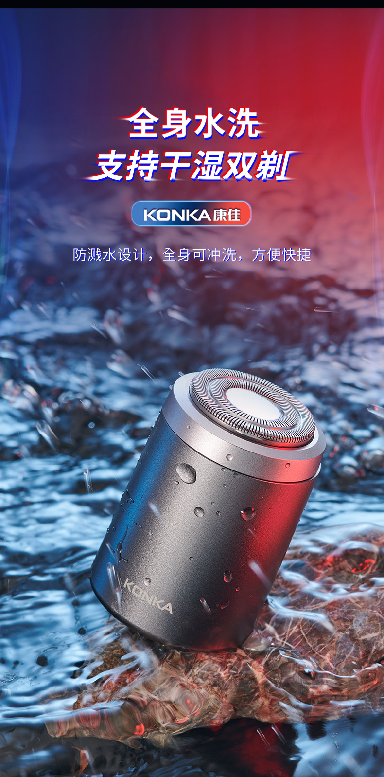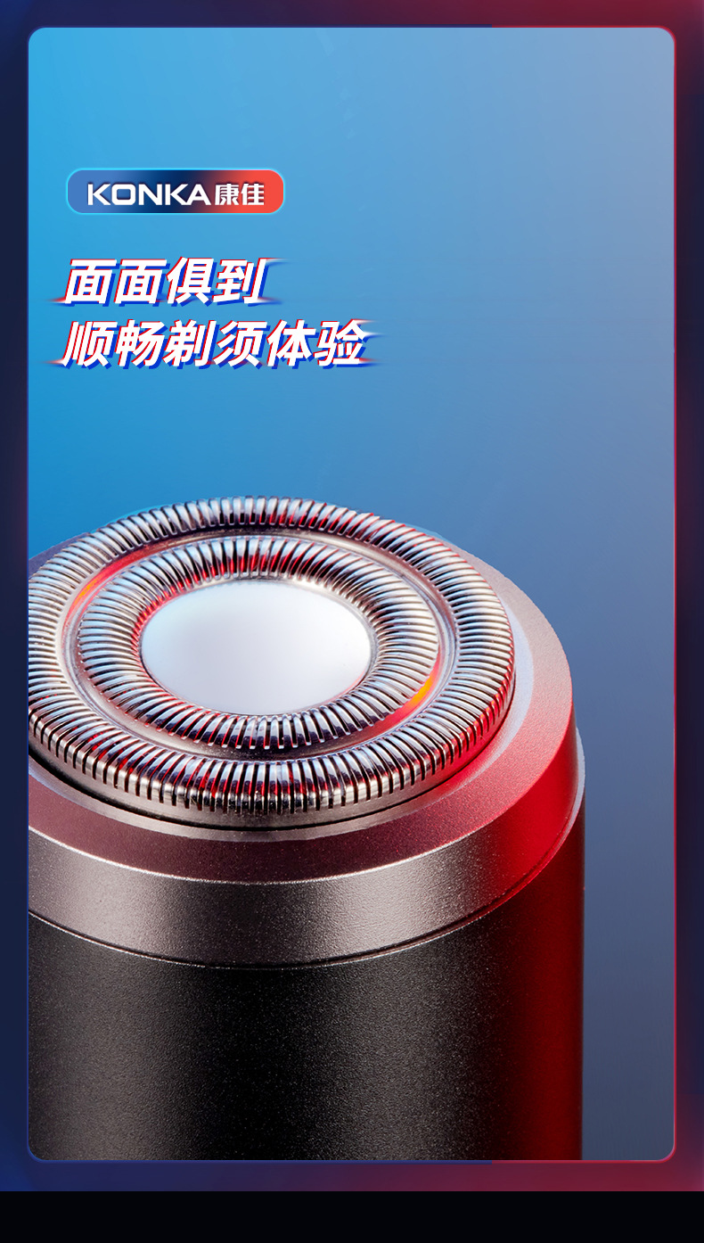 【康佳快速出击剃须必须干净】剃须刀电动充电款小型迷你便携式,3D超大浮动刀网 360°贴合面部剃须不留痕,长久续航胡须刀全身水洗小钢炮刮胡刀七夕情人节礼物QQ新年礼盒年货礼盒