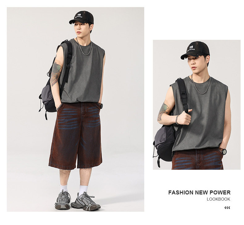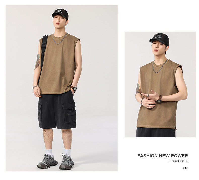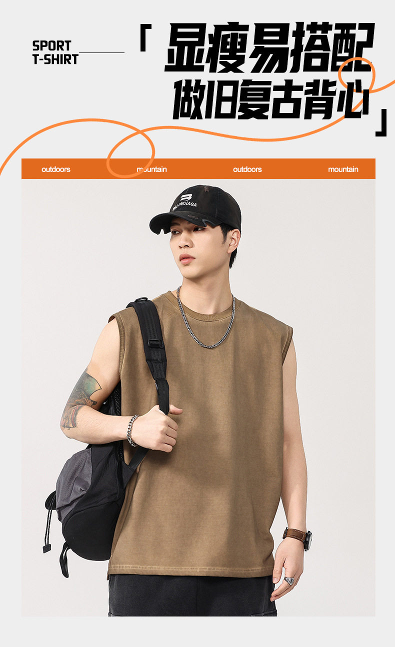 【DYG】大依优型大码男装夏季运动背心无袖重磅棉质T恤宽松坎肩篮球背心