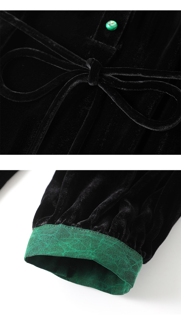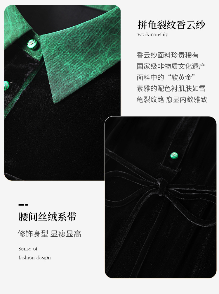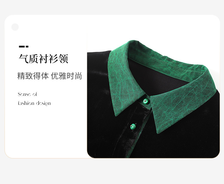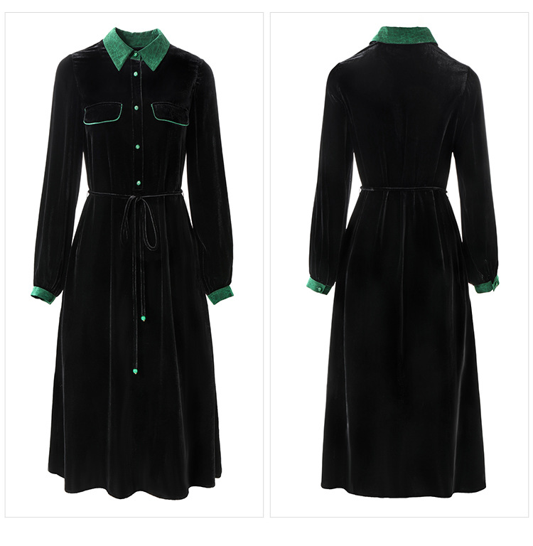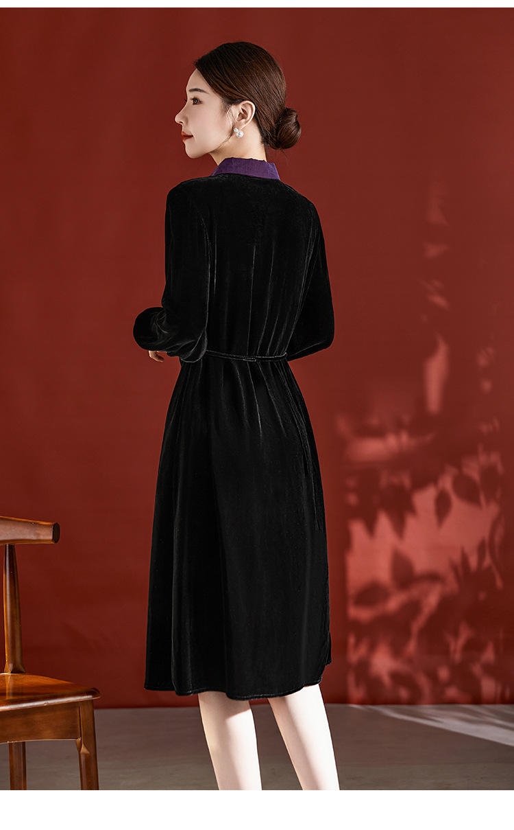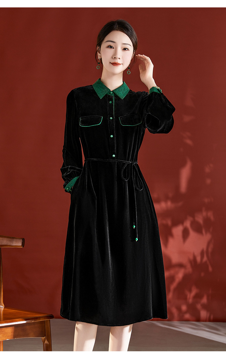 高贵气质时尚长袖,翻领真丝丝绒连衣裙SM-82395620