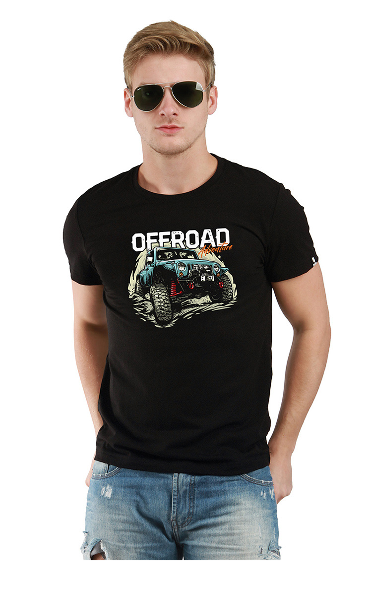 2022夏季新品户外休闲青年牧马人插画印花图案短袖合体圆领t恤衫 NMT-1806