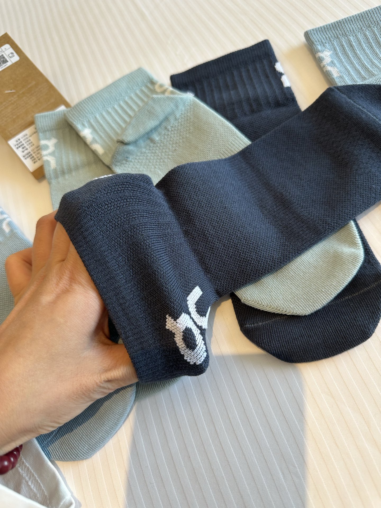 拿在手里就是开心,很扎实! 质感满满,虽然是一双袜子,但是持着负责任的态度,我都要试穿一下,然后把我的感受讲出来,一点没有夸张!