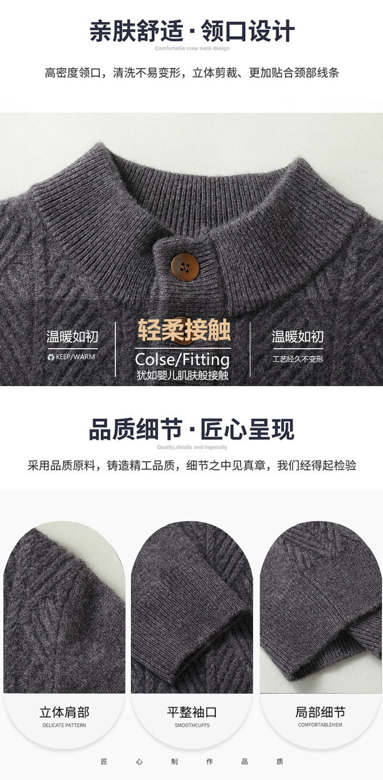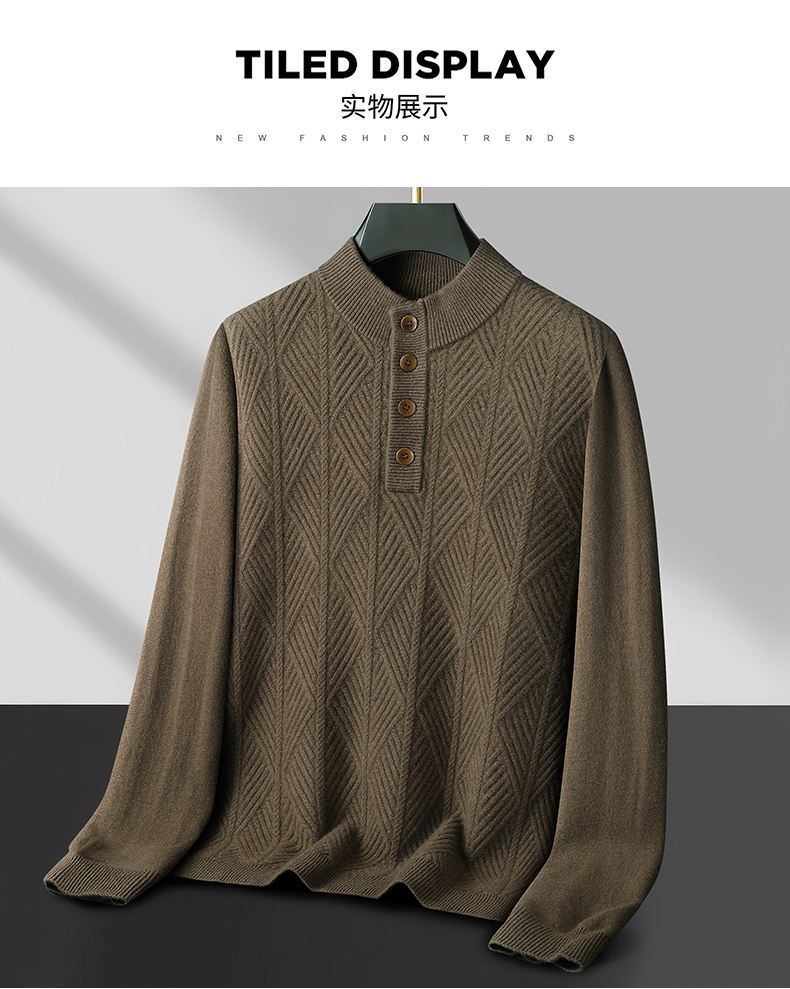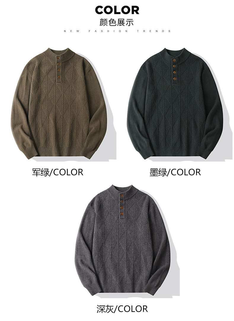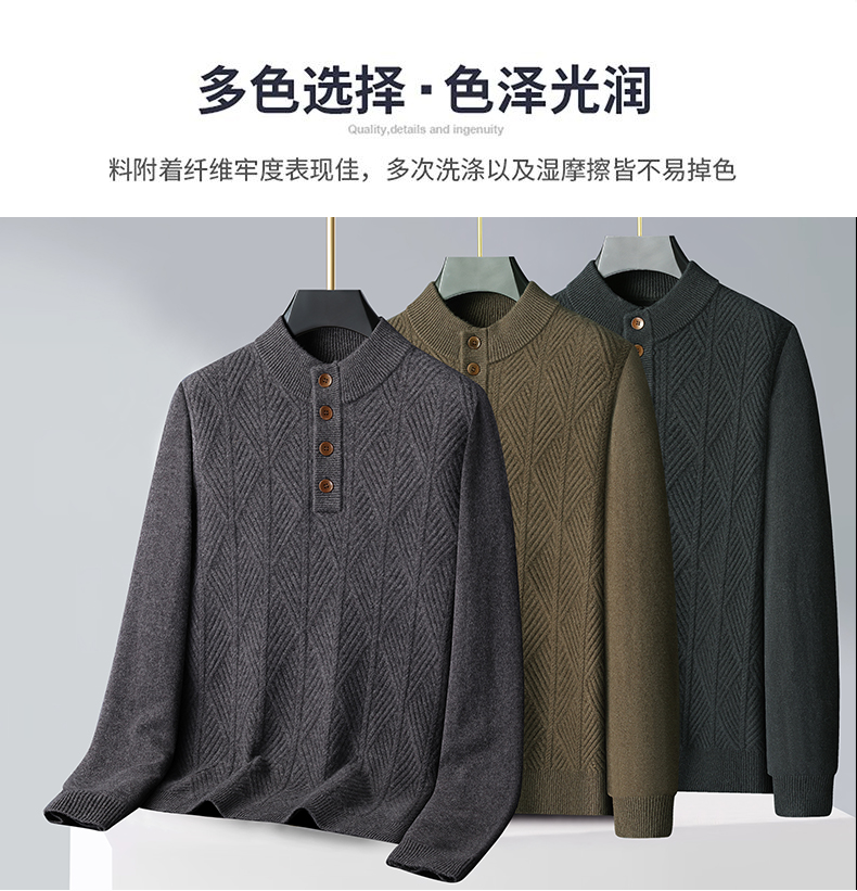【绵羊毛】【新款DWP】大依优型大码羊毛衫针织衫立领加肥加大毛衣大号胖子宽松毛衫男装上衣打底