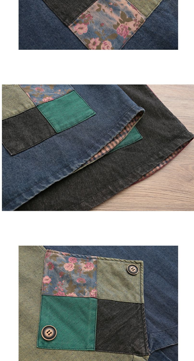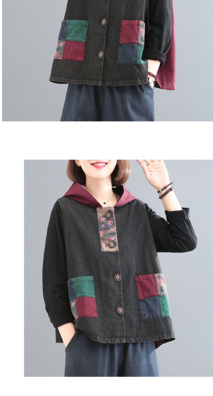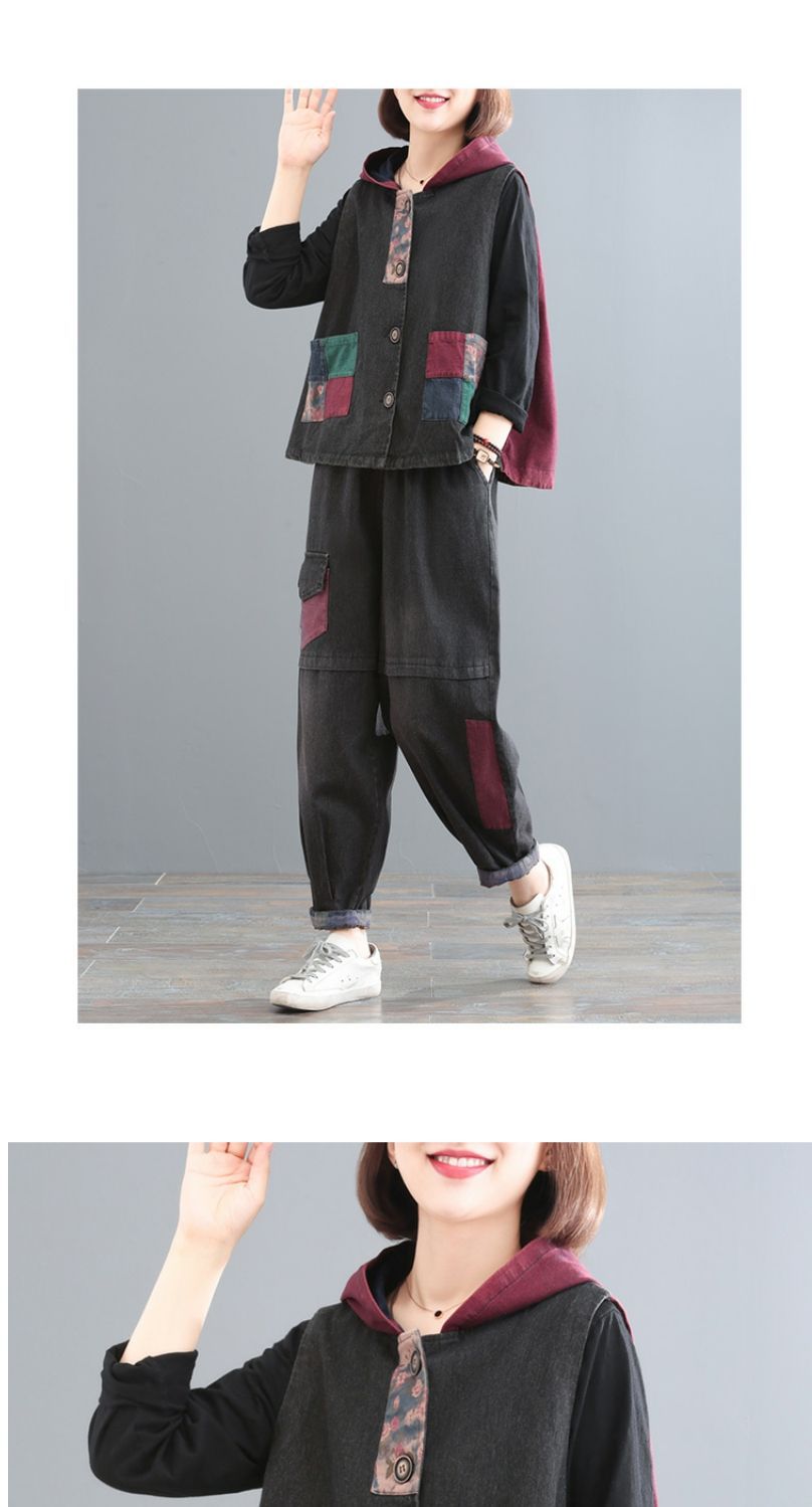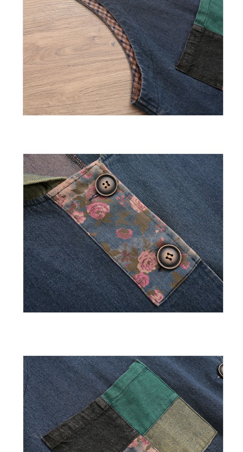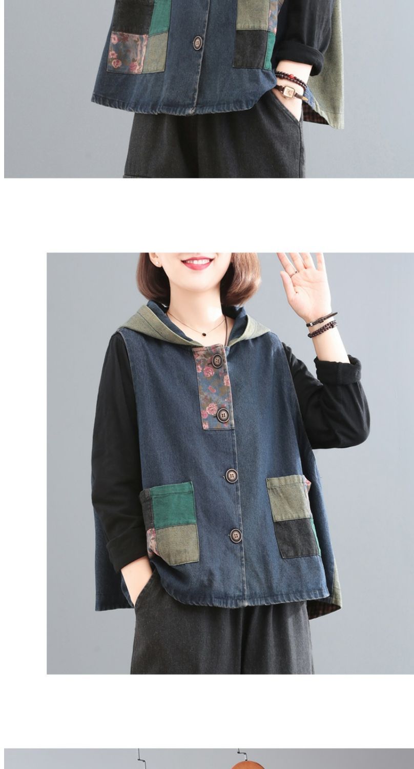 雀说 复古做旧连帽印花拼接牛仔马甲女617