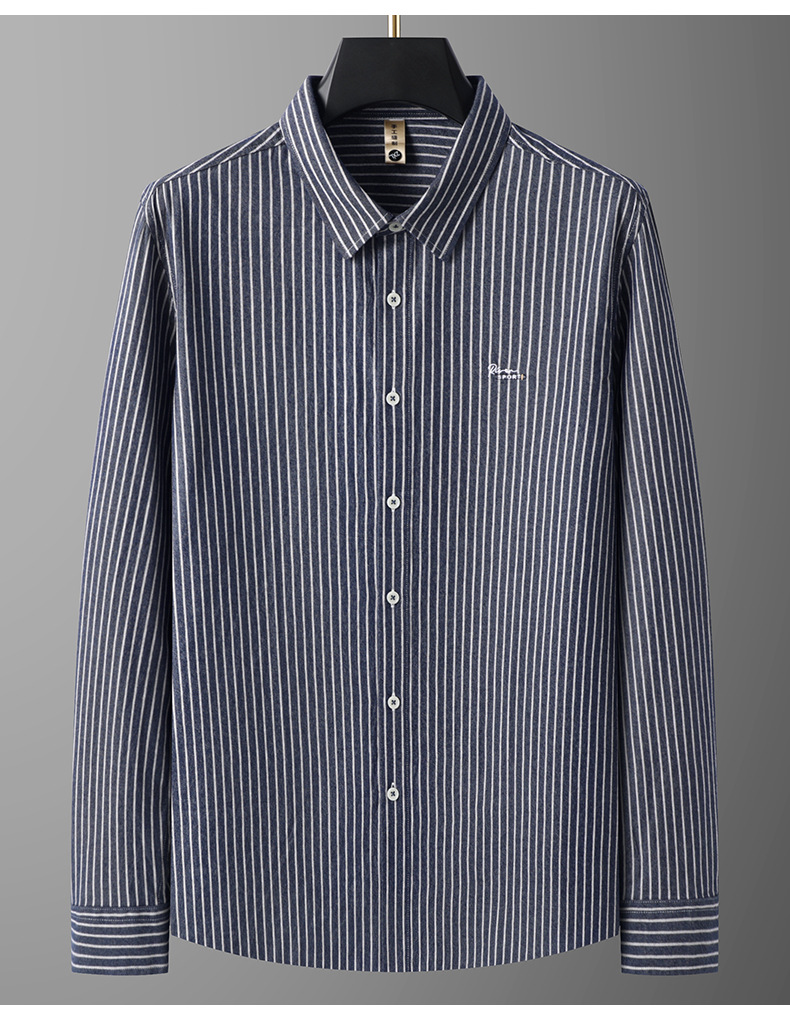 【100%棉】【DG】大依优型大码男装加肥大码男装全棉长袖衬衫纯棉上衣服胖子时尚休闲竖条