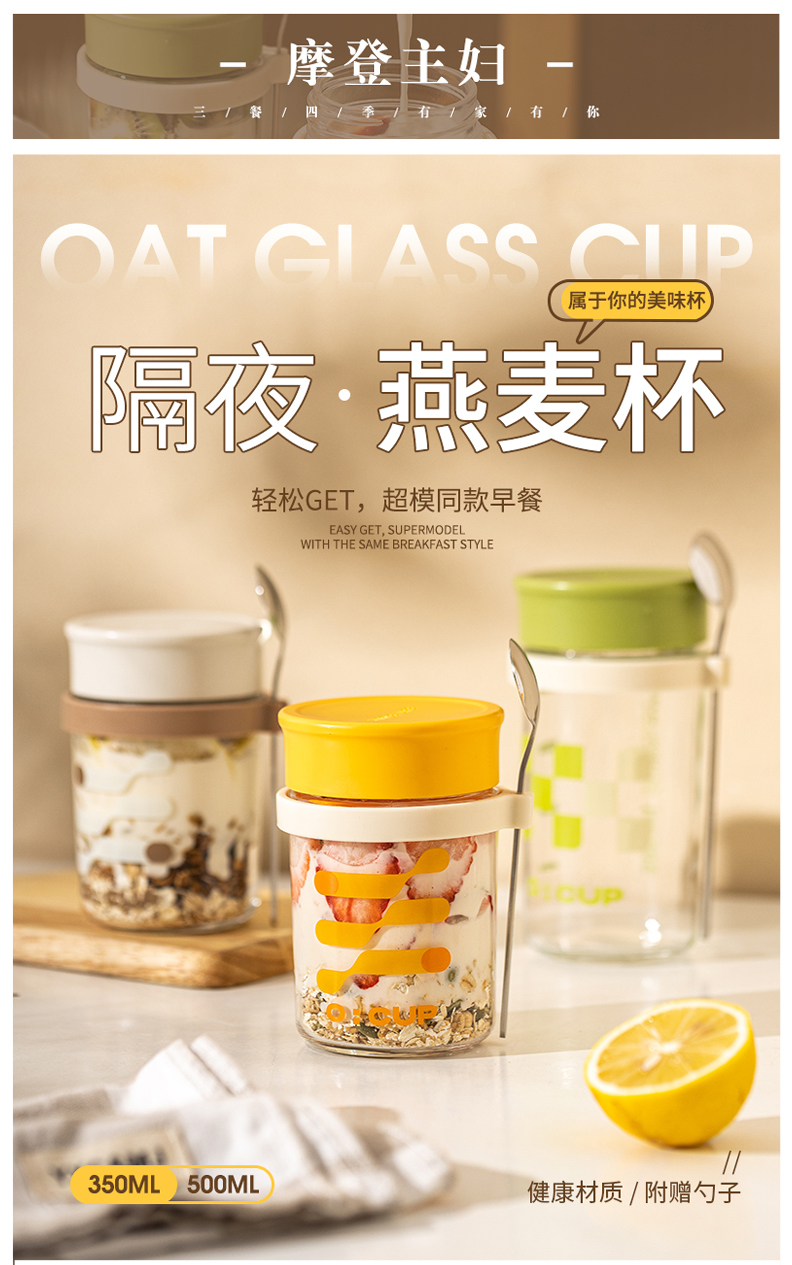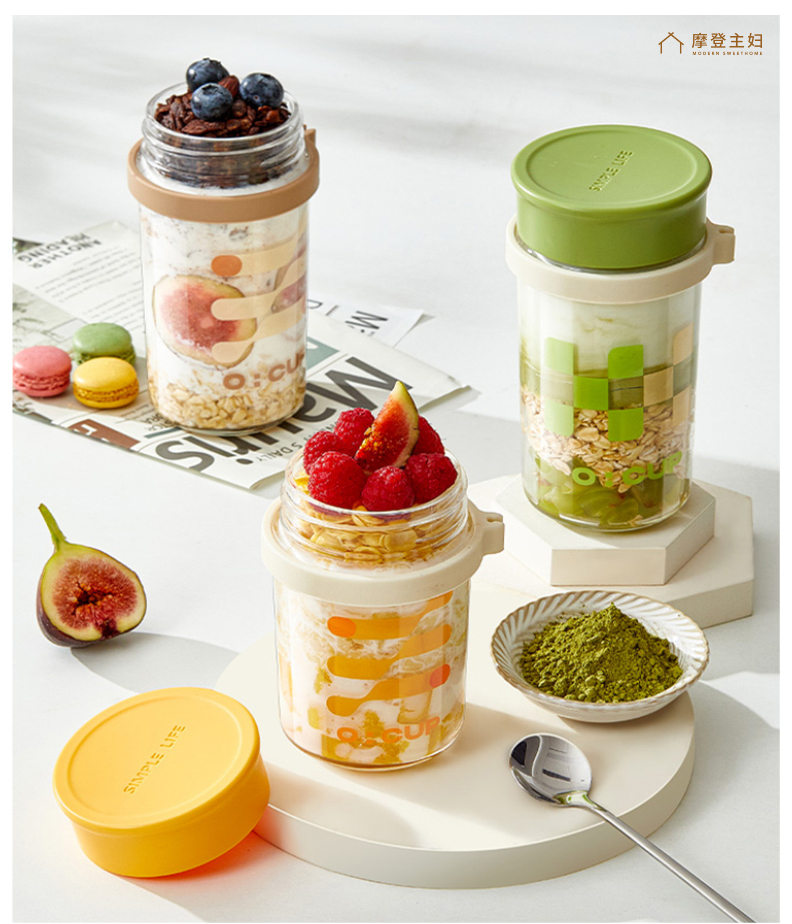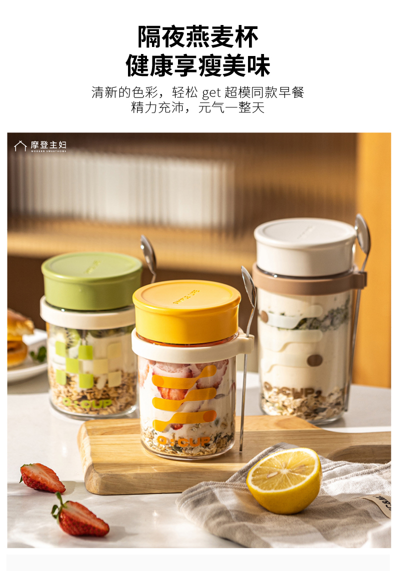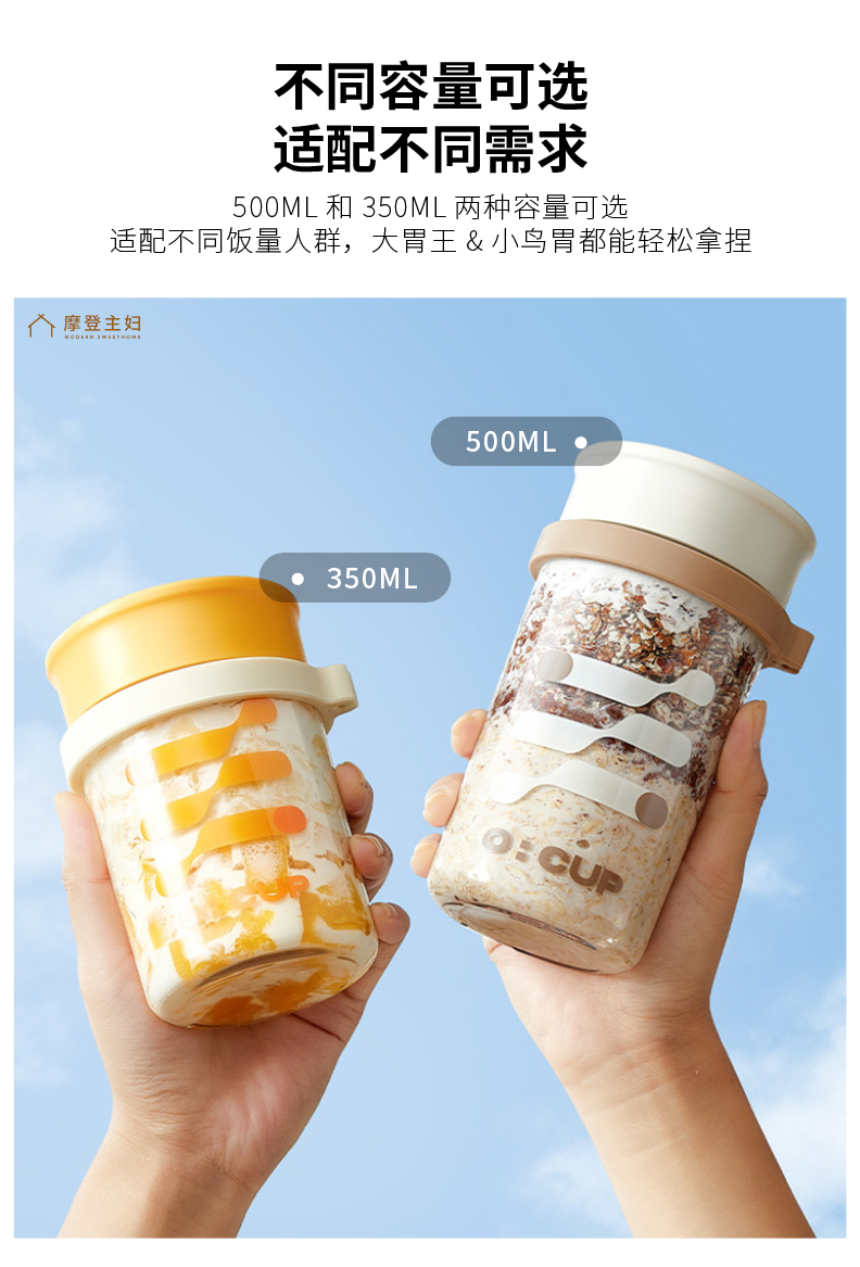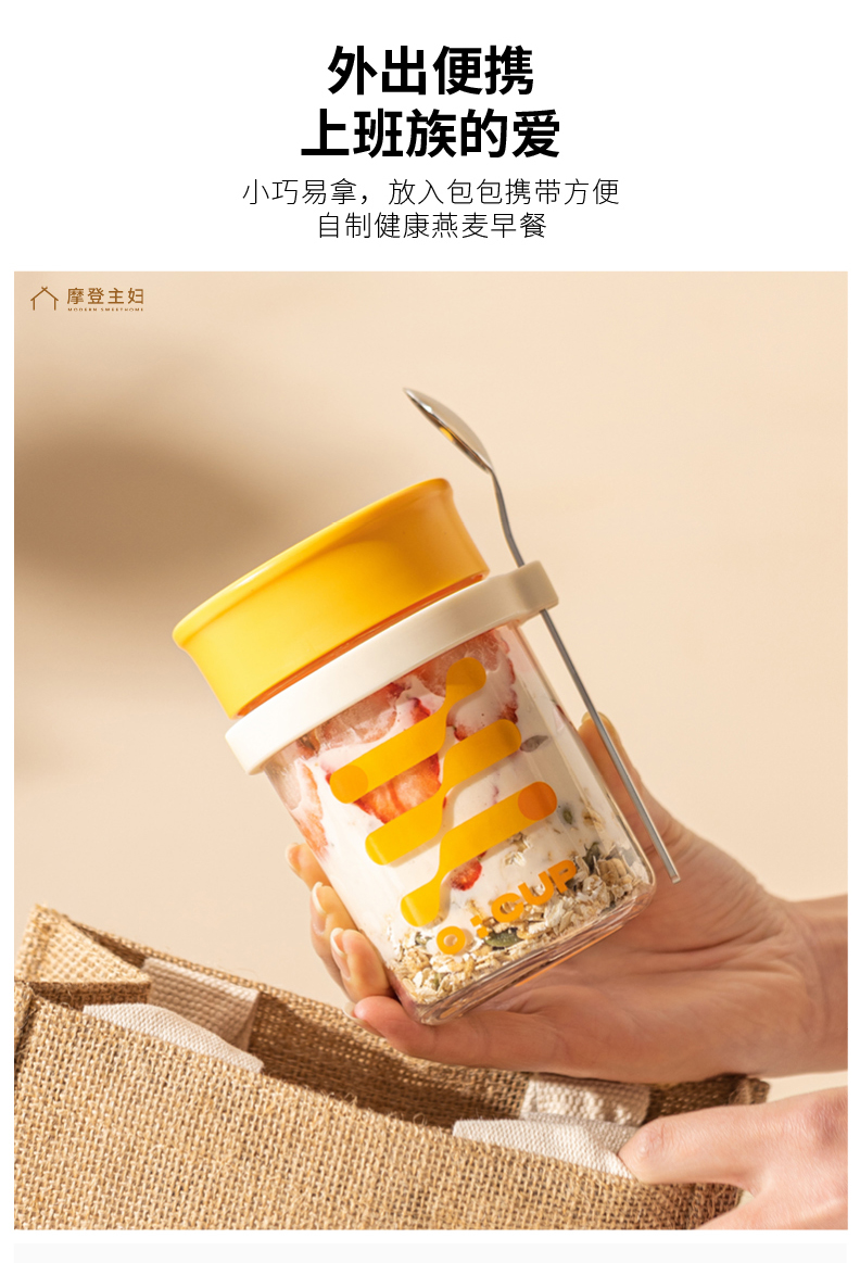 摩登主妇隔夜燕麦杯酸奶杯刻度牛奶杯豆浆杯外带奶昔杯便携早餐杯