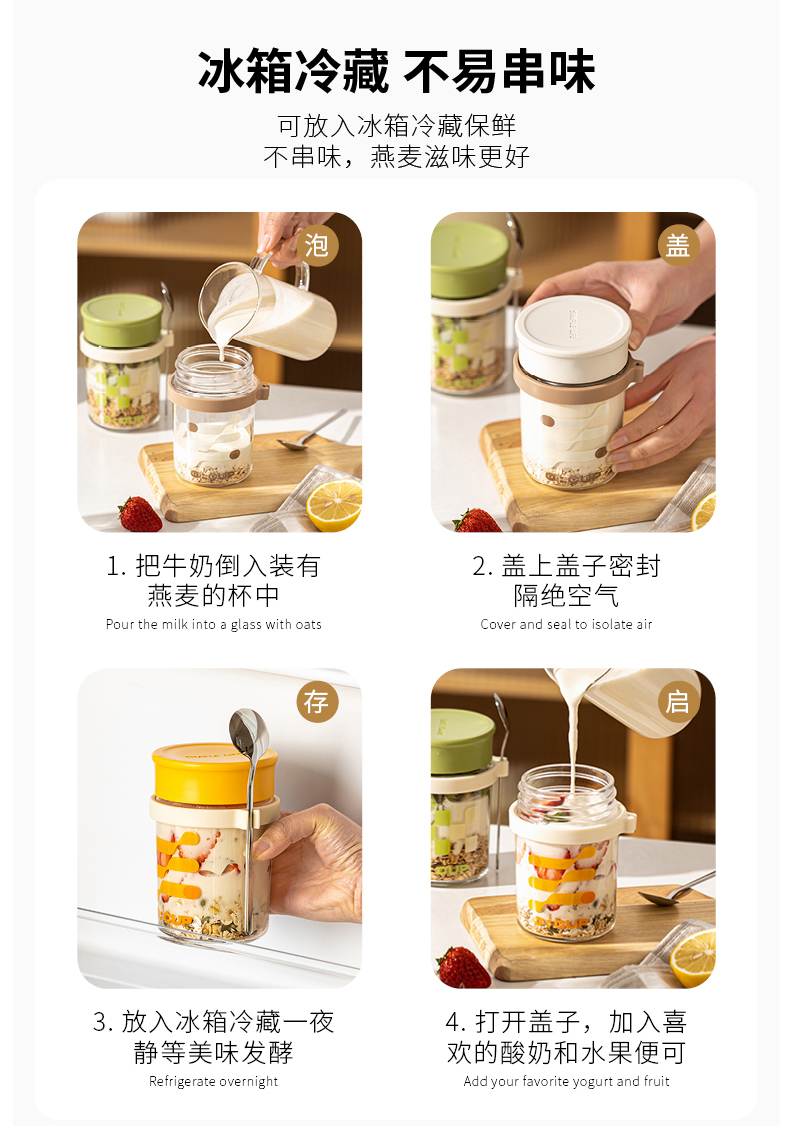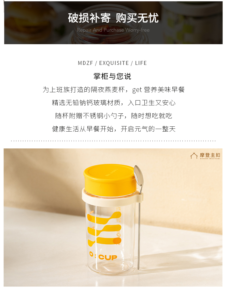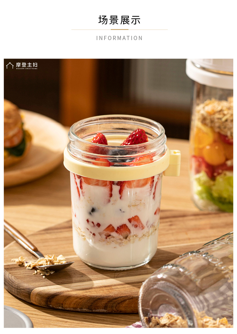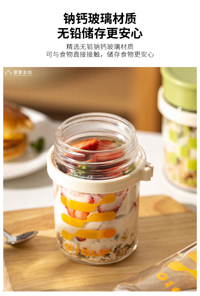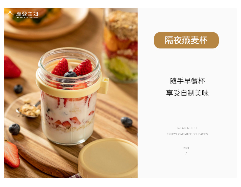 摩登主妇隔夜燕麦杯酸奶杯刻度牛奶杯豆浆杯外带奶昔杯便携早餐杯