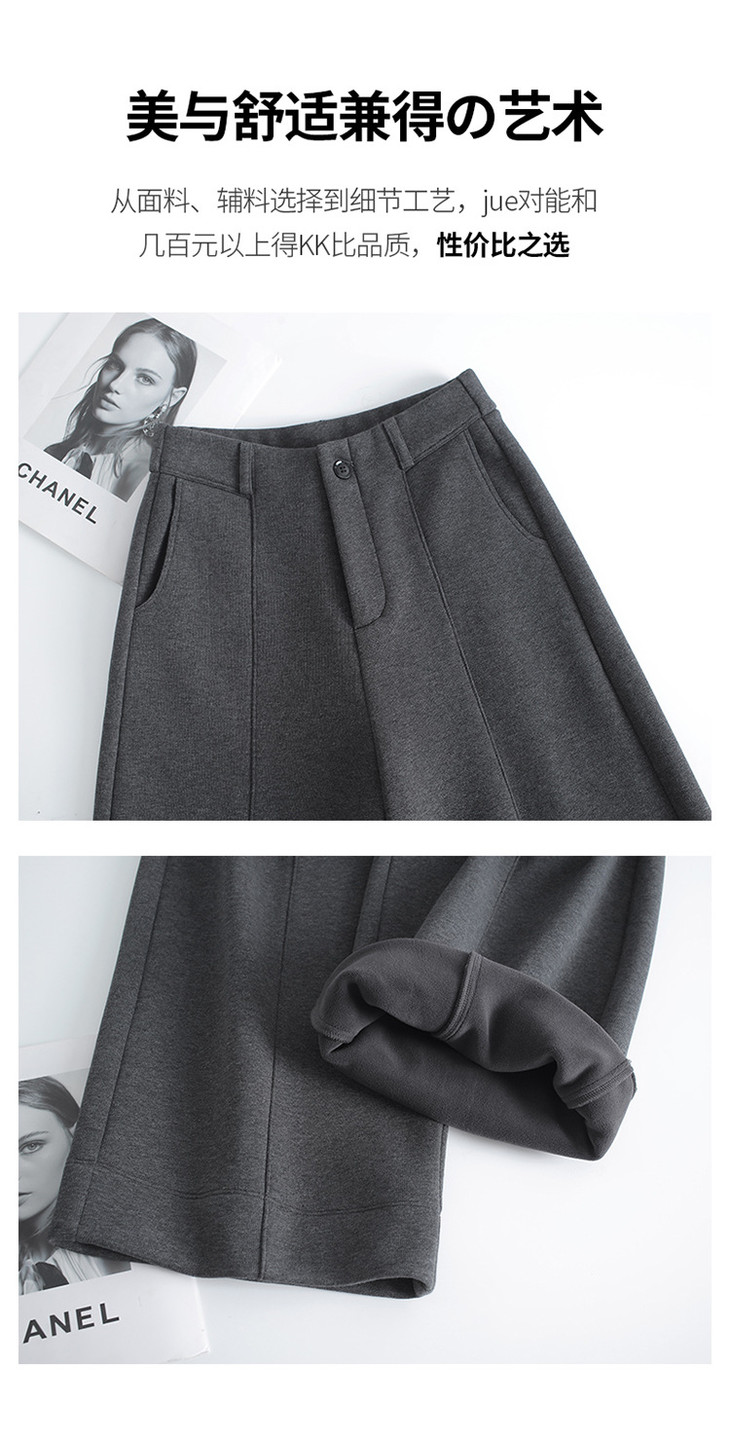 垂坠感加绒保暖直筒裤,长款高腰阔腿裤休闲女裤MYX-KDFY-39559-L
