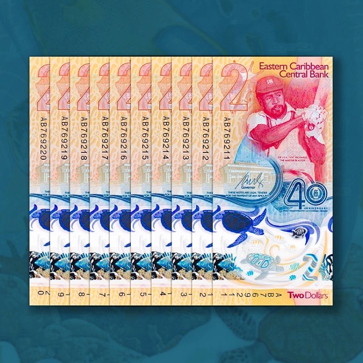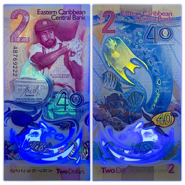 【获奖纪念钞】东加勒比中央银行成立40周年纪念钞 塑料钞