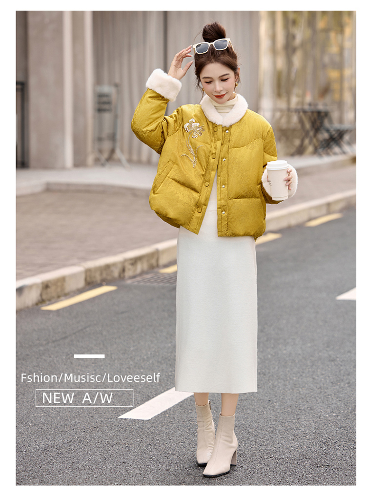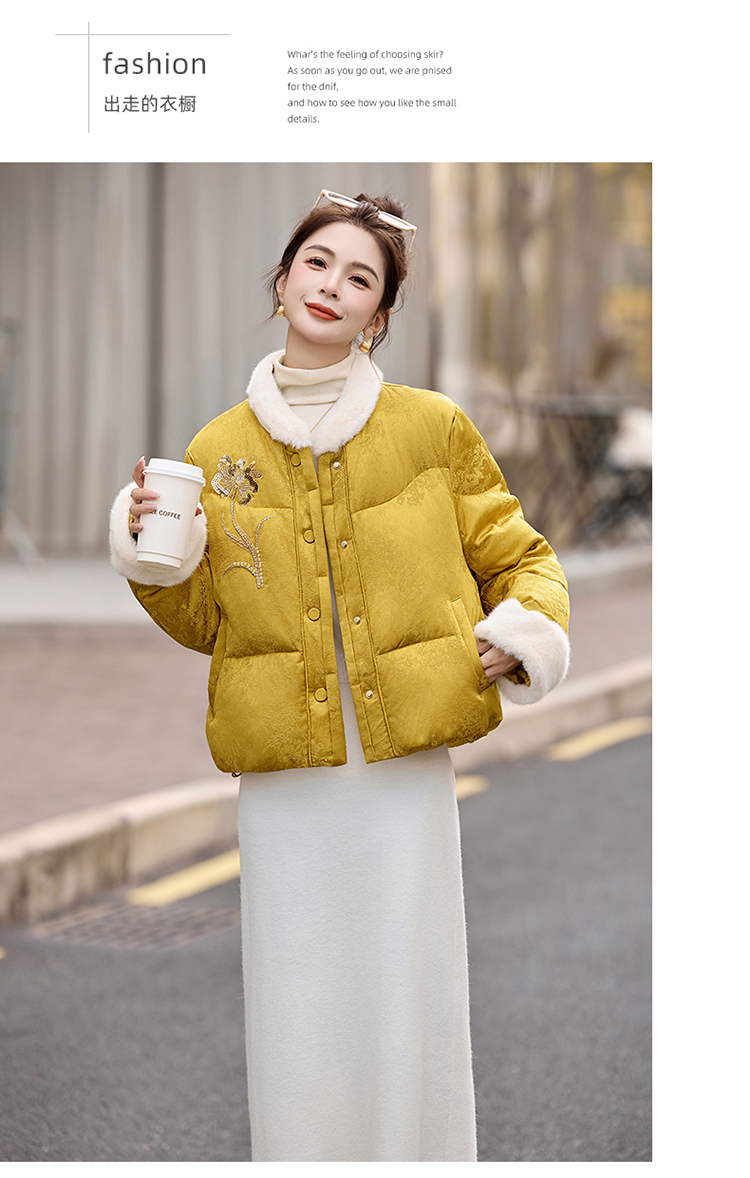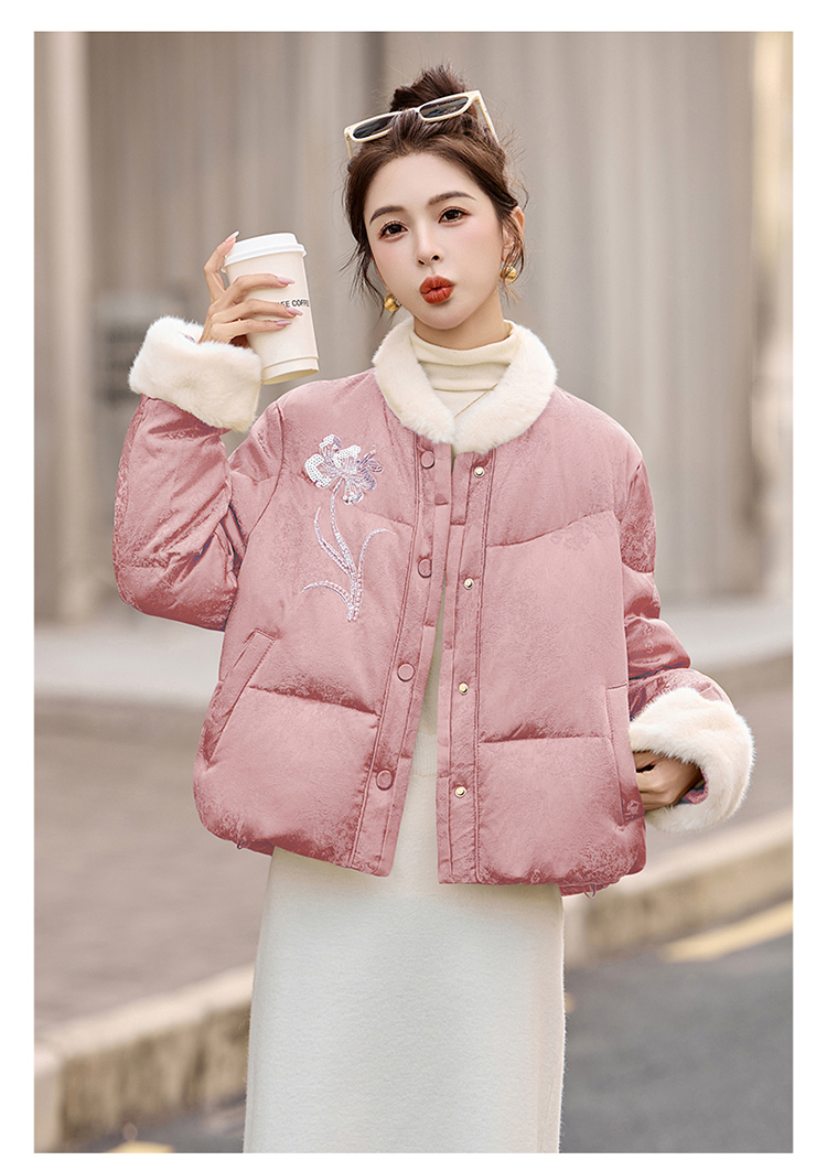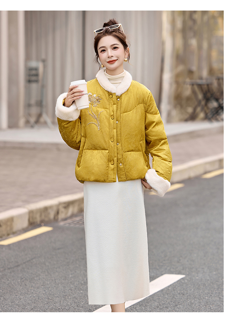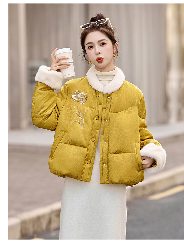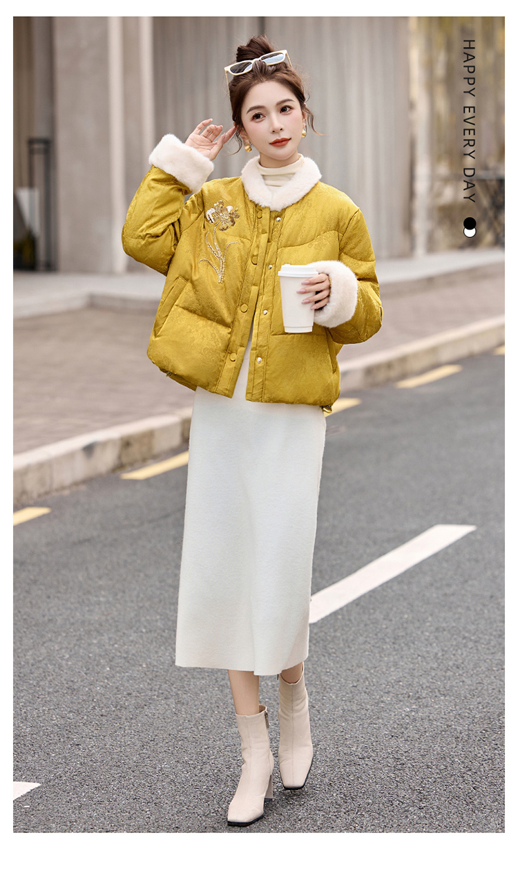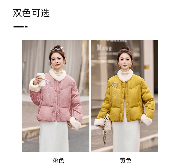 新中式国风短款羽绒服,毛领刺绣洋气减龄小个子外套HR-AQHUI8151