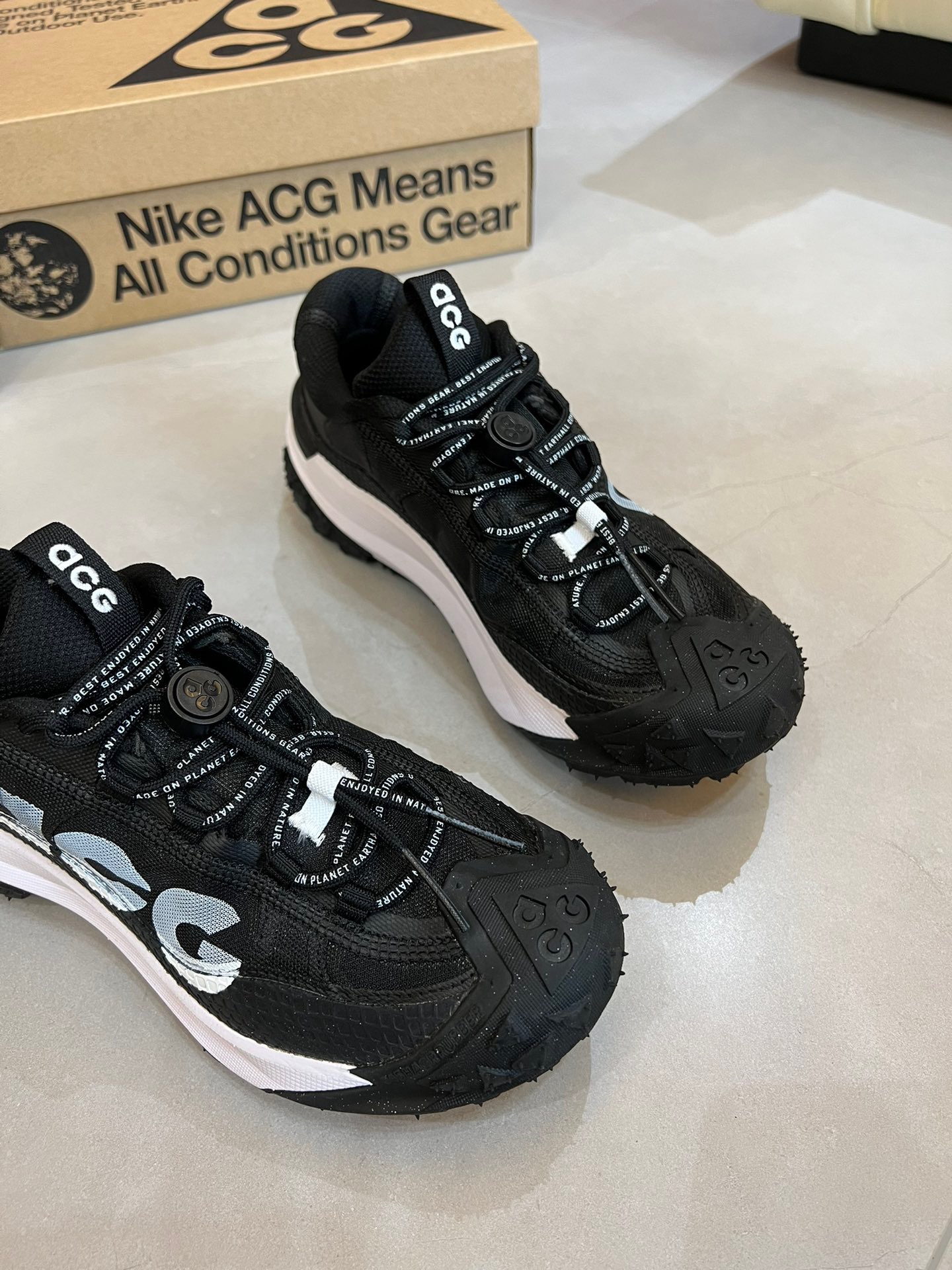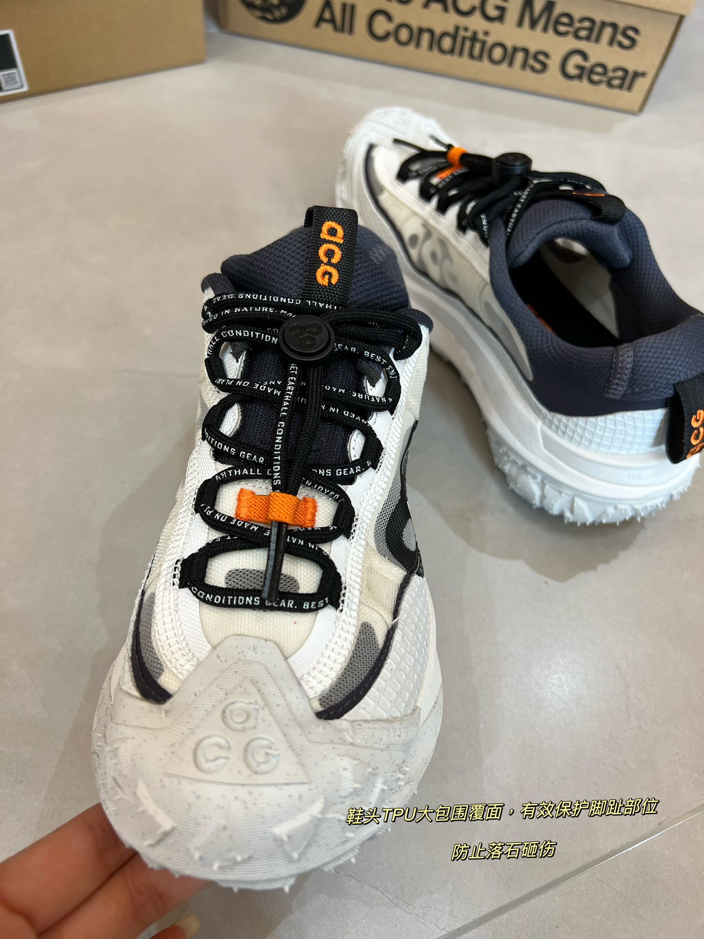 其实acg是nike家旗下的专业户外功能支线品牌 而耐克 ACG的灵感来源于被视为“石头大师”的年轻冒险攀岩者 因为南加州的这些人喜欢不用绳子 穿着休闲运动鞋而不是靴子攀爬 在注意到许多石匠都在用跑鞋攀爬后