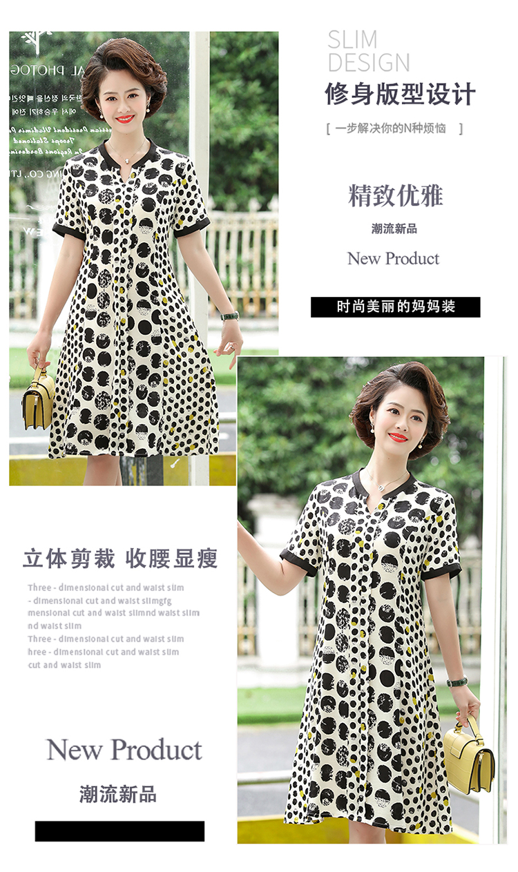 WZNH-YIZX7997夏新款仿真丝黑色波点收腰优雅名媛风真丝连衣裙