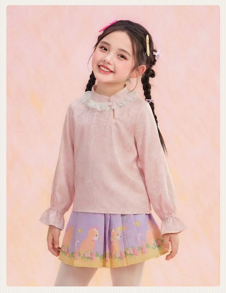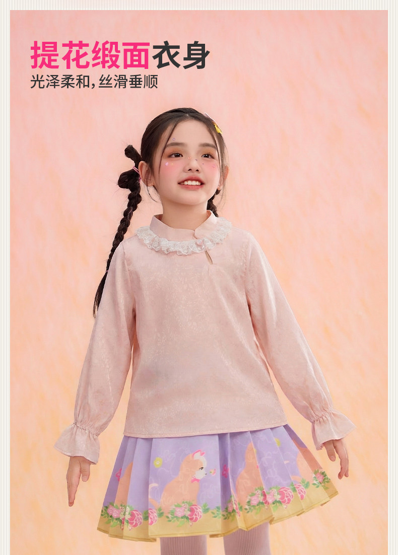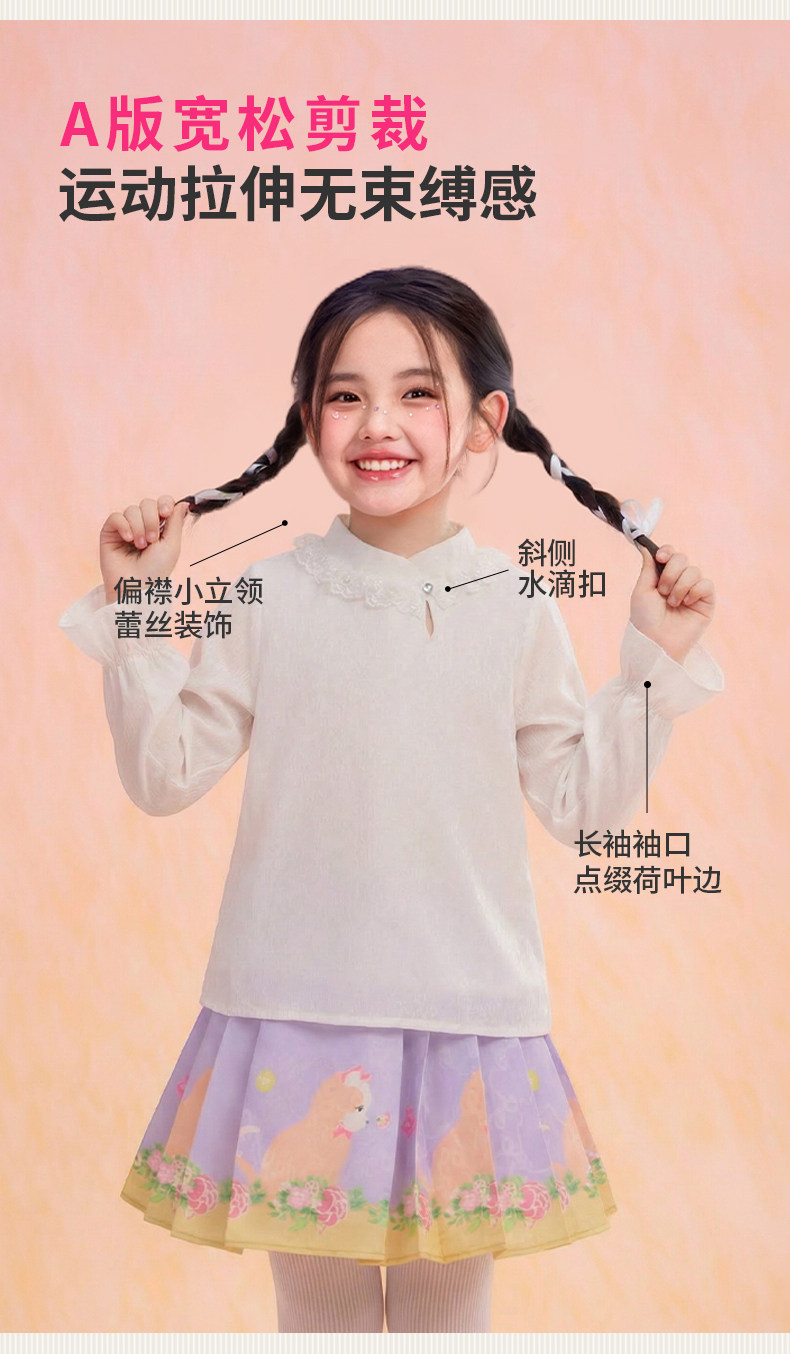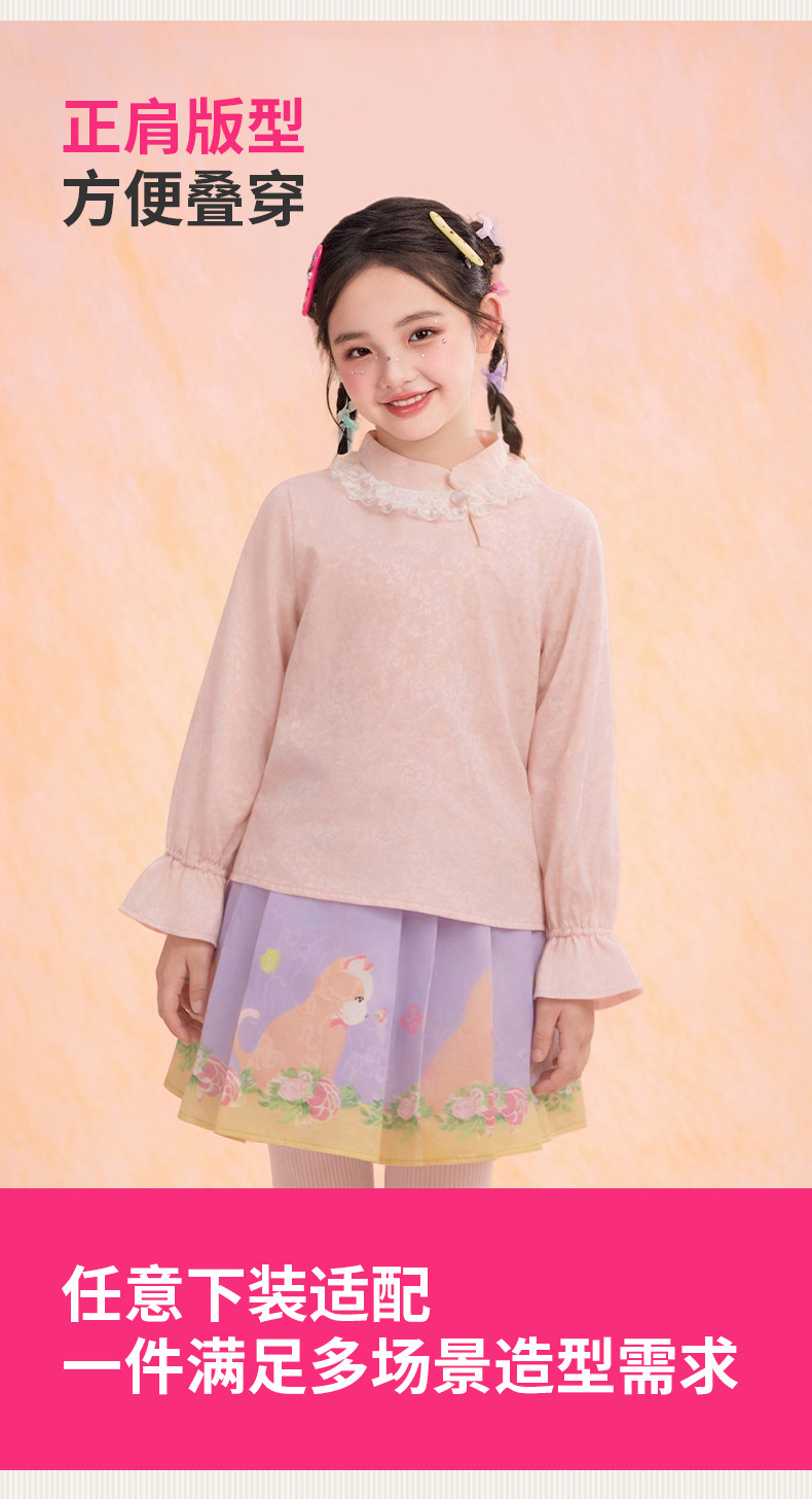 童装女童衬衫春季新款长袖新中式古风儿童百搭好春光中式上衣N1261015A04年衣