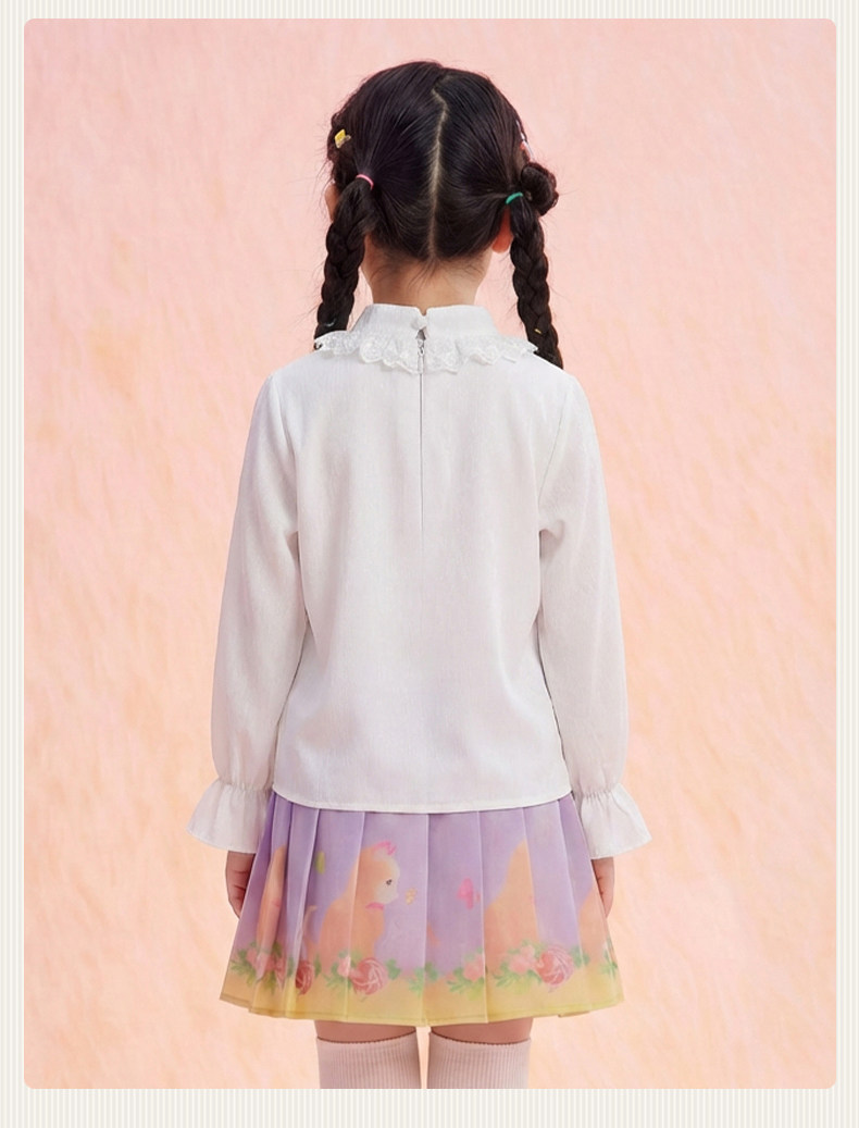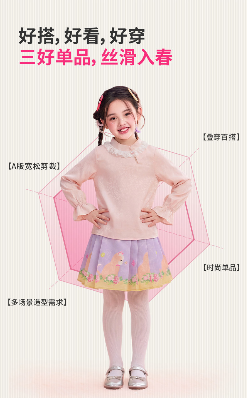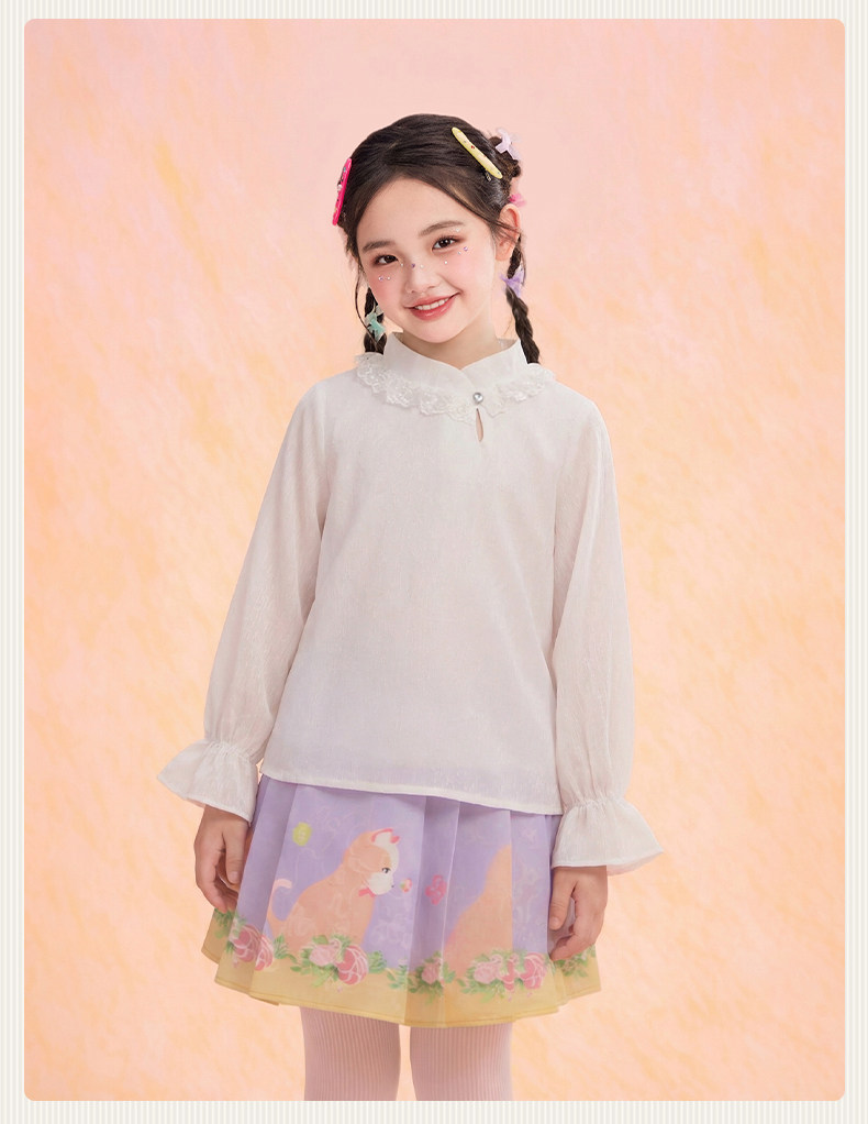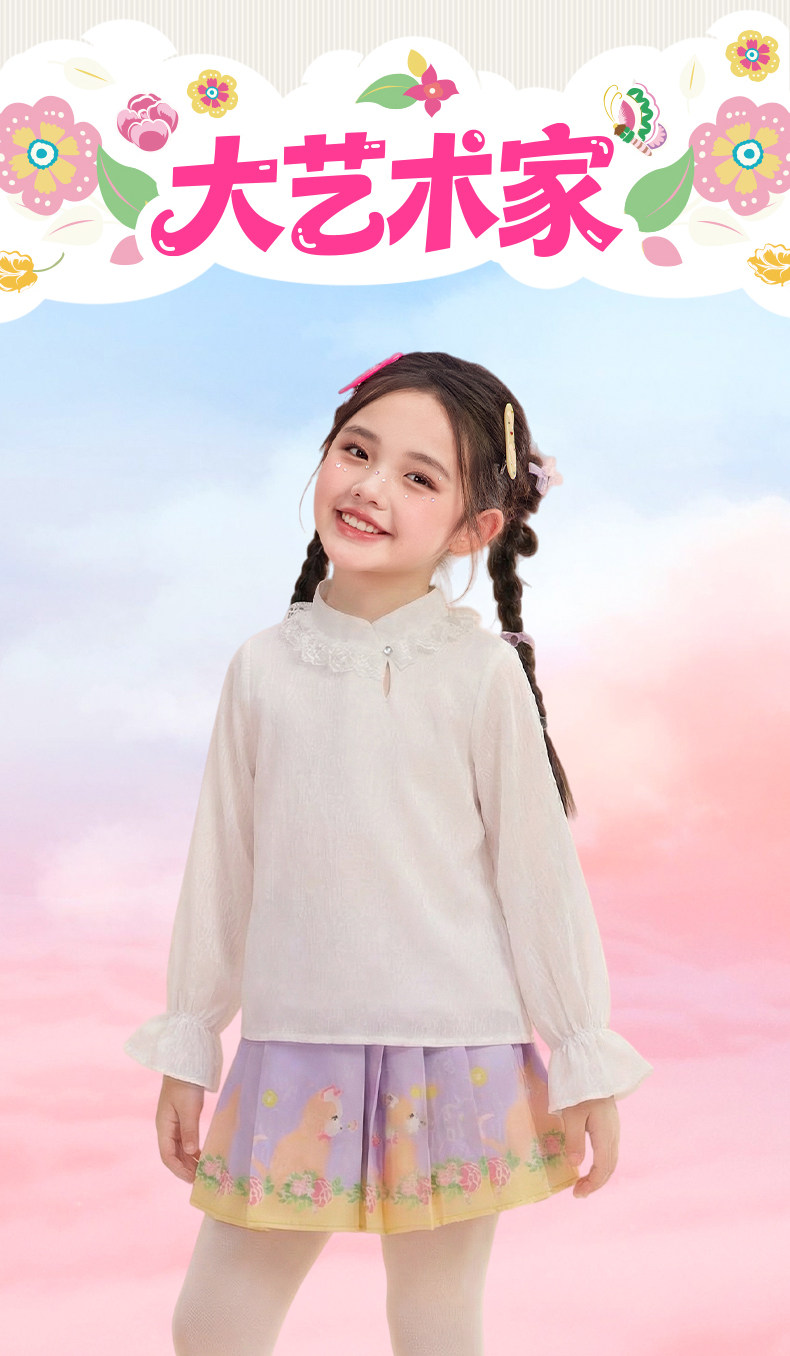 童装女童衬衫春季新款长袖新中式古风儿童百搭好春光中式上衣N1261015A04年衣