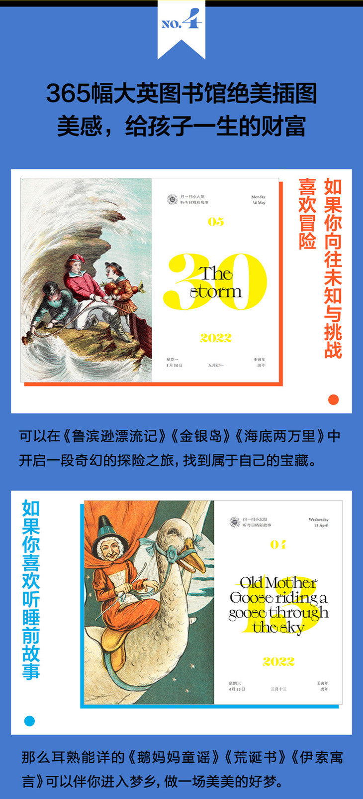 ● 与跨越一个世纪的童心相遇。《湛庐珍藏童书版·大英图书馆》汇集了大英图书馆30+大师的代表作,收录100+经典儿童文学作品,做出一本专属中国孩子的宝藏日历。精选365幅绝美插画,带给我们一场童心绽放的艺术盛宴。不论大人小孩,都可以在这场视觉盛宴中找到自己的艺术潜能。