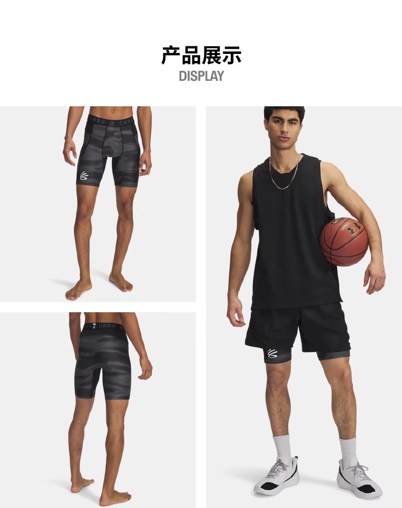 安德玛UA春夏Curry HeatGear®男子印花篮球紧身短裤1379829-003