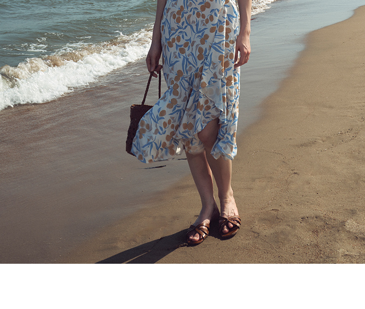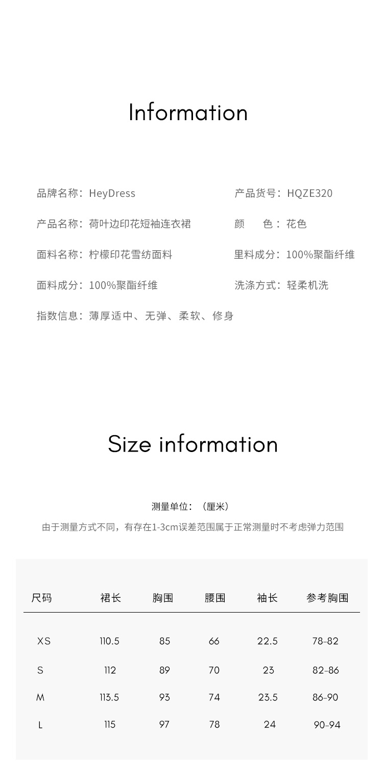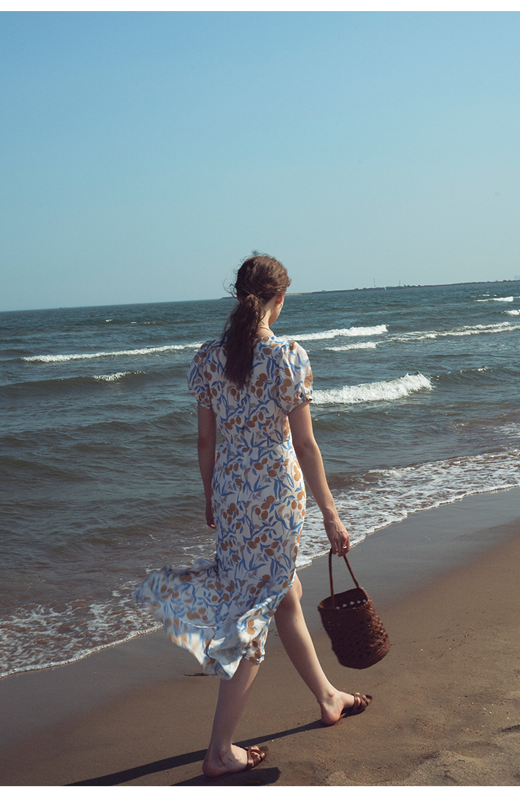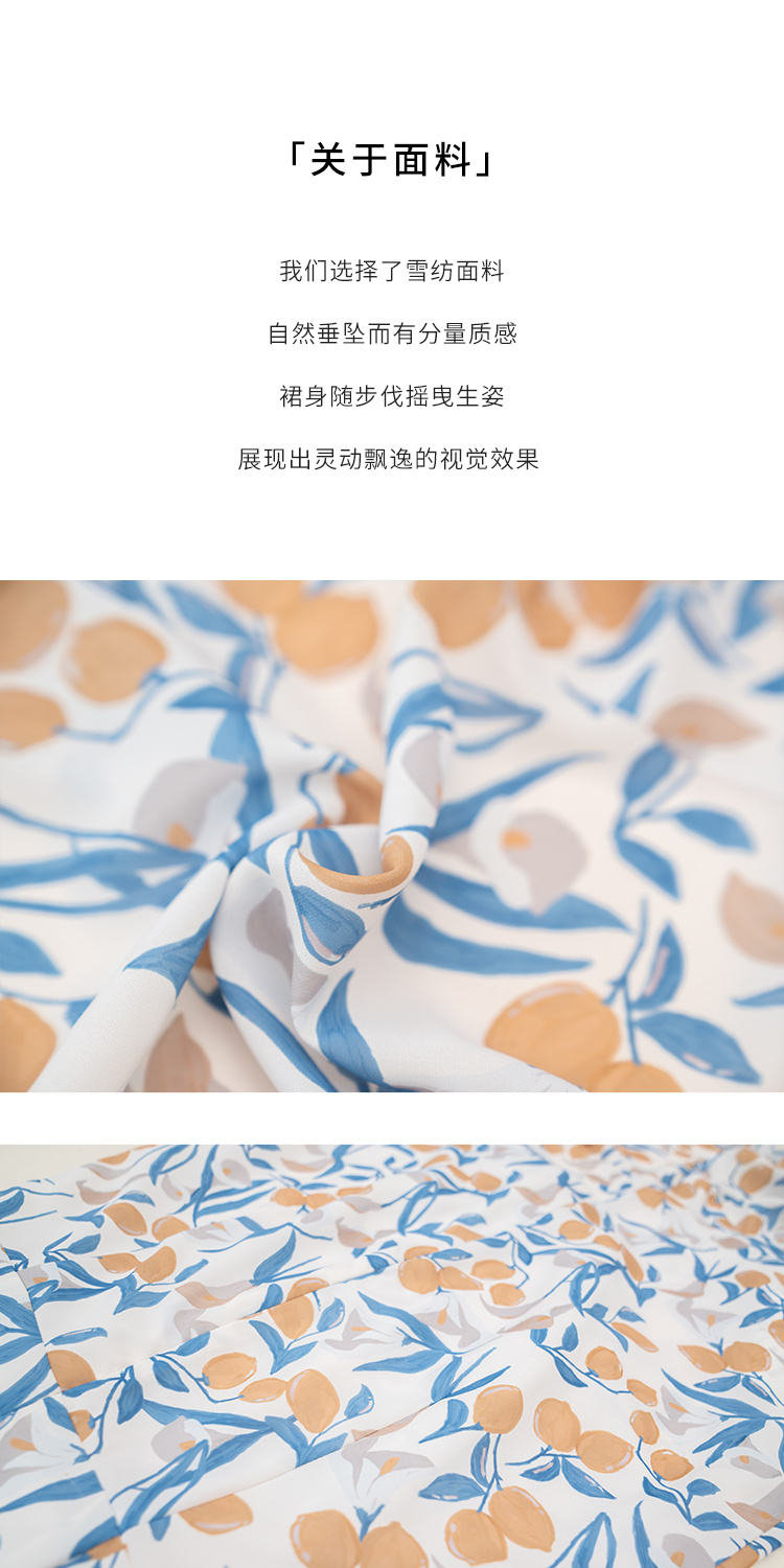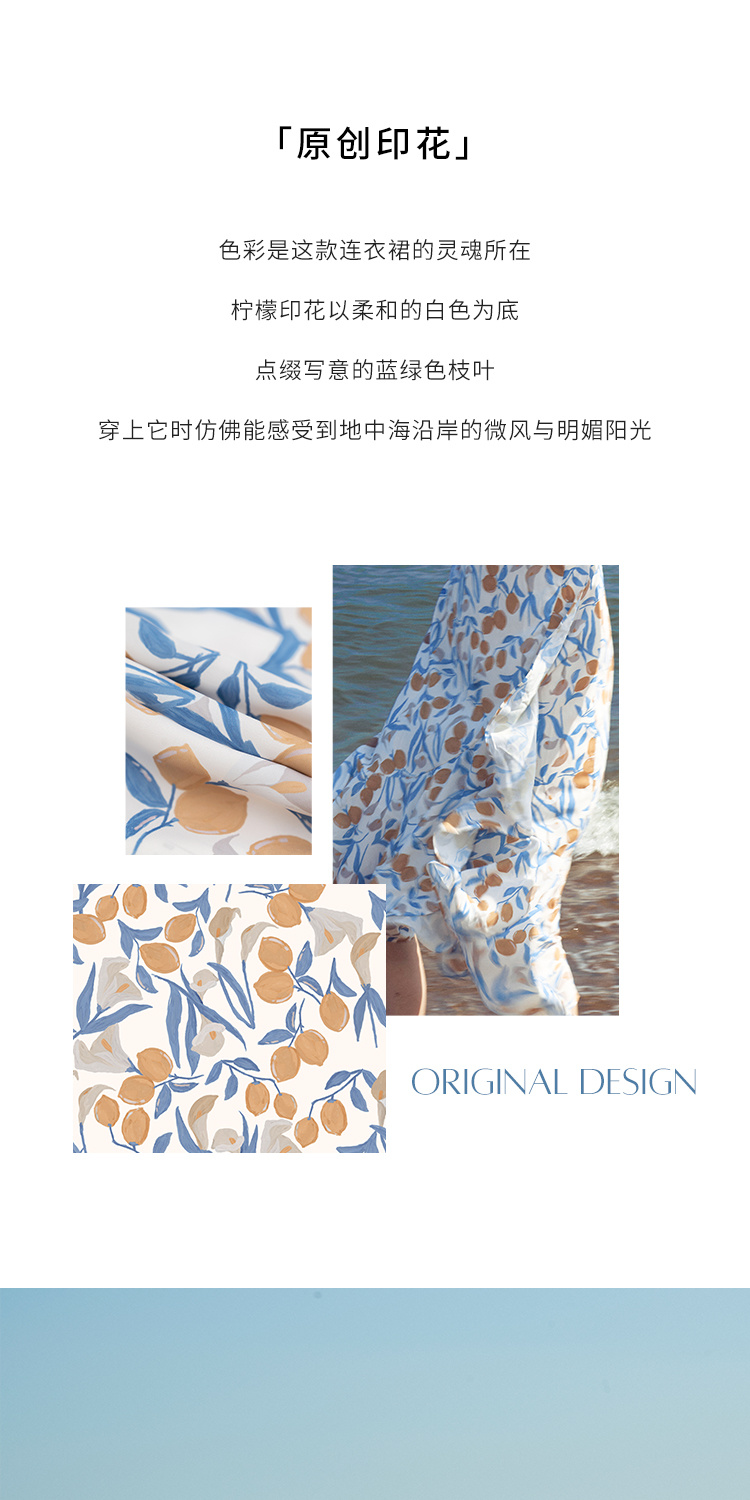 HeyDress原创柠檬碎花连衣裙女夏季法式V领荷叶设计浪漫度假裙子