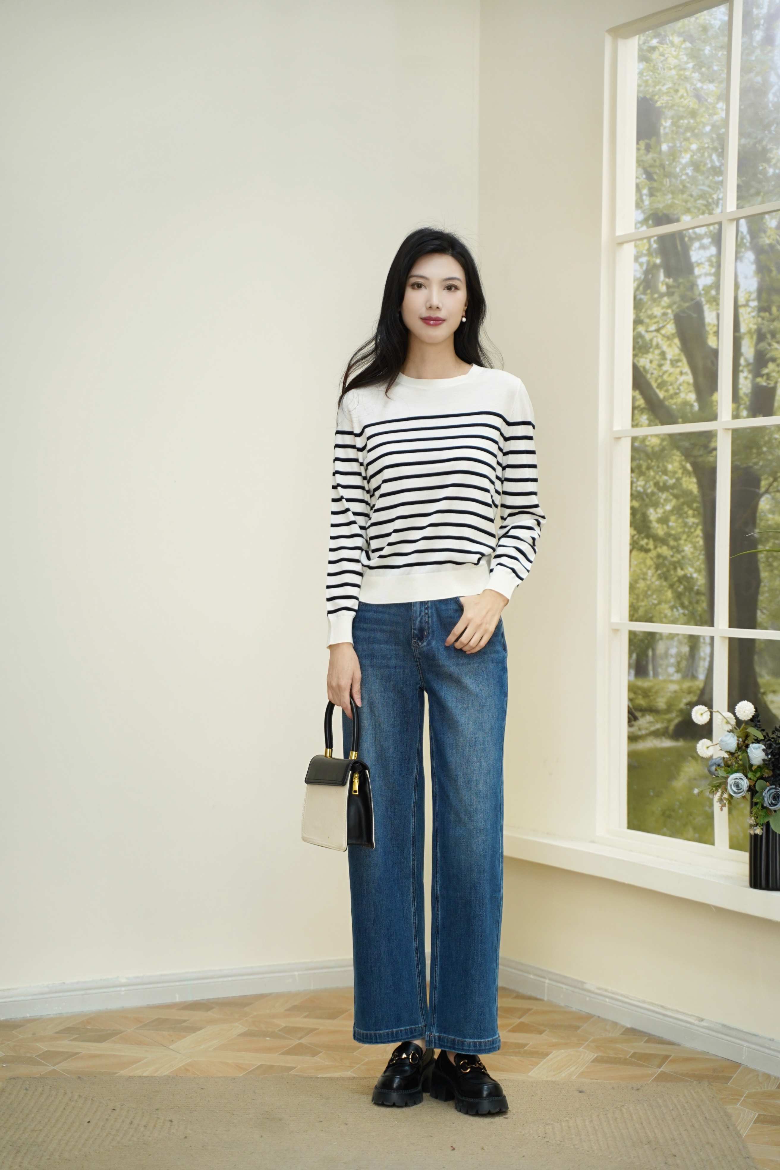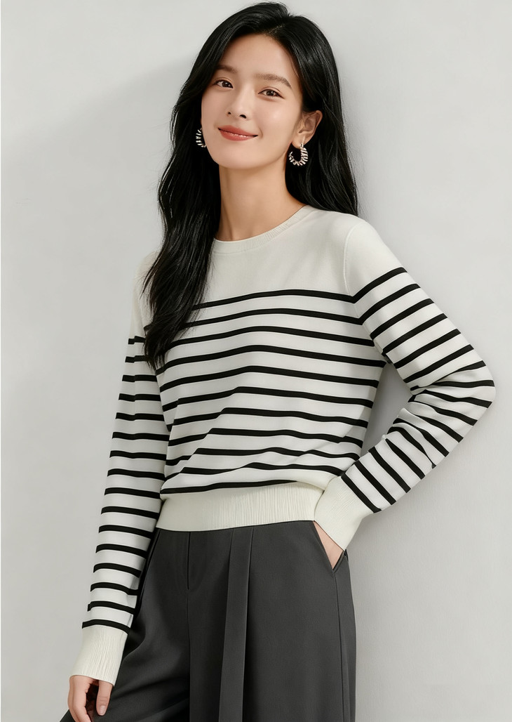 现货 臣禾 【重逢条纹衫】可机洗100%澳洲美丽诺羊毛套头针织衫 JZ253090775