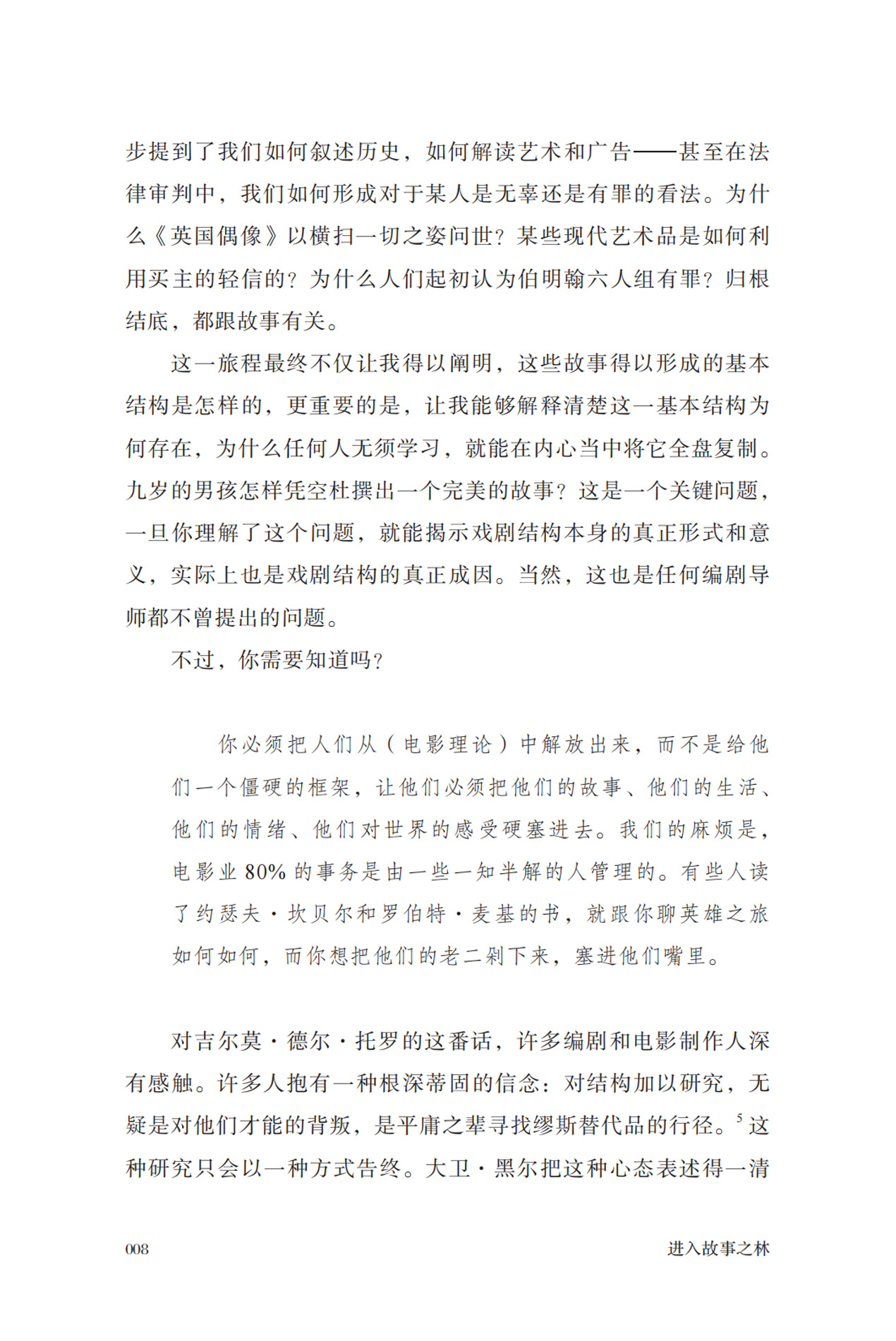 4.详细拆解大量影视作品,配以海量实例。作者边叙述、边举例,详细引用的作品就有50多部,提及的其他作品更是数不胜数,使得他的论述有理有据、饶有滋味,超越了普通编剧书那种教科书式的枯燥感,就像一本精辟、犀利、知识丰厚的品鉴手册,让普通读者也兴趣盎然。