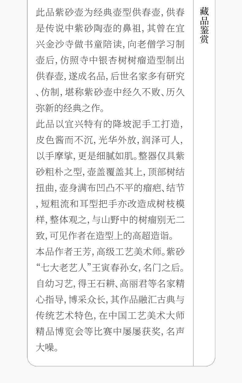 《供春壶》 王芳 正高级工艺美术师、江苏省工艺美术协会会员、宜兴紫砂行业协会会员、优秀中青年紫砂艺术家