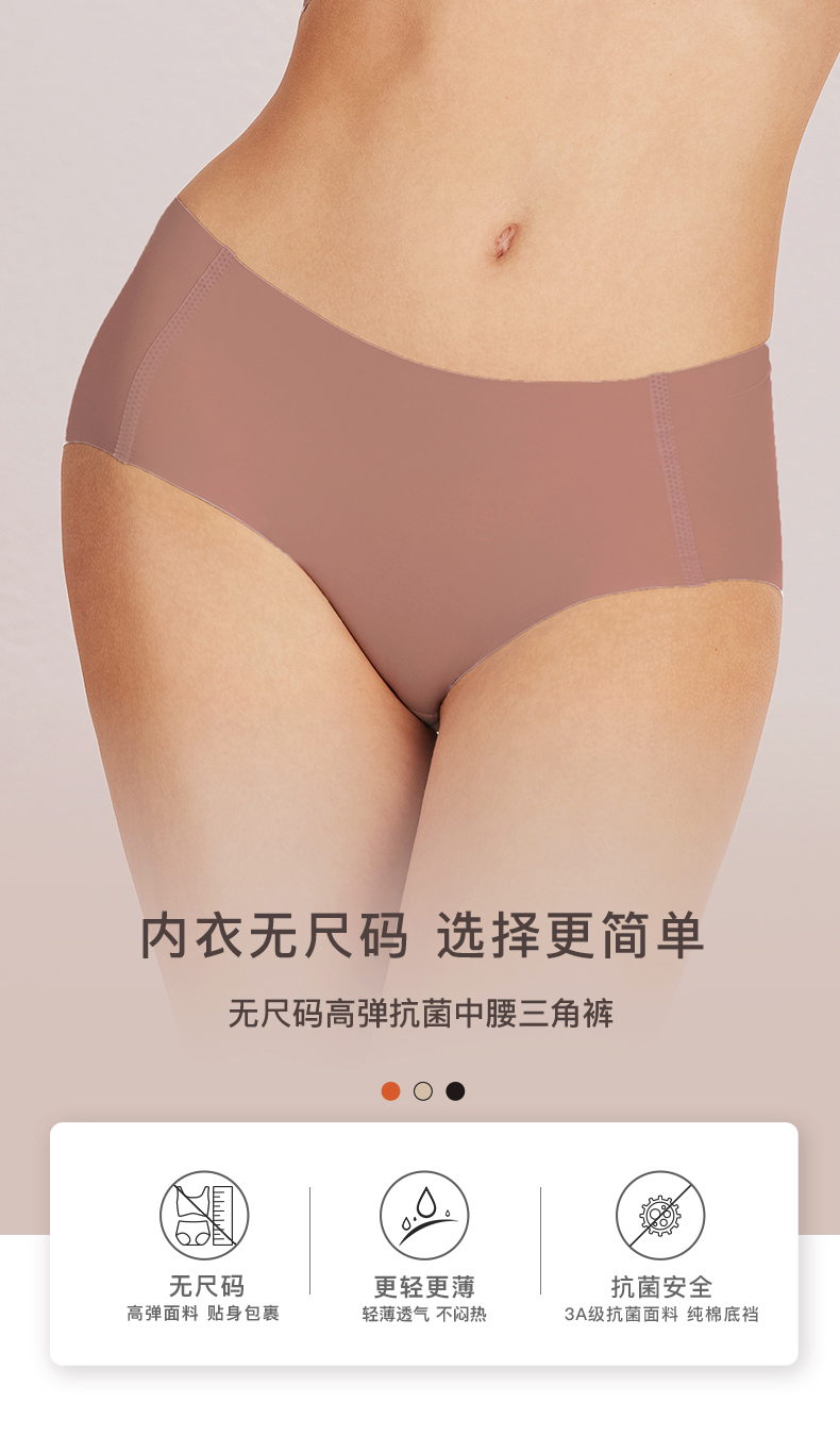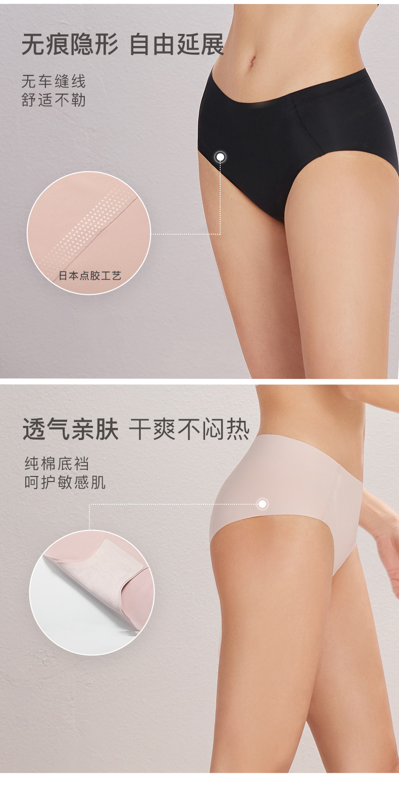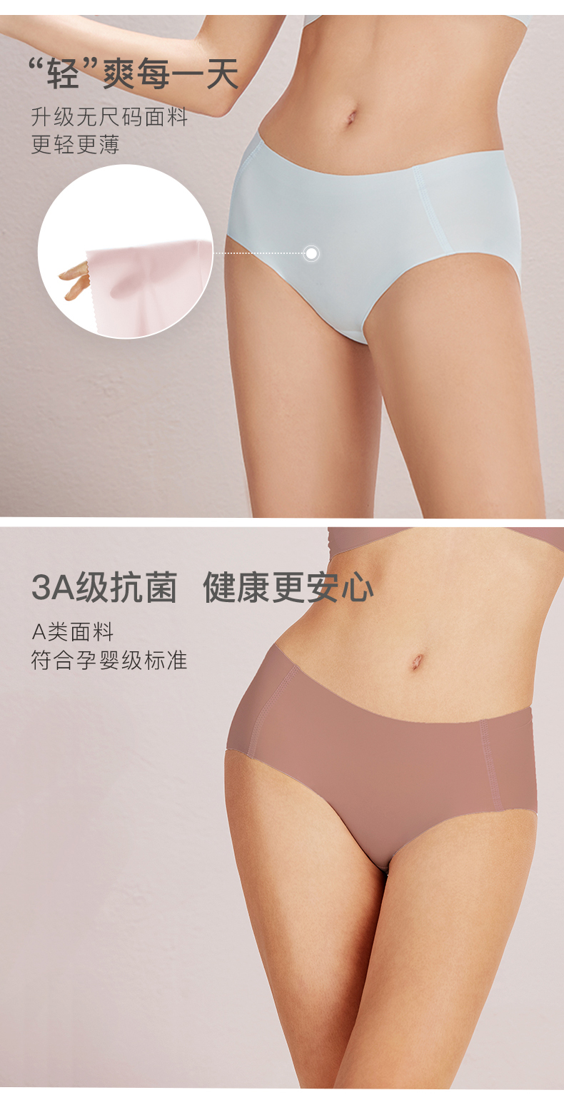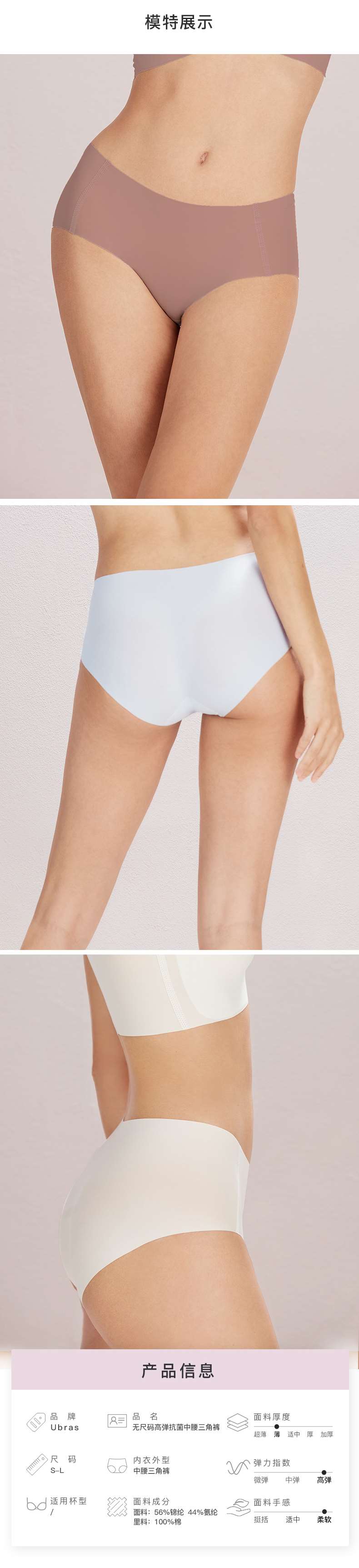 Ubras无尺码高弹抗菌中腰三角裤性感提臀纯棉底裆内裤女无痕透气