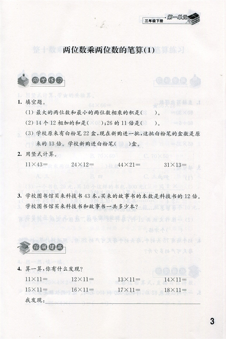 2025春 同步练习 小学数学三年级下册3下 苏教版(含参考答案)