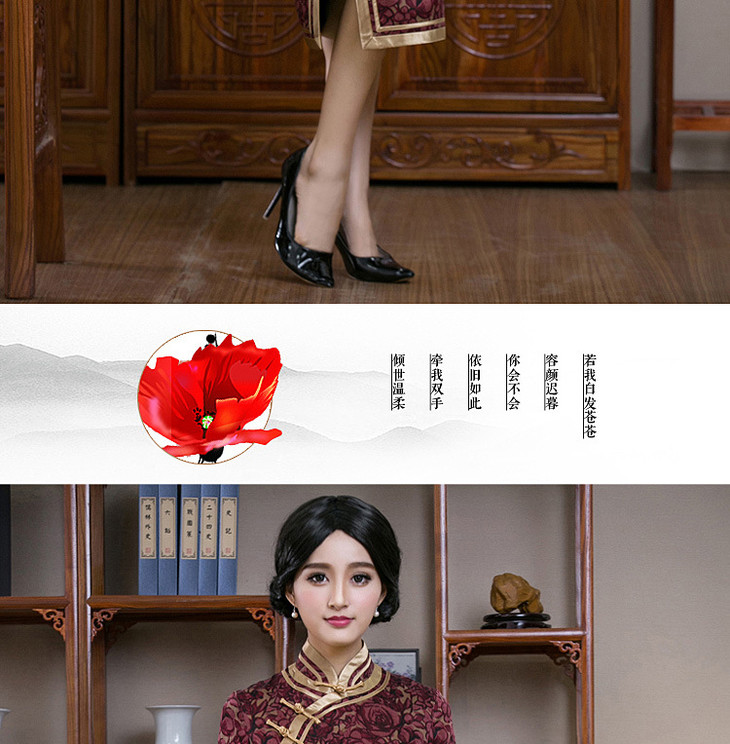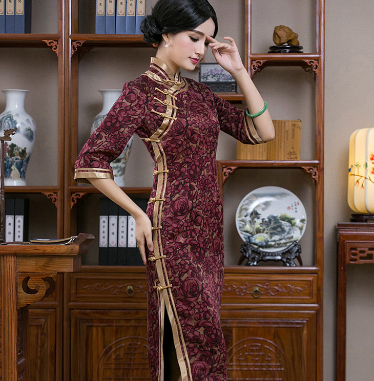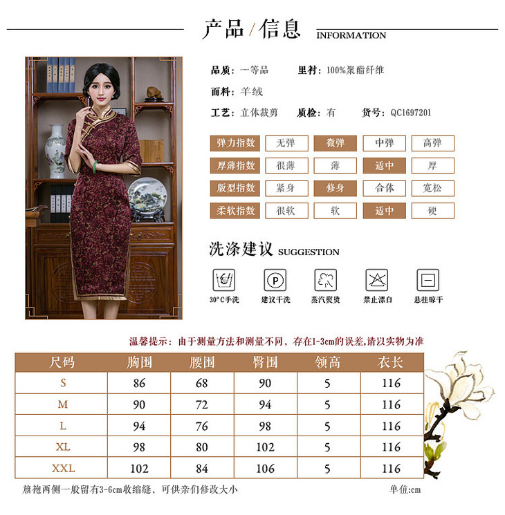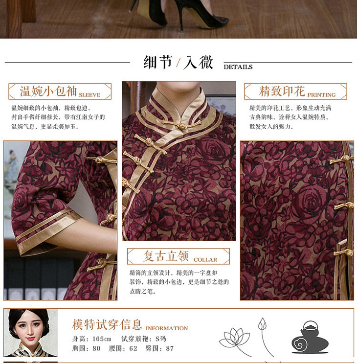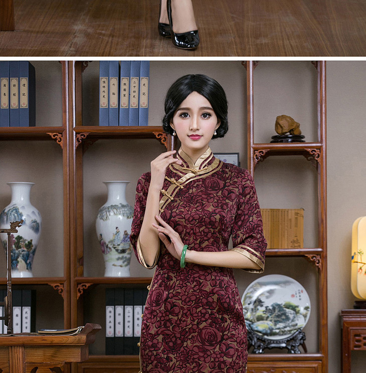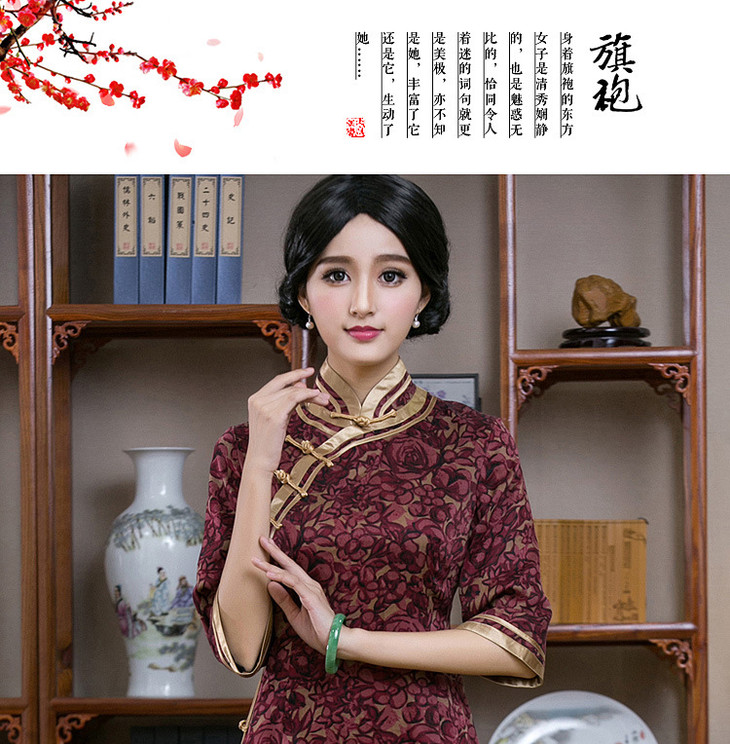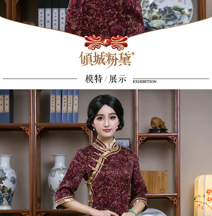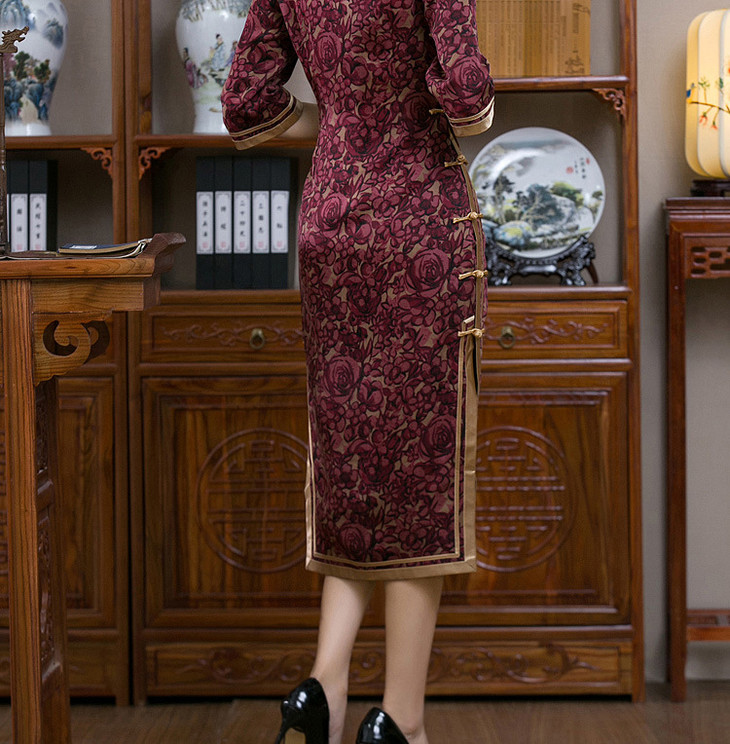 FD-QC1697201 新款高端复古真丝长款旗袍