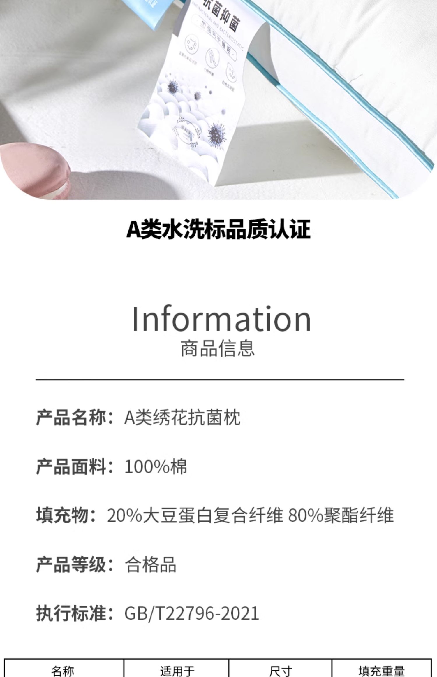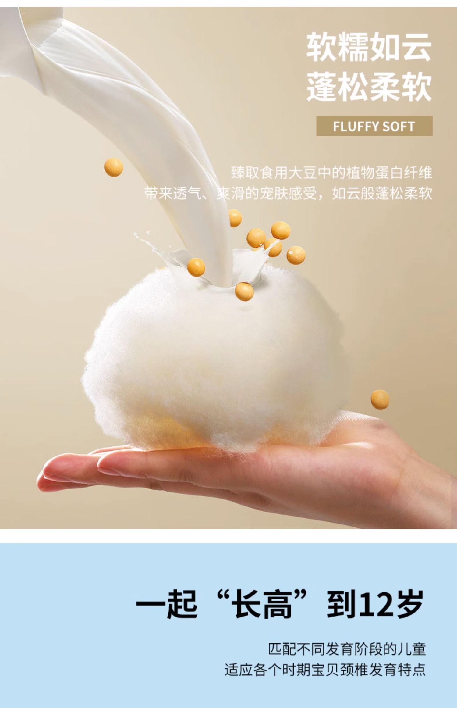 【维科家纺】儿童枕头学生专用6岁以上枕芯幼儿园3岁宝宝枕纯棉大豆纤维枕(单个)