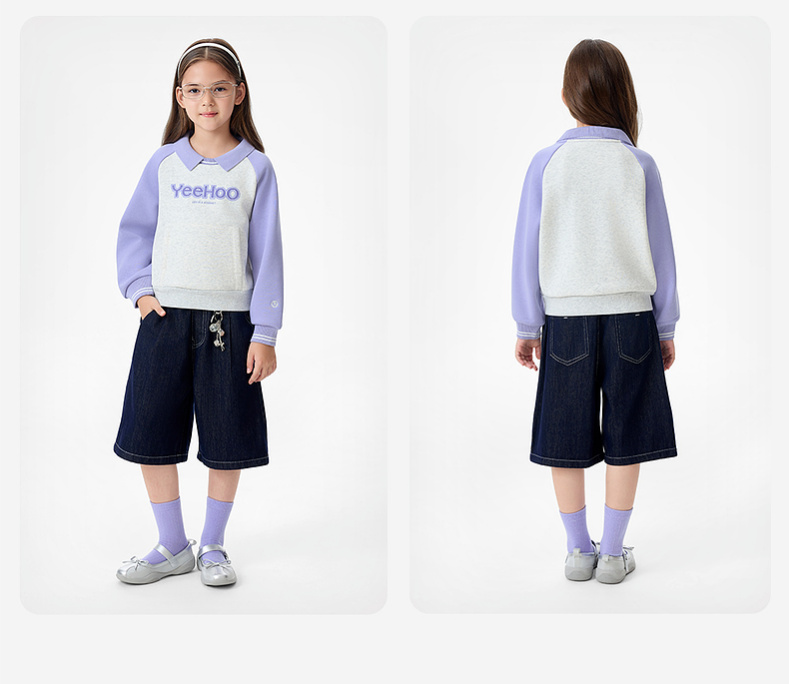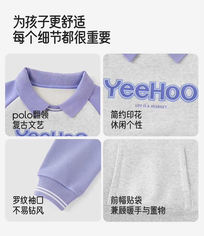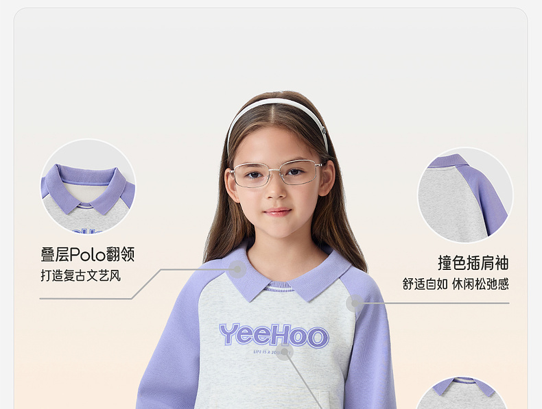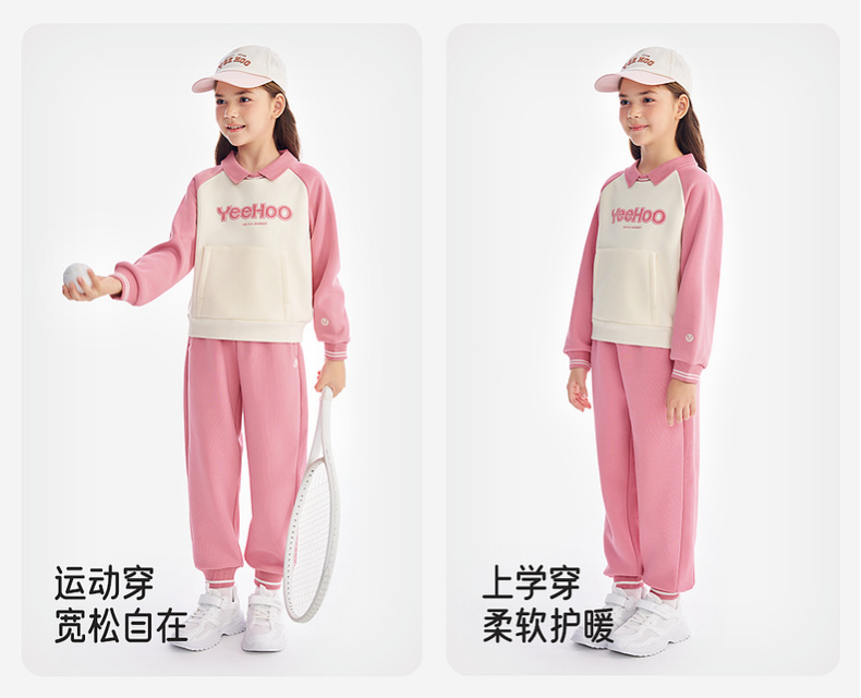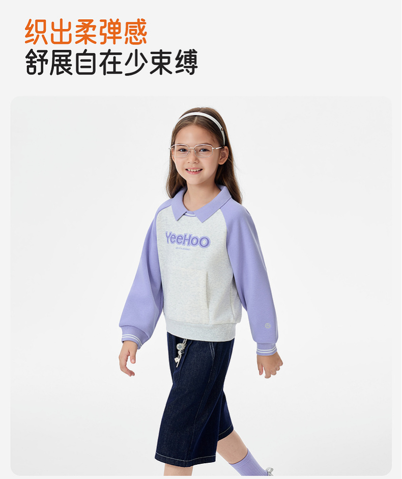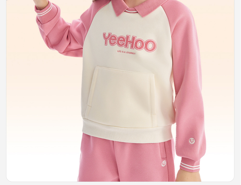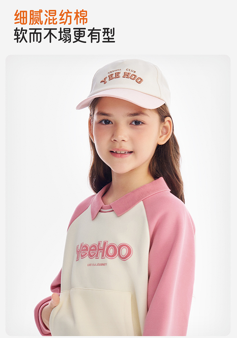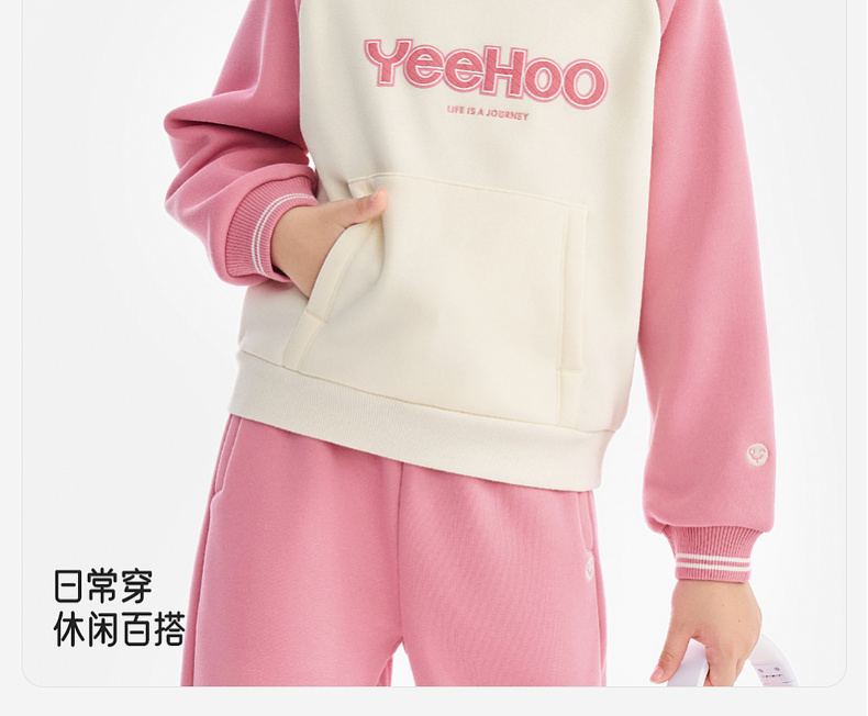 英氏儿童卫衣女翻领拼色休闲女童户外秋冬保暖防寒上衣女宝宝