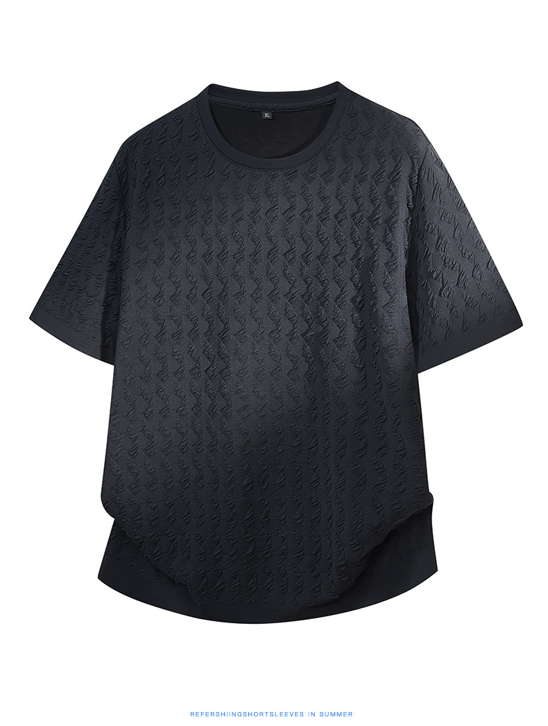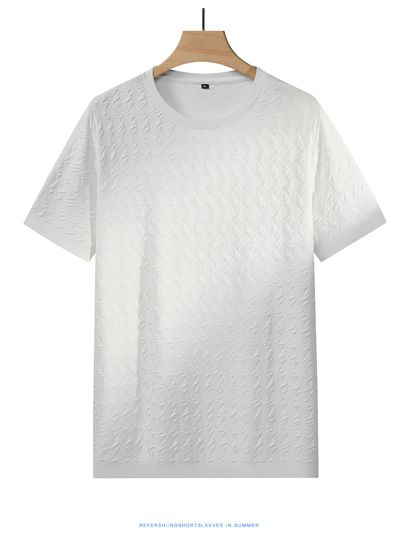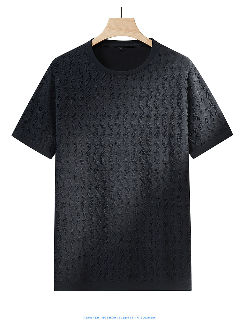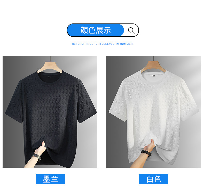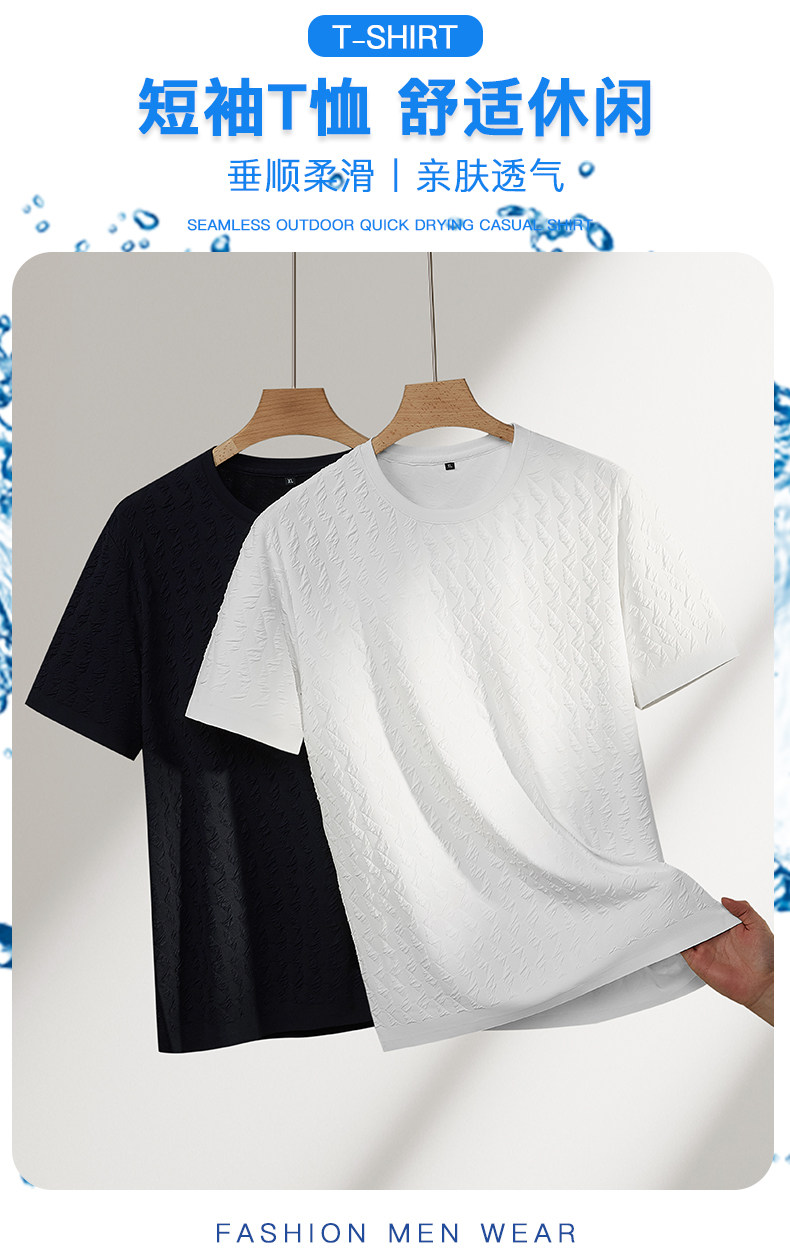 【DPF】大依优型大码男装夏季冰丝圆领短袖T恤提花透气潮流休闲百搭上衣