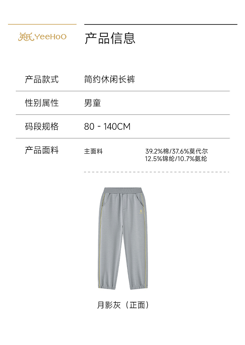 【商场同款】英氏童装儿童长裤男童裤子春秋休闲裤针织裤百搭新款