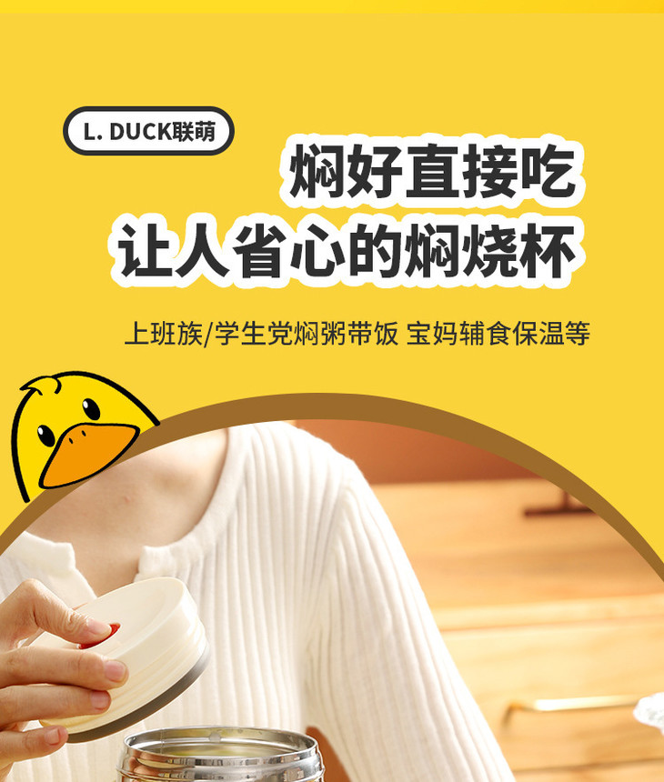 【48小时现货】小黄鸭焖烧杯便携小型学生上班族焖烧壶304不锈钢保温饭盒焖烧罐