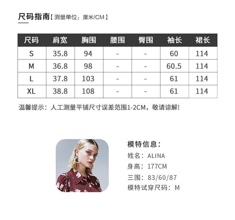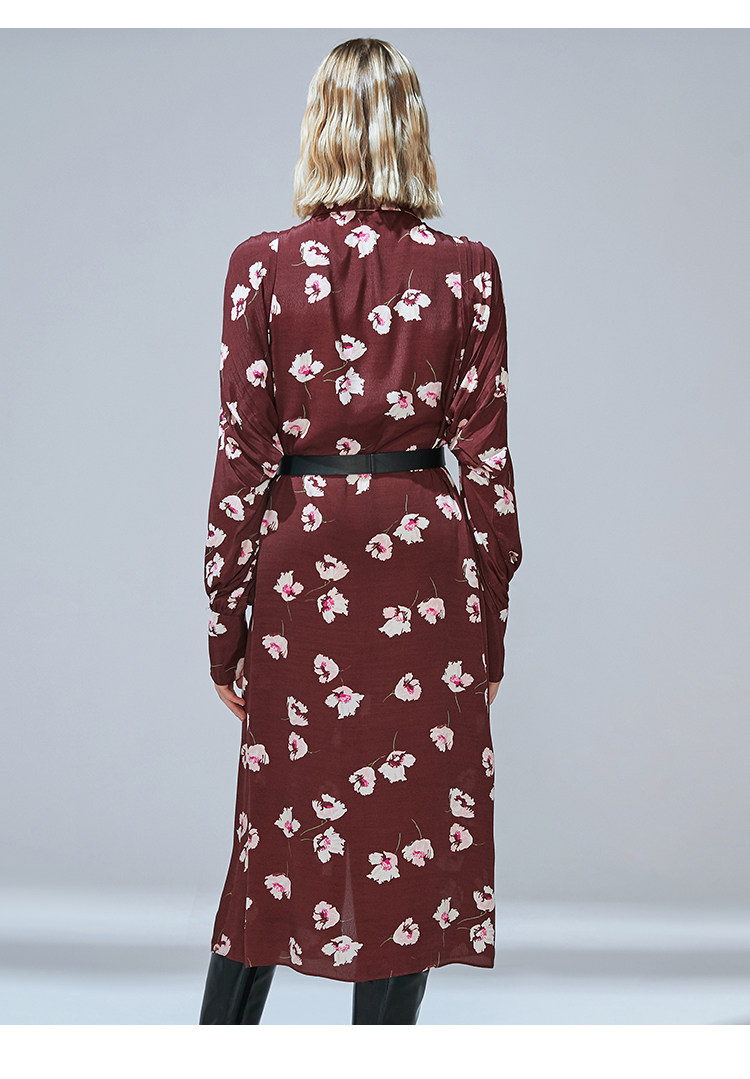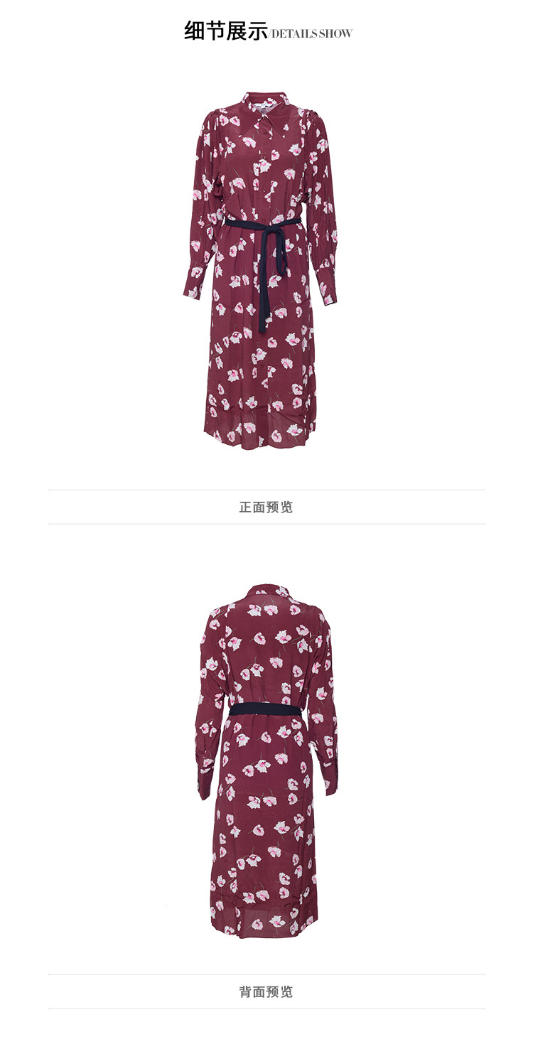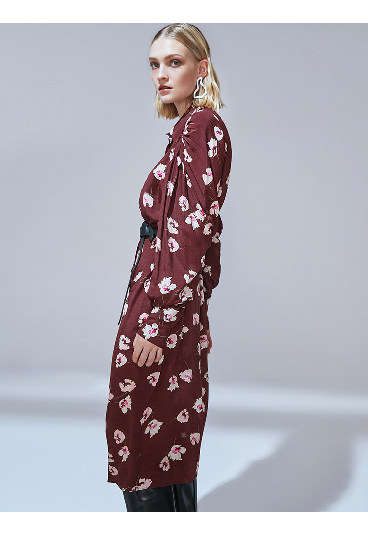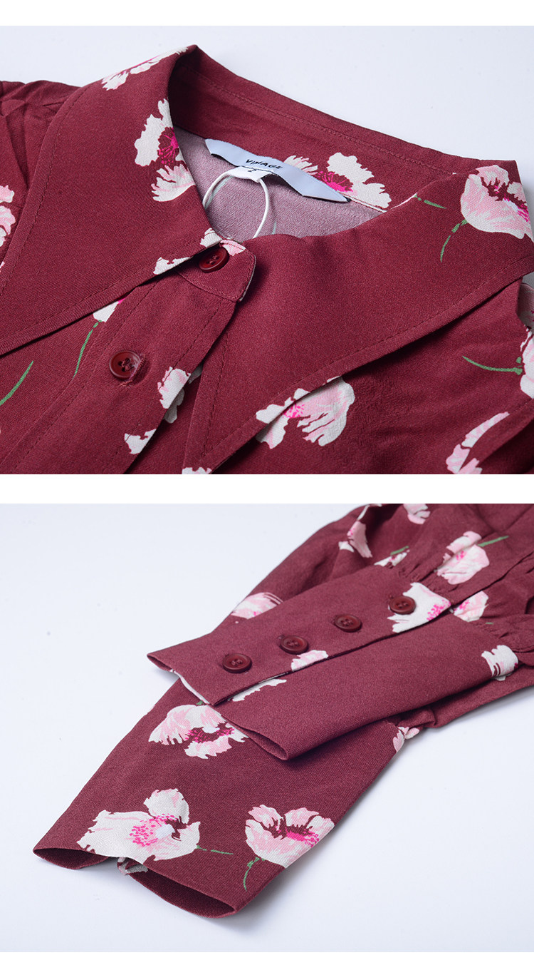 VIMAGE纬漫纪秋款个性百褶灯笼袖收腰显瘦复古印花连衣裙V1407010