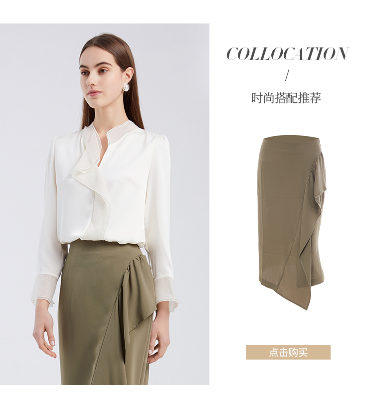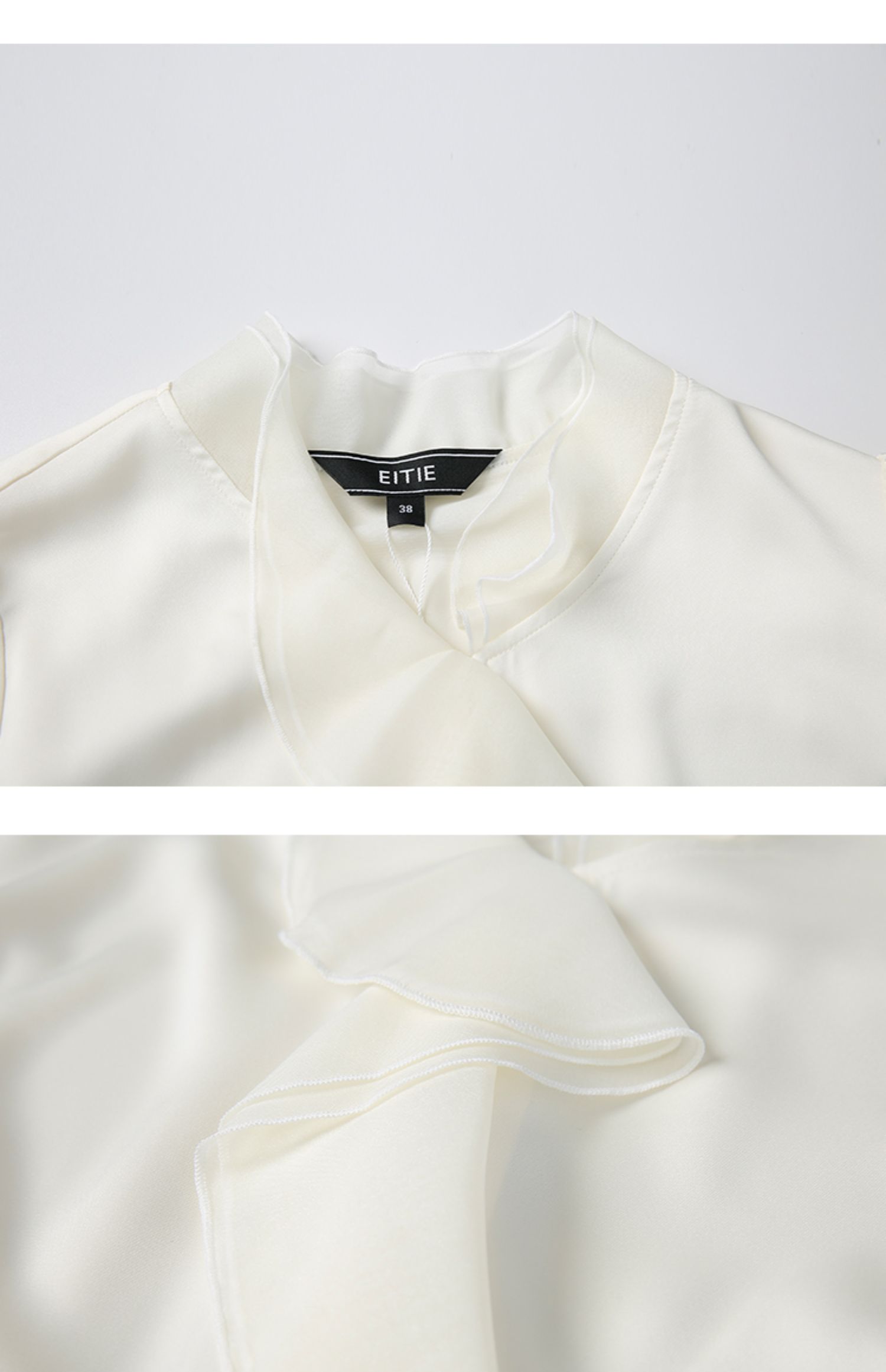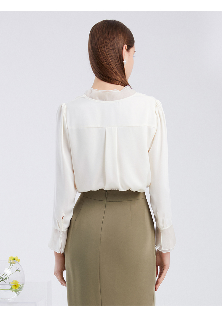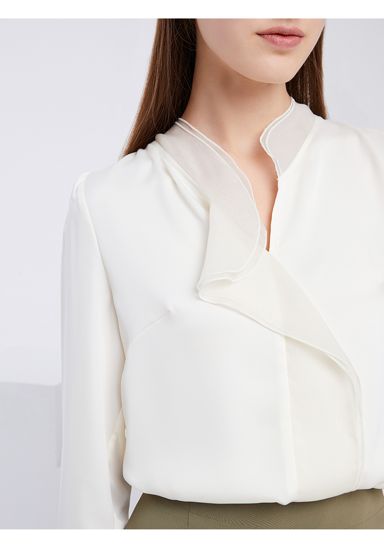 EITIE爱特爱夏季新款气质V领飘逸雪纺拼接职业通勤百搭小上衣6213906