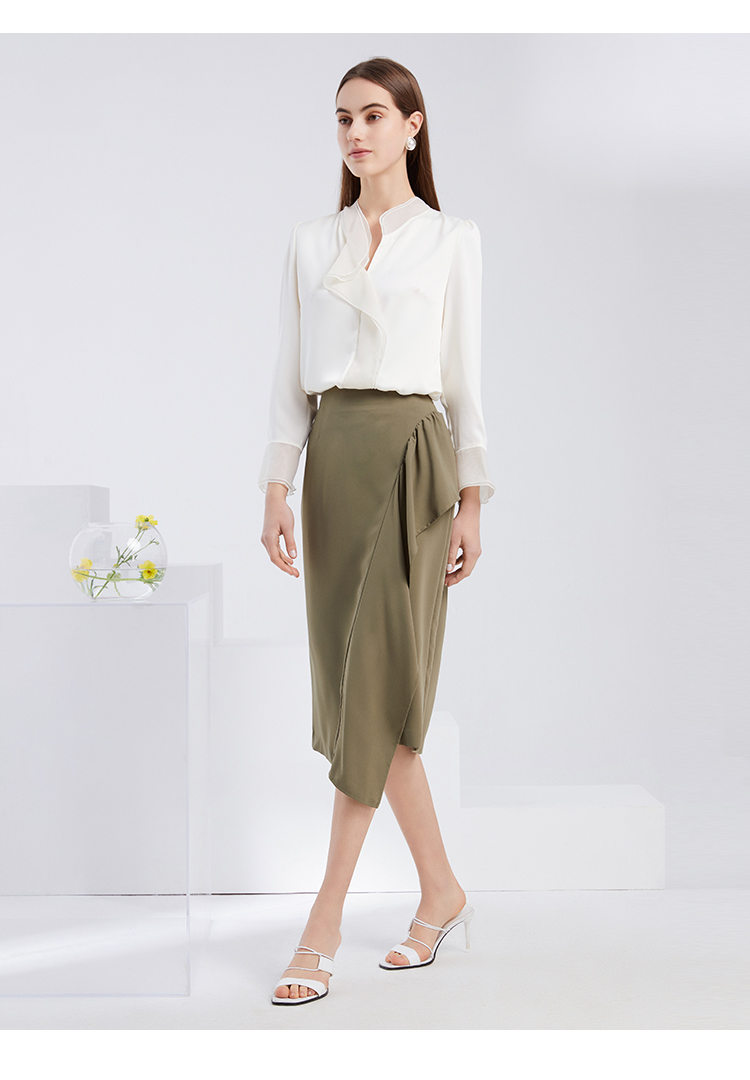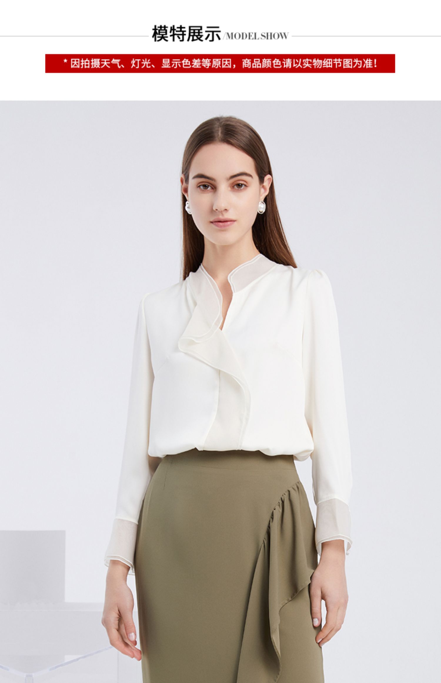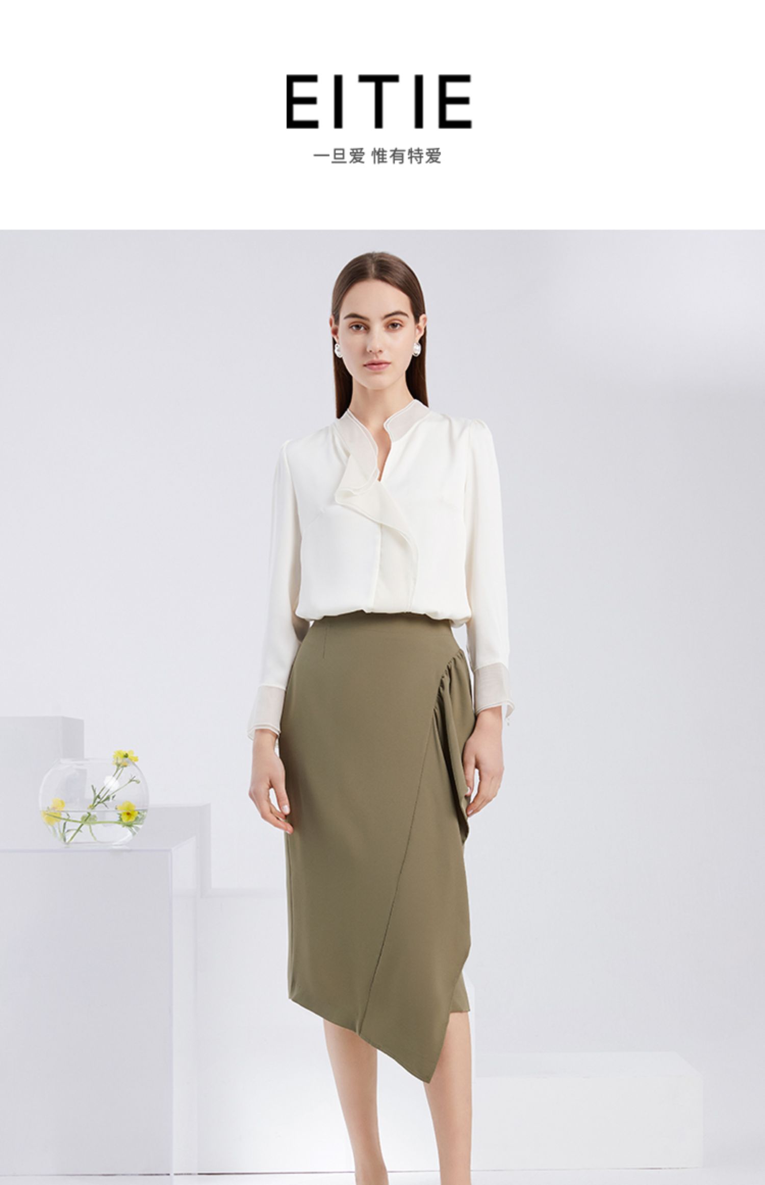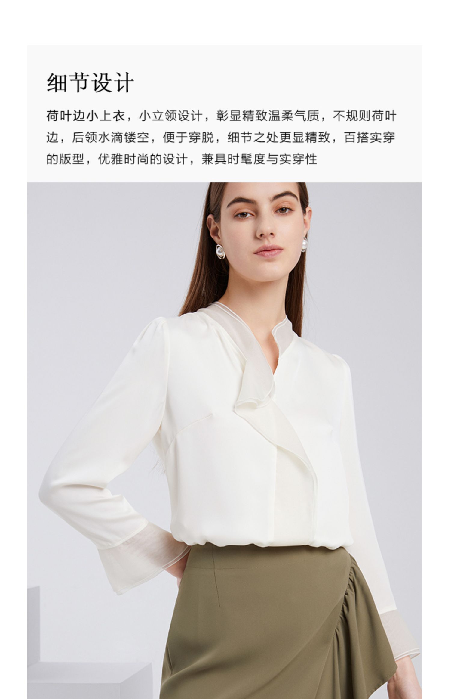 EITIE爱特爱夏季新款气质V领飘逸雪纺拼接职业通勤百搭小上衣6213906