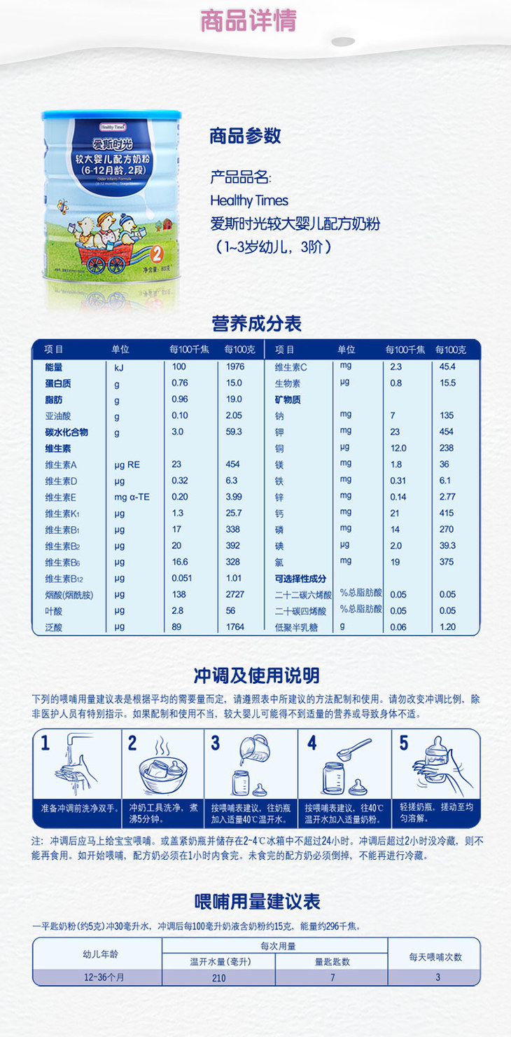 合生元 爱斯时光婴儿有机配方奶粉3段 800g