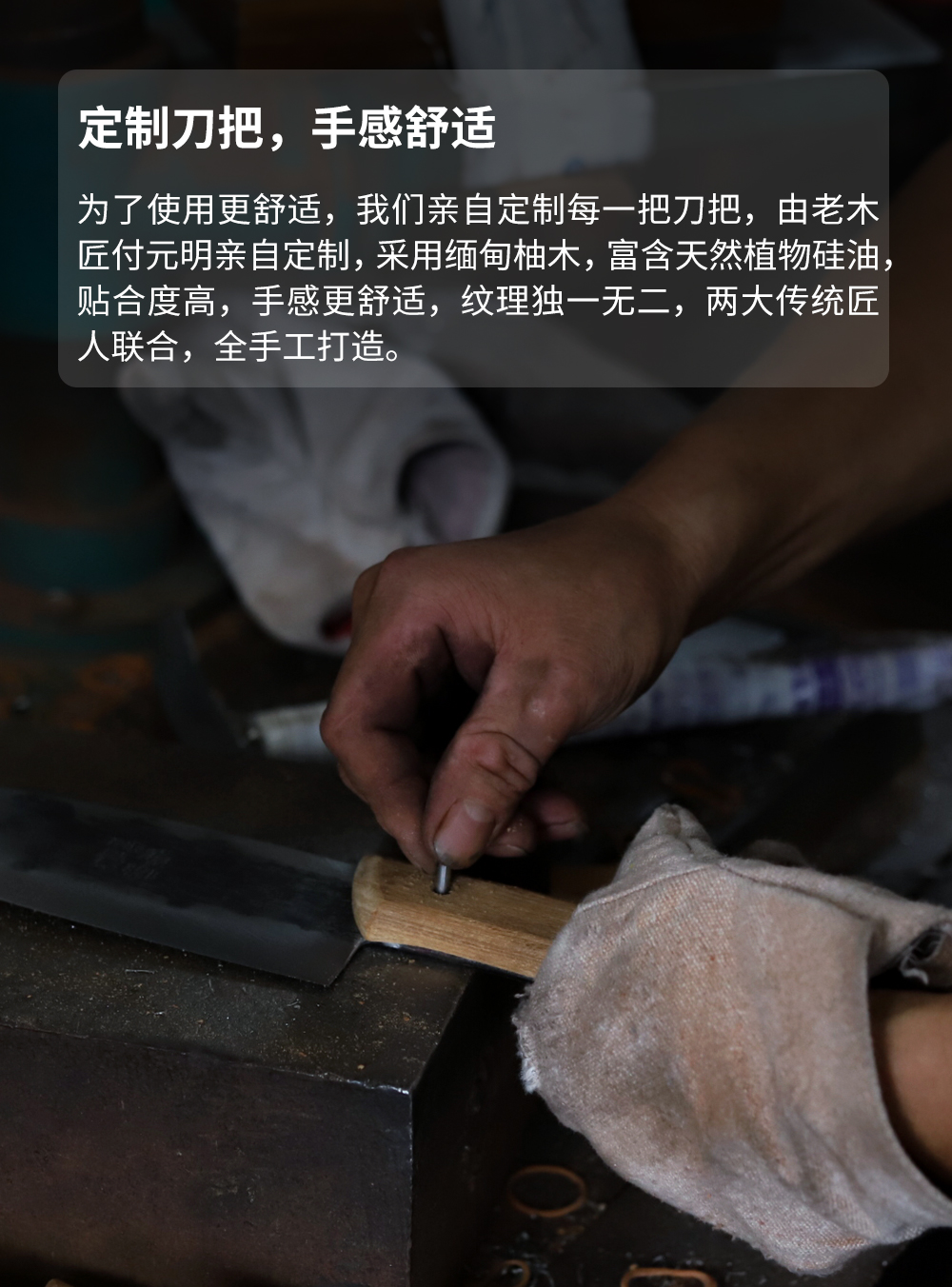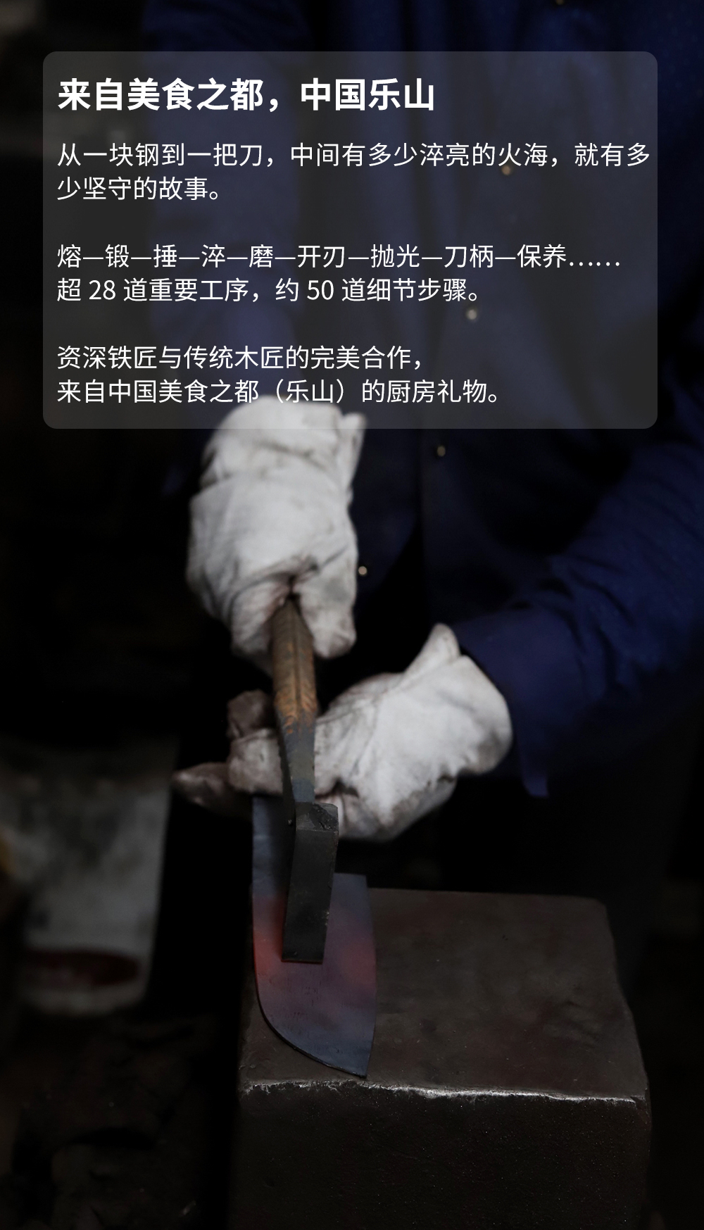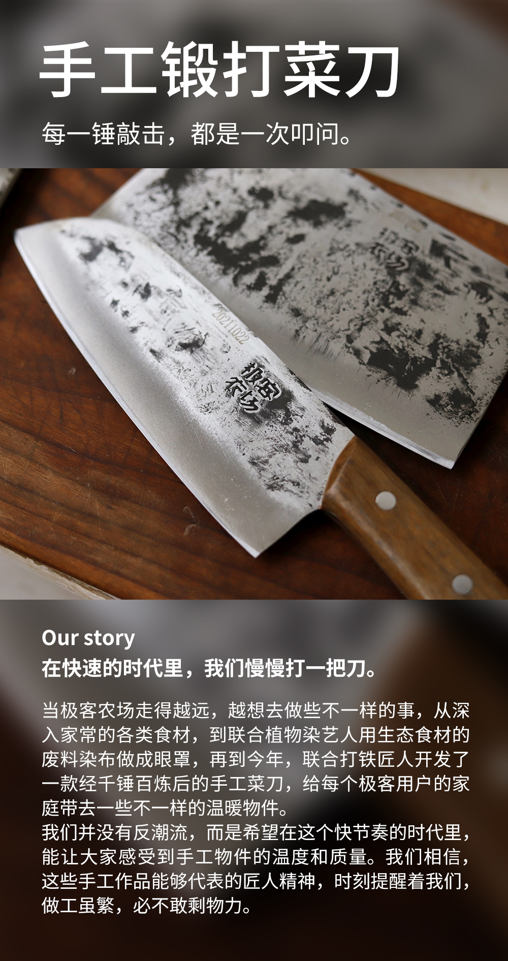 【顺丰快递】极客手工锻打刀具|美食之都 中国乐山 手工锻打 长城特钢刀身 用完及时擦拭干净,避免生锈 进口柚木刀柄 坚韧锋利 终身售后